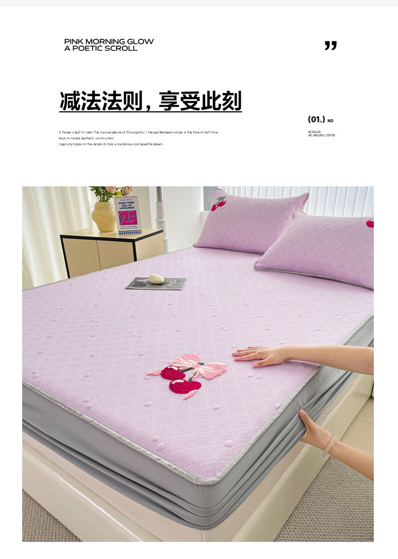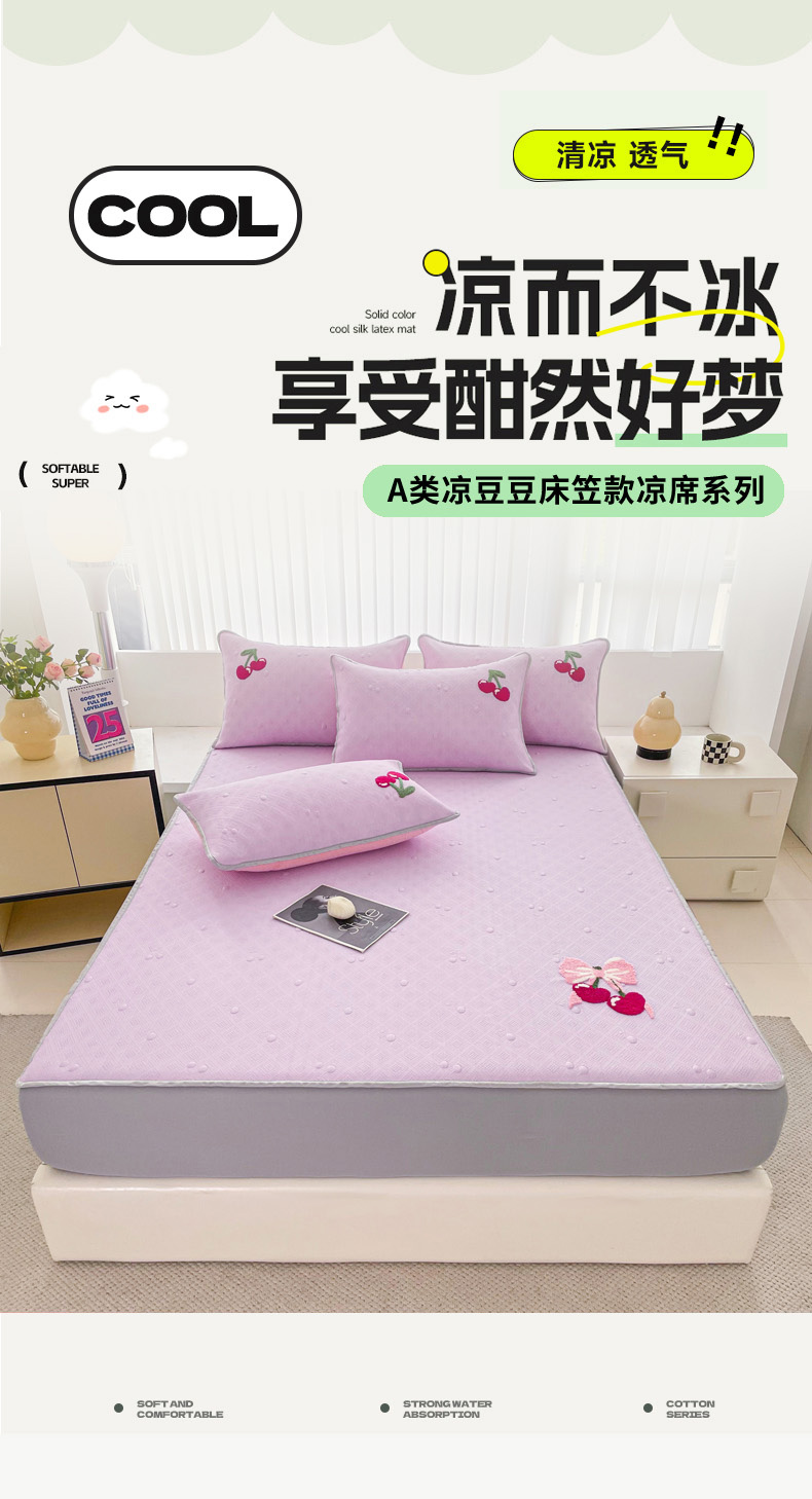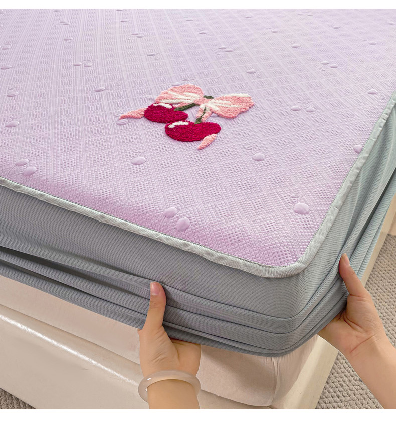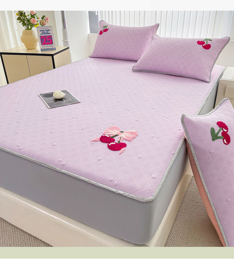 恋佳居2025新款A类乙伦PE凉豆豆毛巾绣床笠冰丝席(床笠款) 樱桃—紫