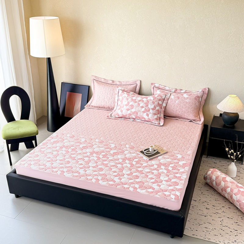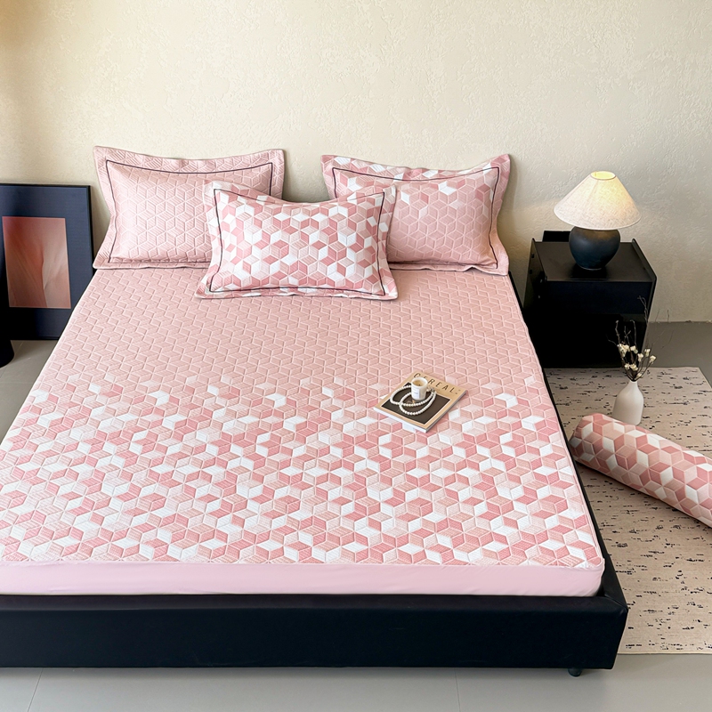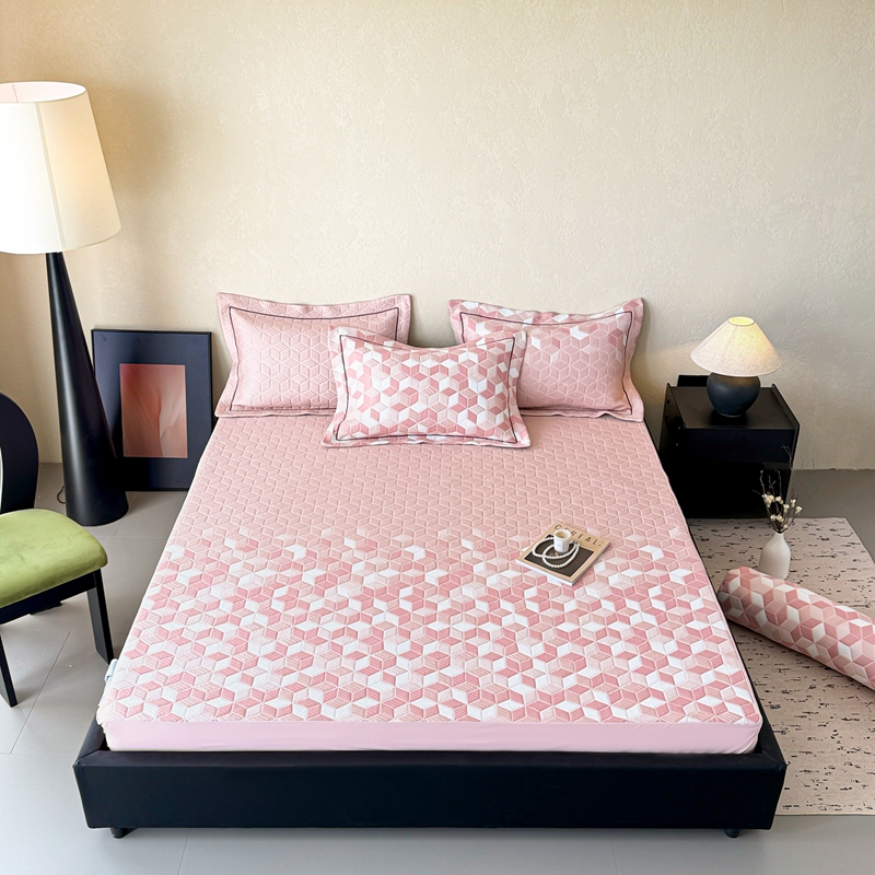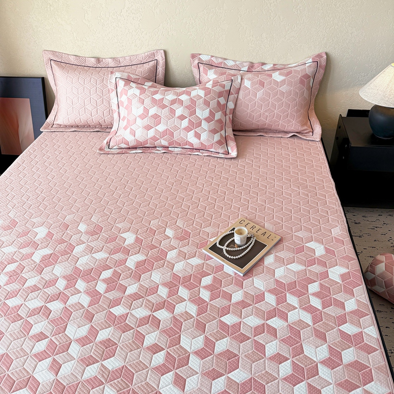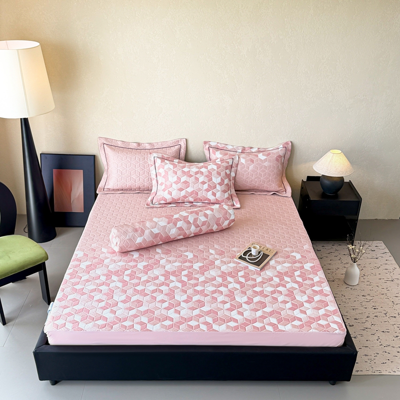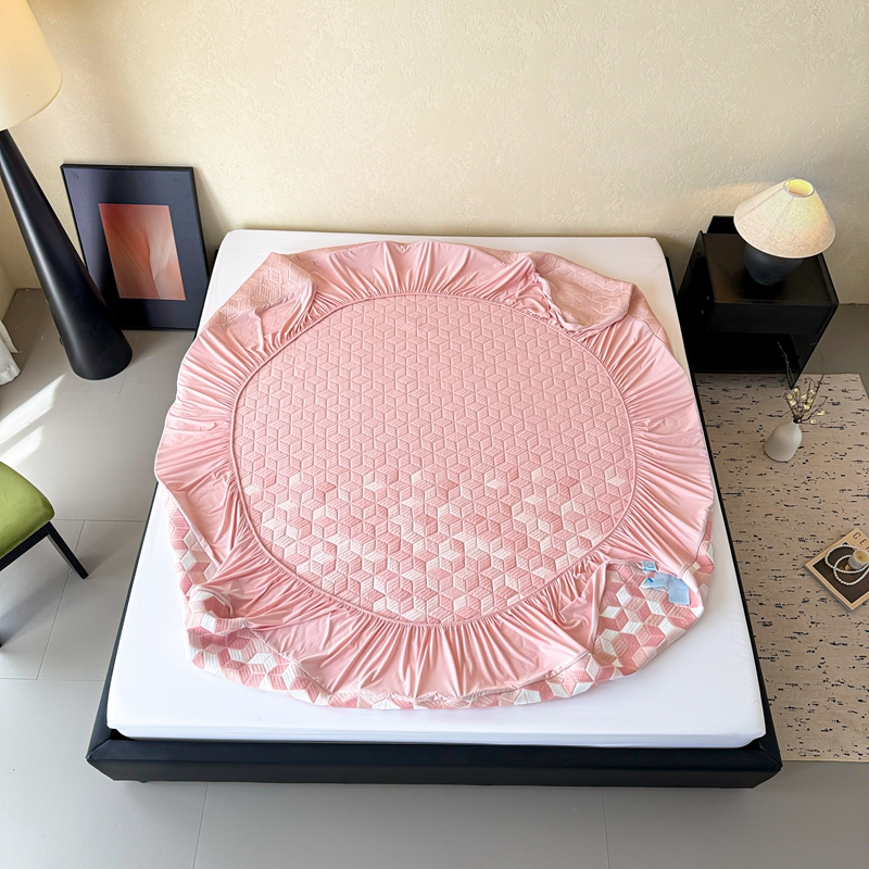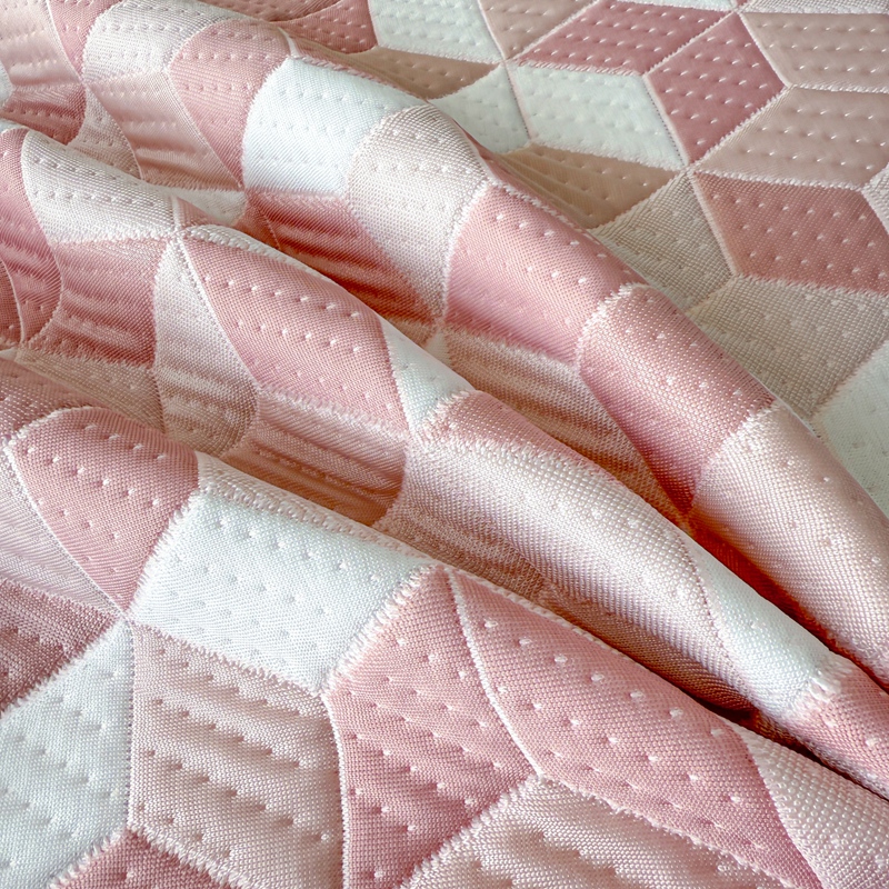 床上用品 > 床笠 > 若未家居 LOVEWE HOUSE 2025新款800克进口高分子100%乙纶PE冷凝凉感软席凉席渐变色织提花系列床笠-床笠款 魔方-粉