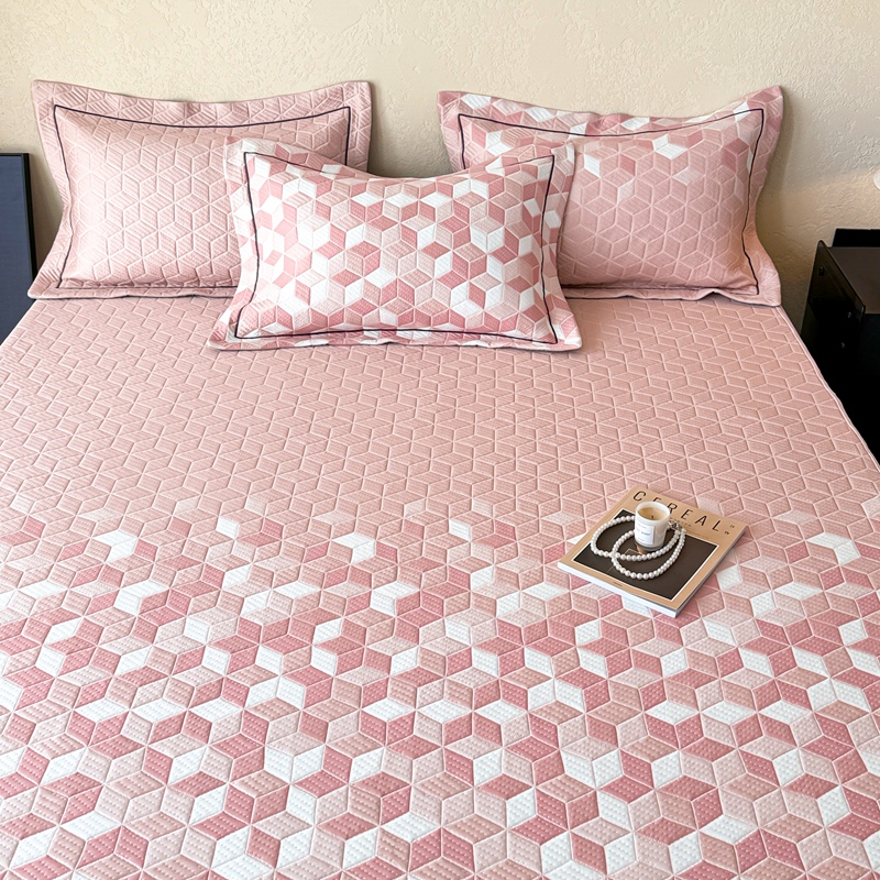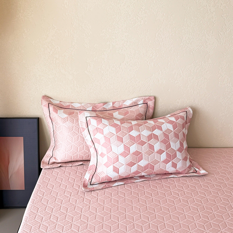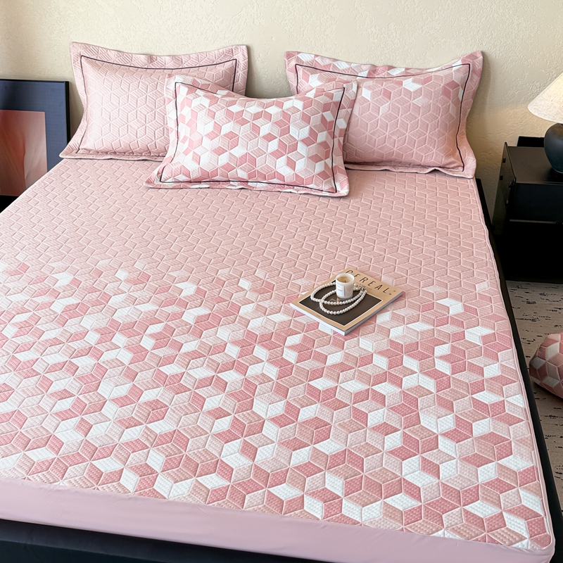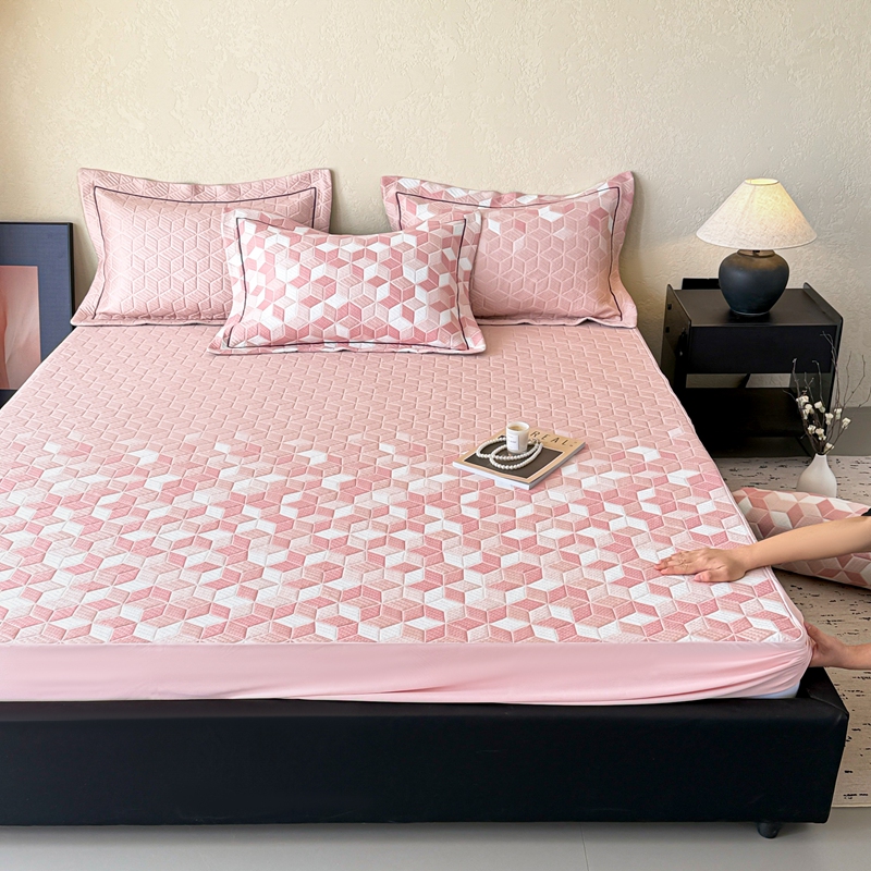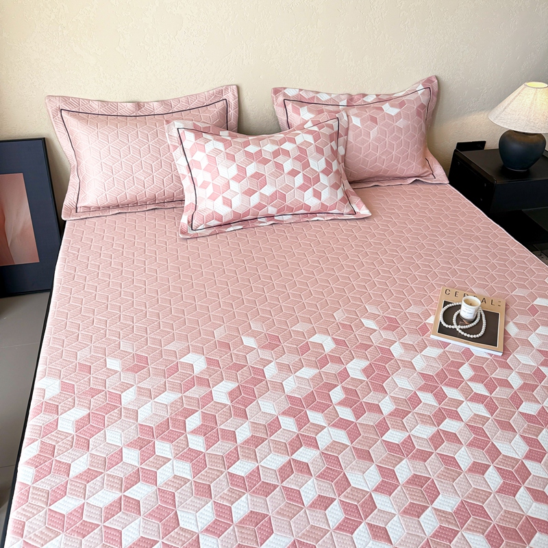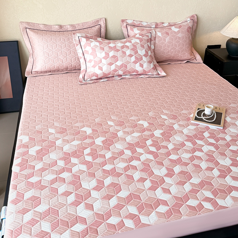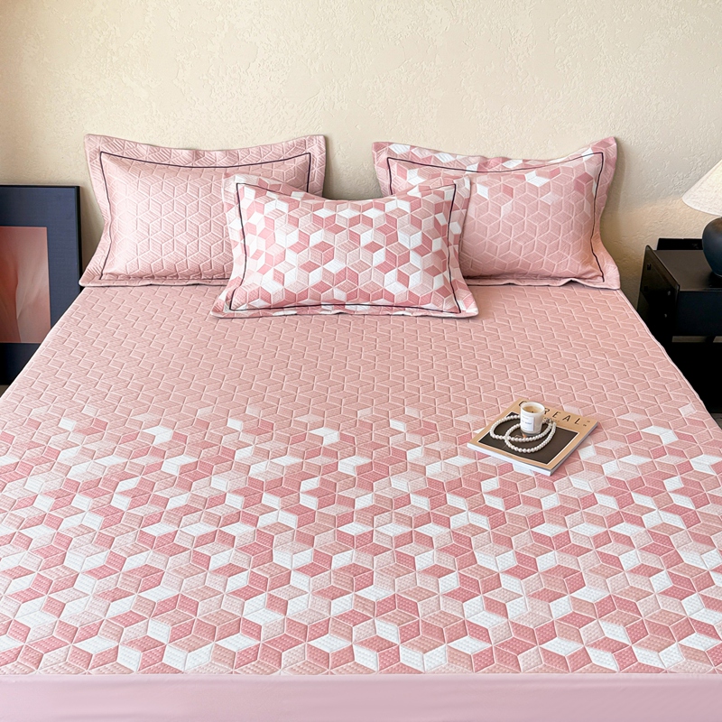 床上用品 > 床笠 > 若未家居 LOVEWE HOUSE 2025新款800克进口高分子100%乙纶PE冷凝凉感软席凉席渐变色织提花系列床笠-床笠款 魔方-粉