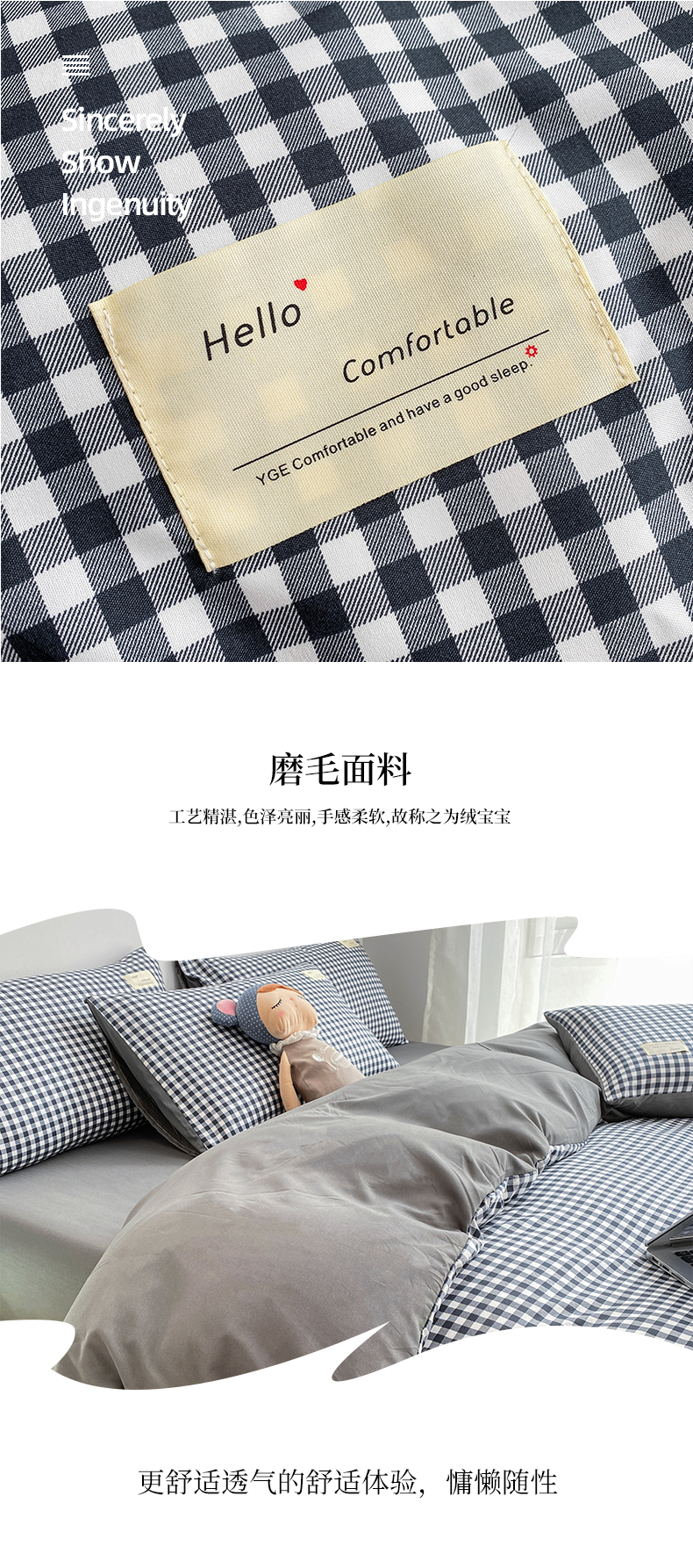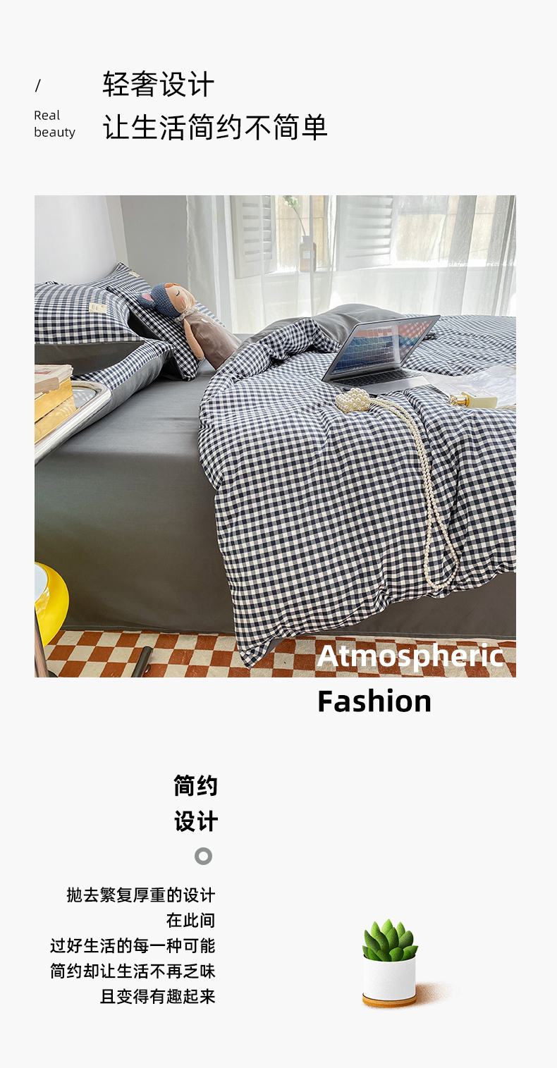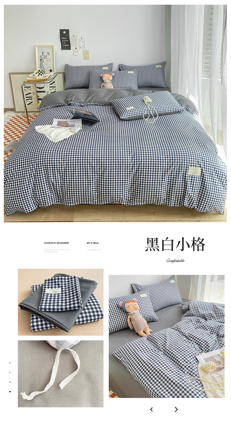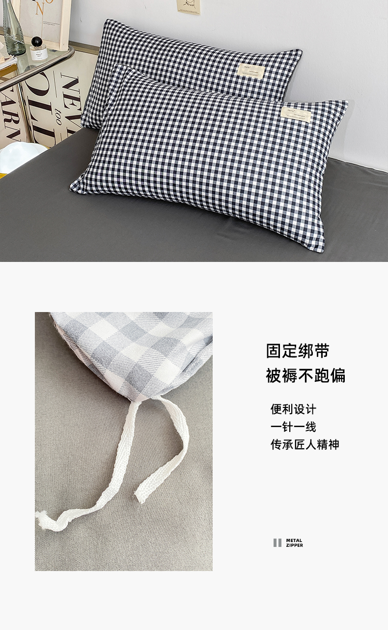 当前位置: 91家纺网 > 商品网购 > 床品套件 > 四件套 > 雅阁尔家纺2025新款无印良品风棋盘格贴标四件套 黑白小格