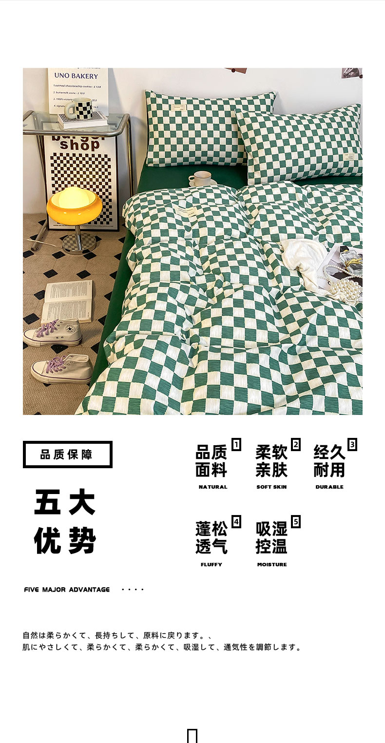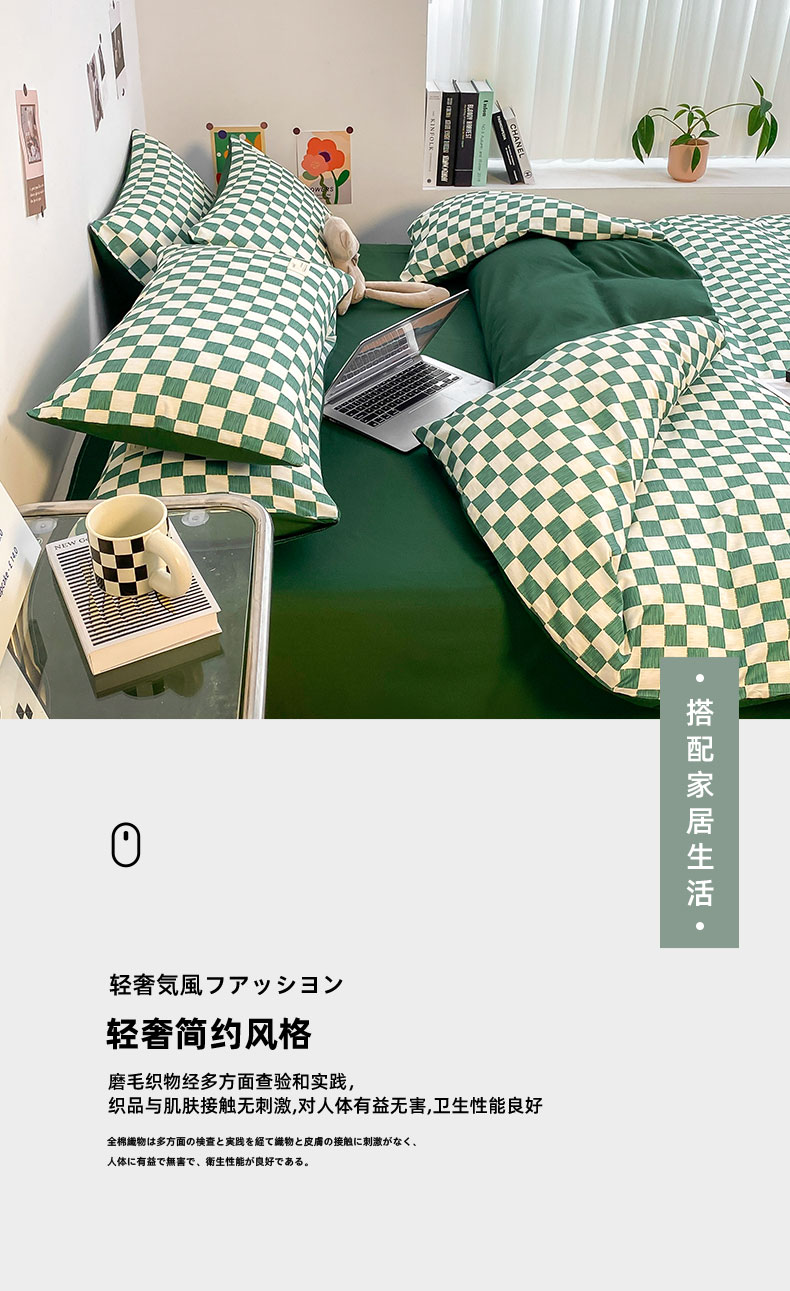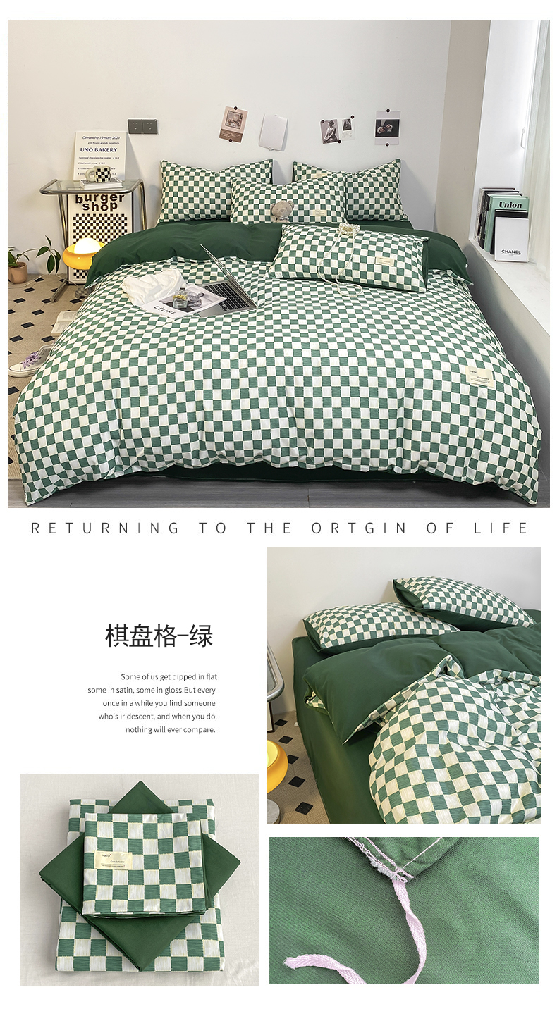 当前位置: 91家纺网 > 商品网购 > 床品套件 > 四件套 > 雅阁尔家纺2025新款无印良品风棋盘格贴标四件套 棋盘格-绿