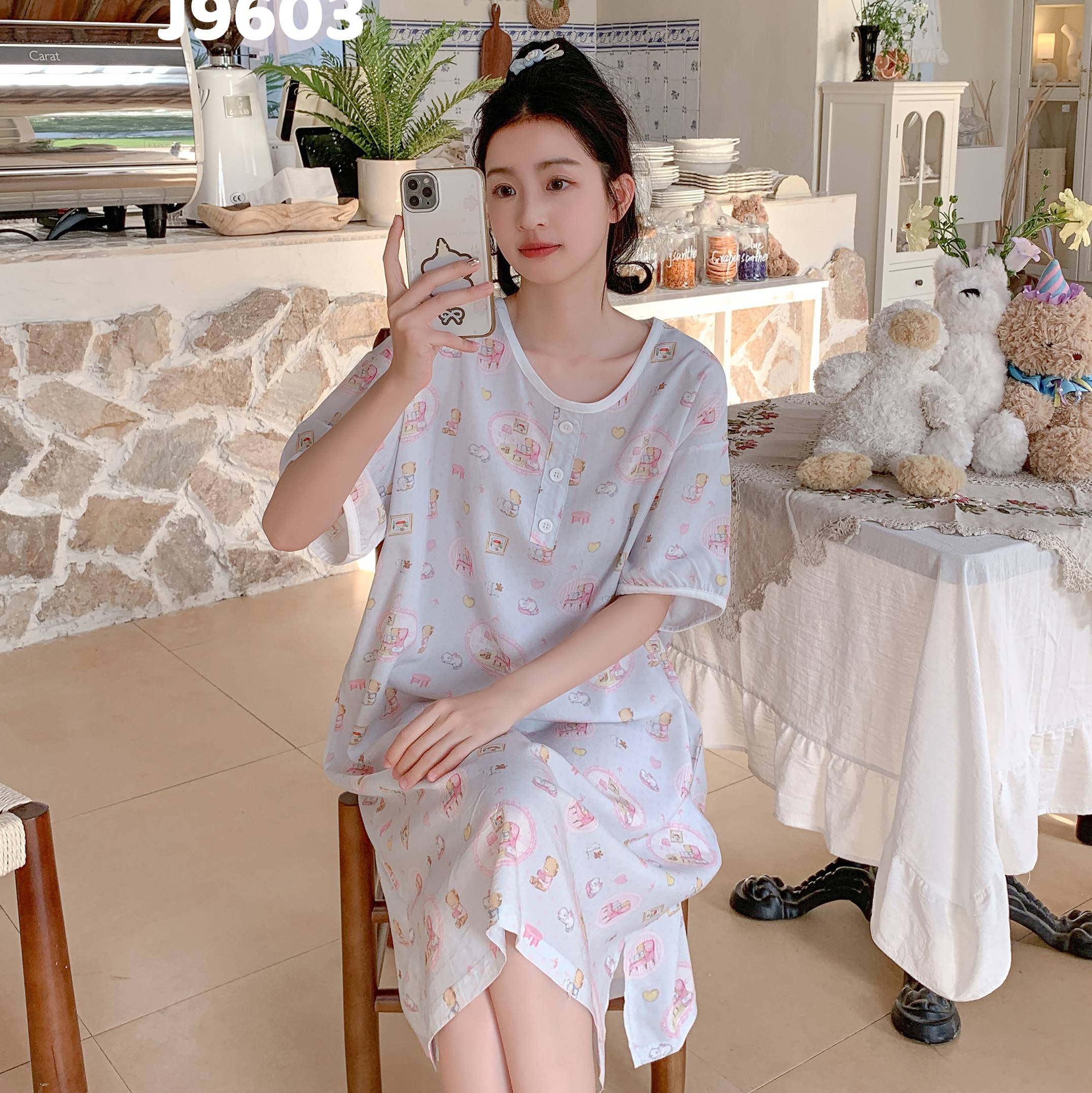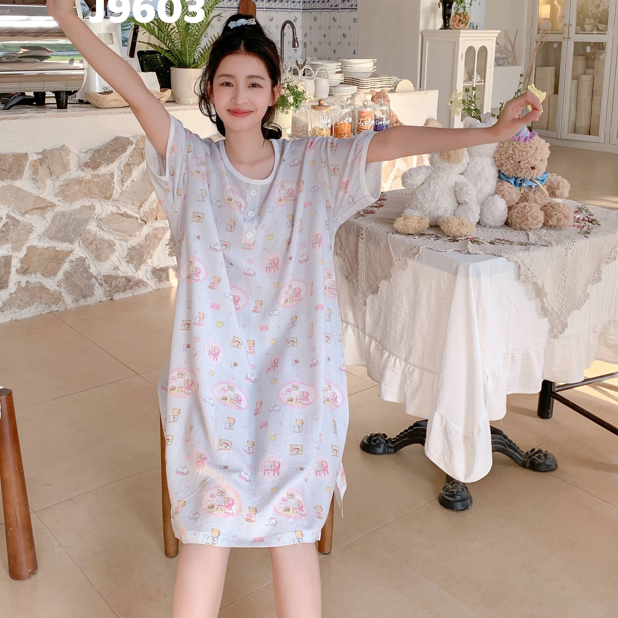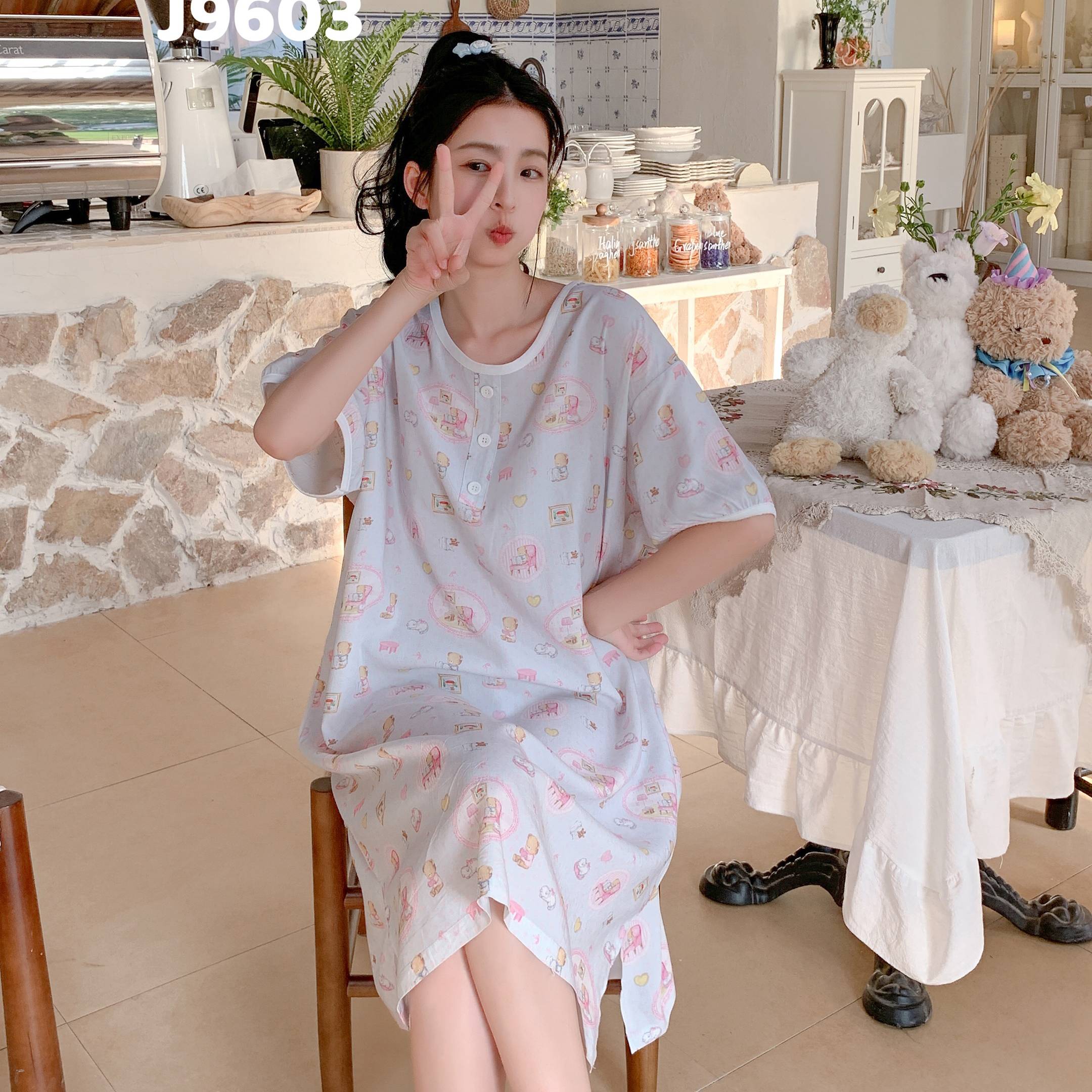 当前位置: 91家纺网 > 商品网购 > 居家日用 > 睡衣/家居服套装 > 妍景家居生活馆 2025新款仲夏午后懒人睡裙 蓝点小熊