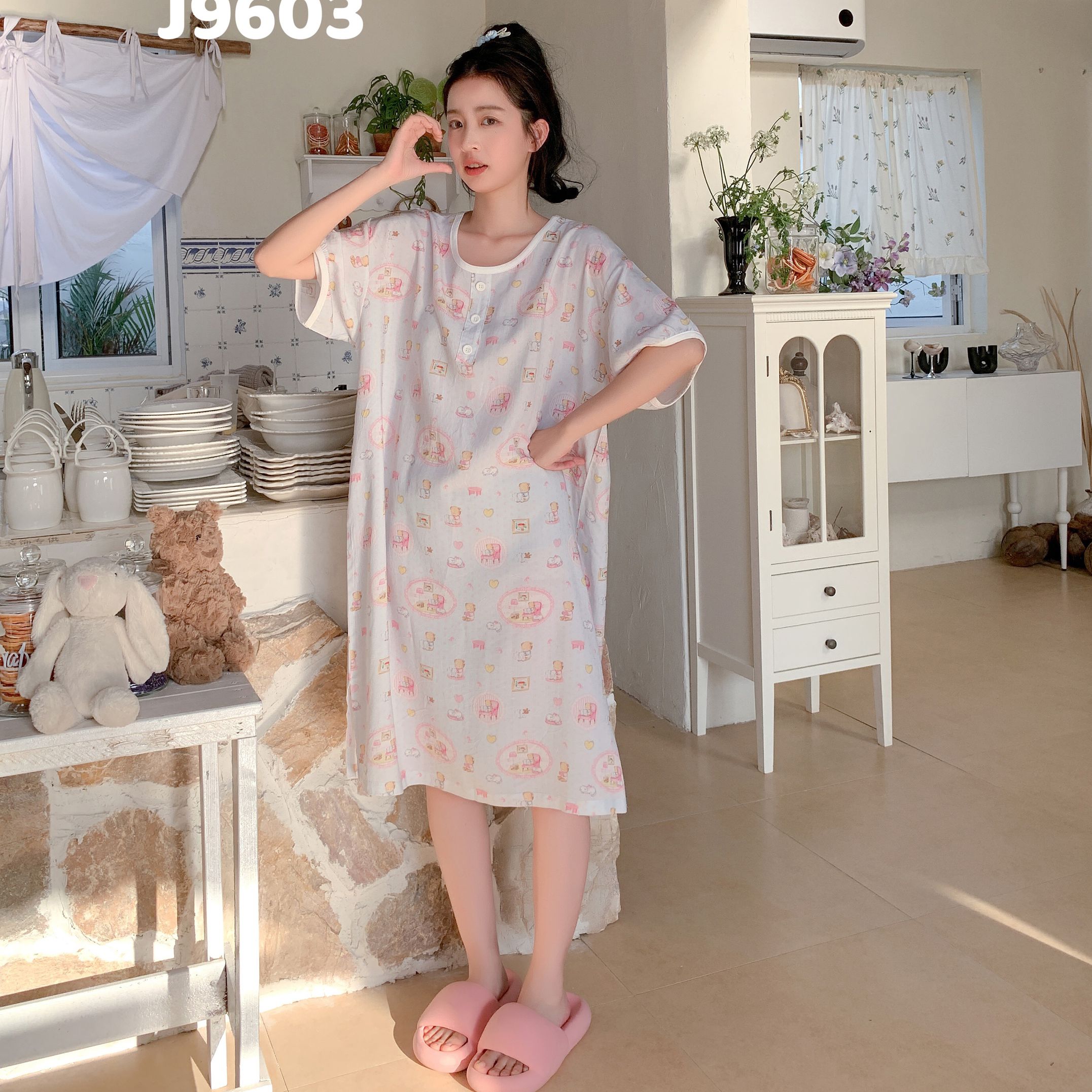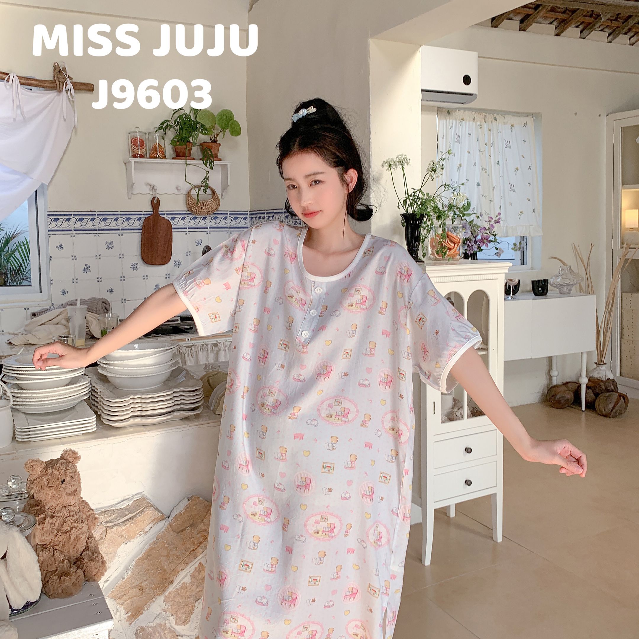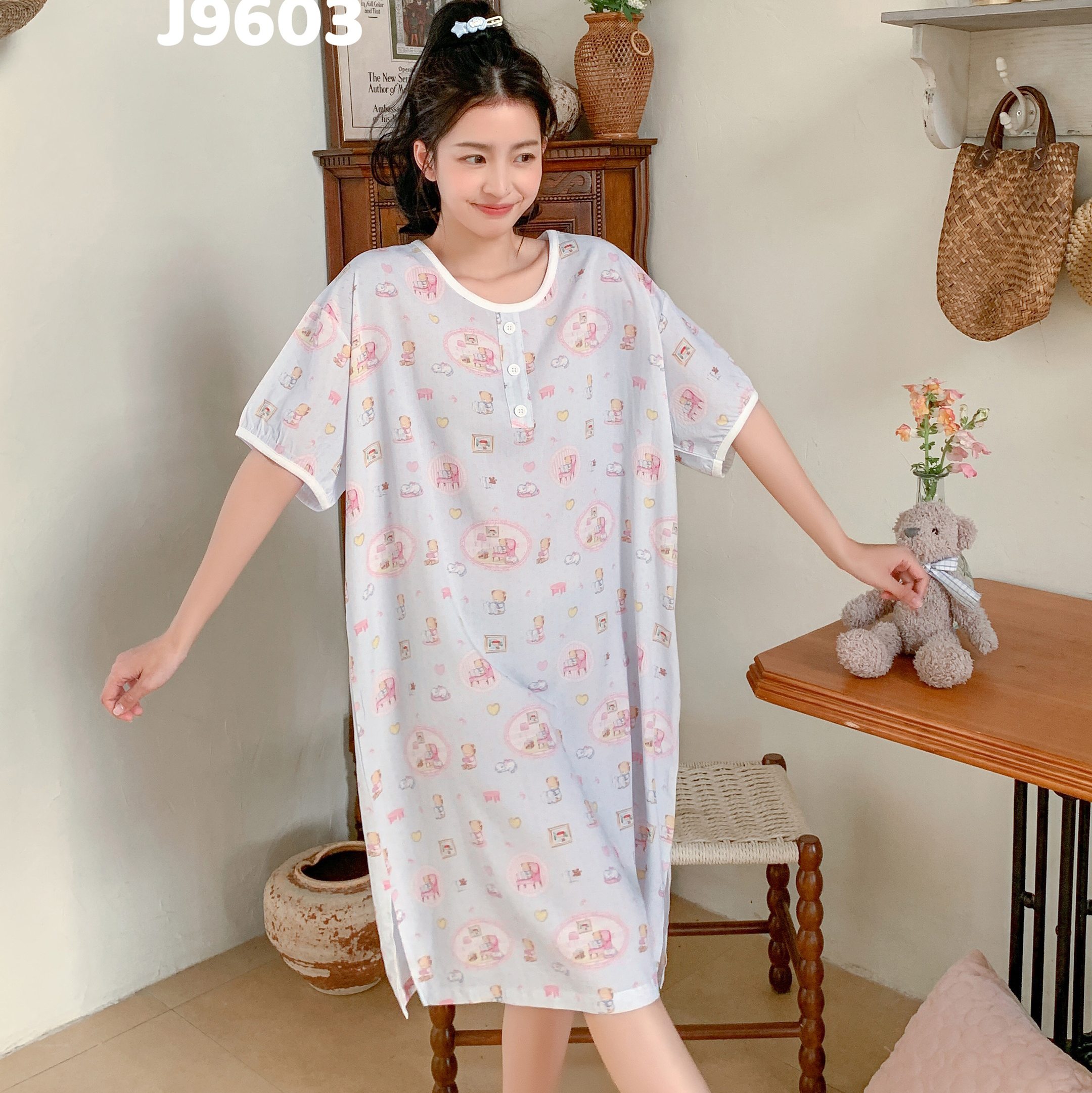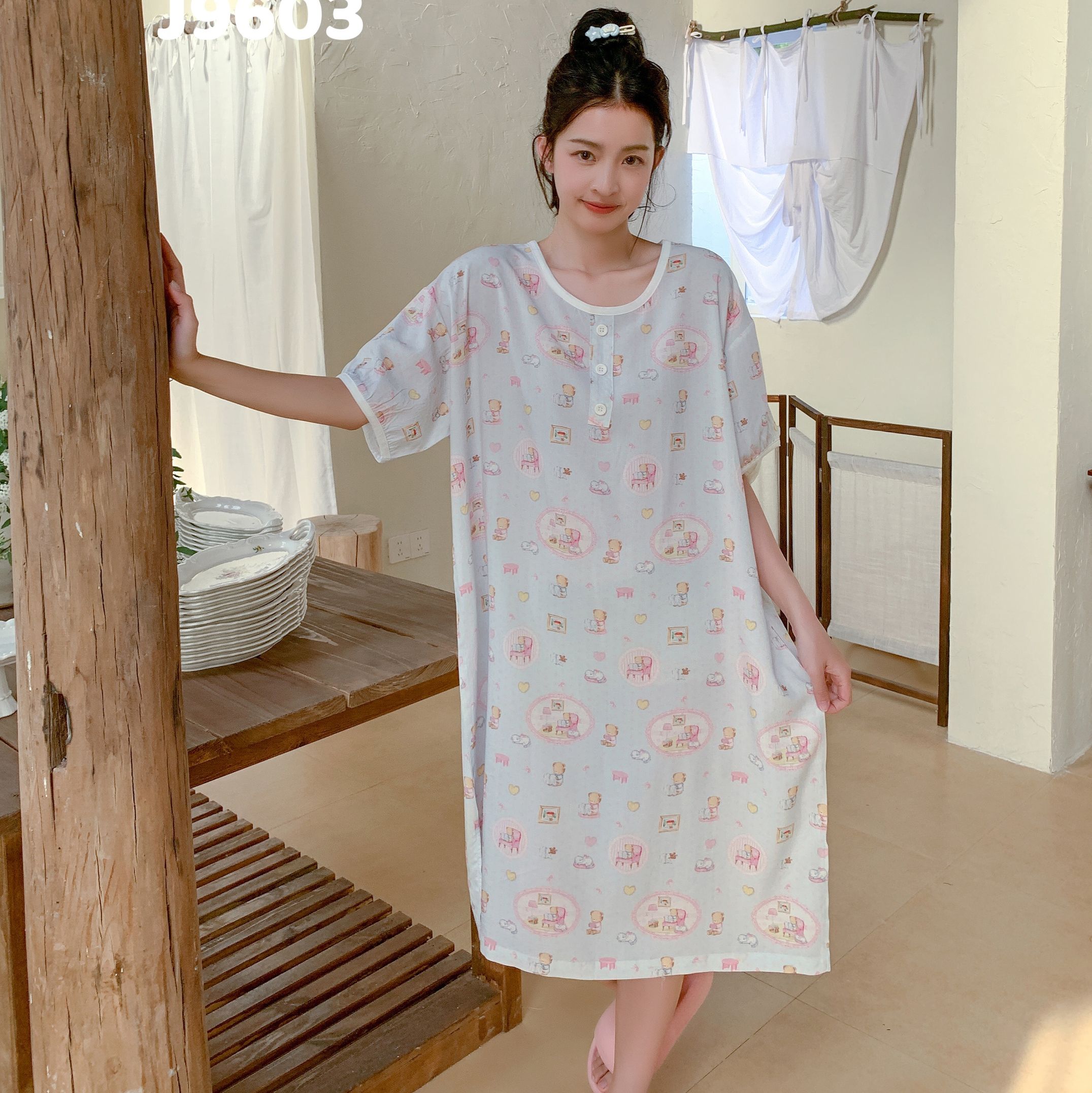 当前位置: 91家纺网 > 商品网购 > 居家日用 > 睡衣/家居服套装 > 妍景家居生活馆 2025新款仲夏午后懒人睡裙 蓝点小熊