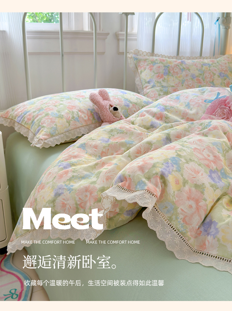 商品名称:(总)曼之夏 2025新款小清新全棉双层纱四件套