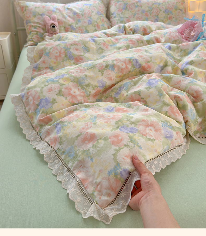 (总)曼之夏 2025新款小清新全棉双层纱四件套