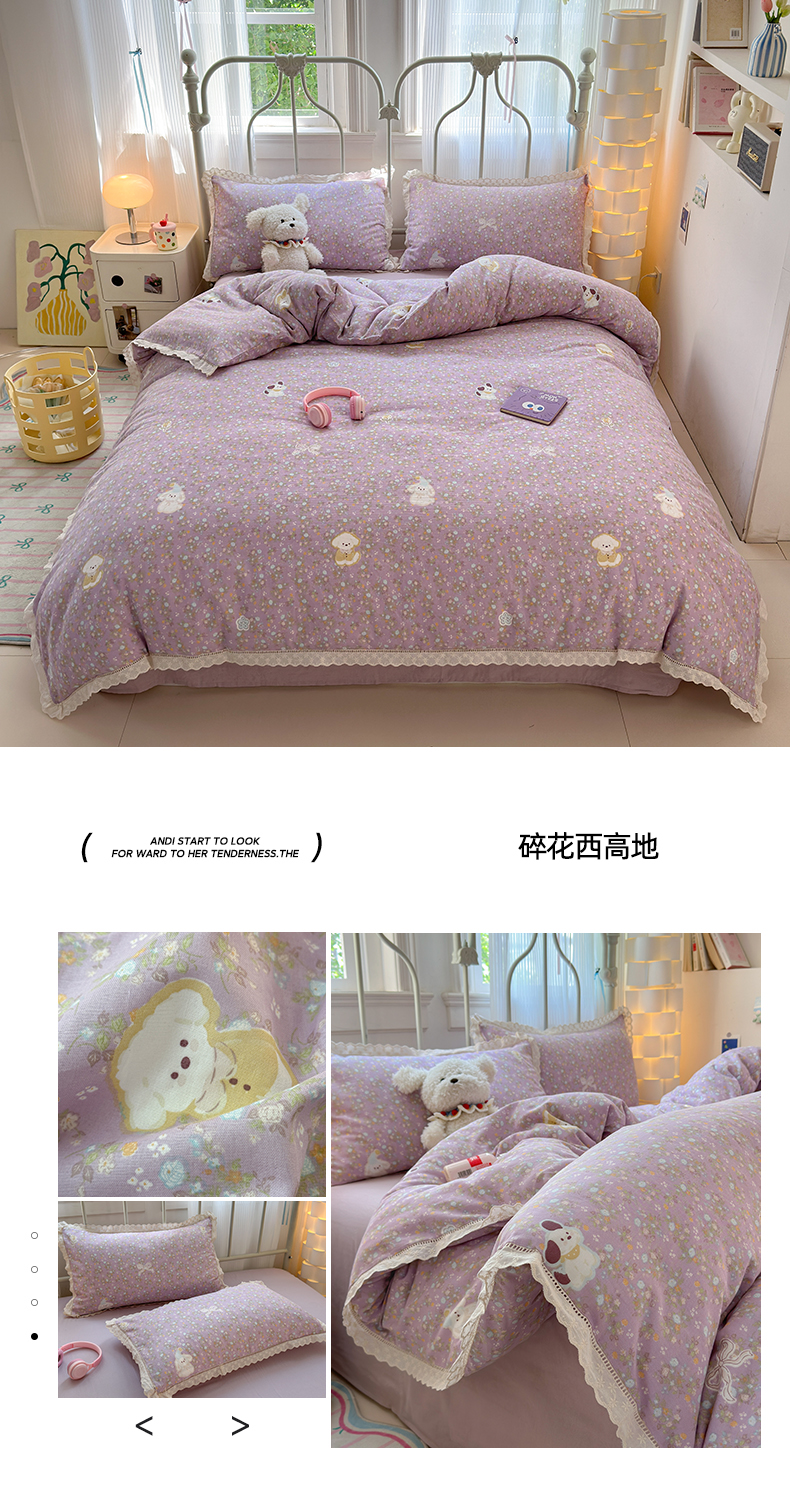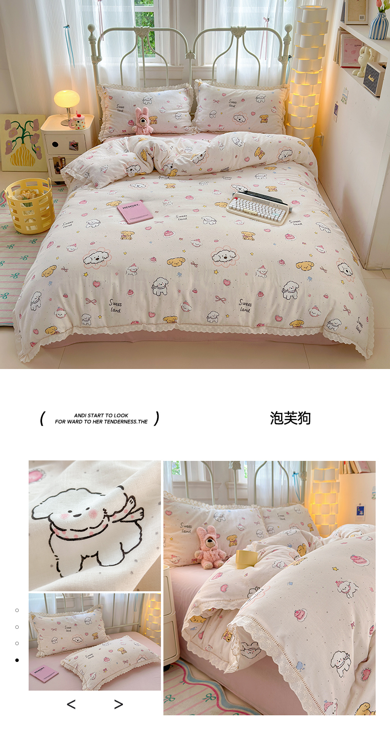 (总)曼之夏 2025新款小清新全棉双层纱四件套,半岛红茶,彩虹樱桃,春日熊,哈基米,黄油小熊,可颂,泡芙狗,晴天,如愿,碎花西高地,吾欢喜,夏日限定,小满,辛巴