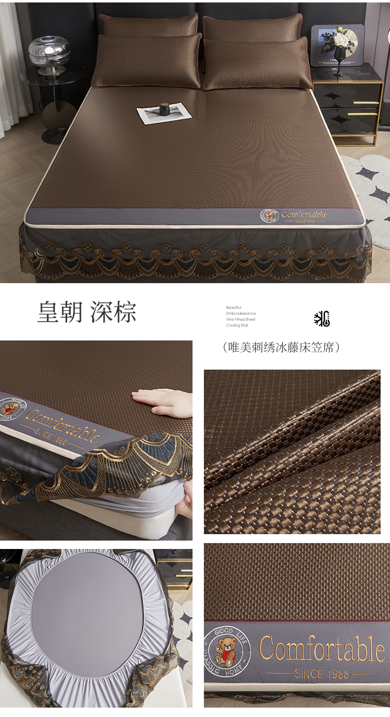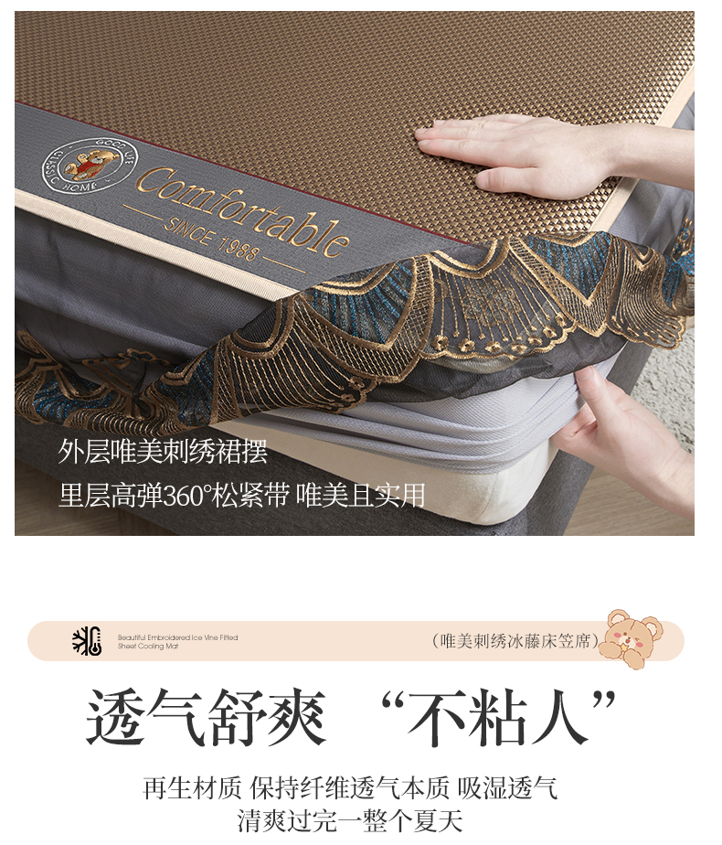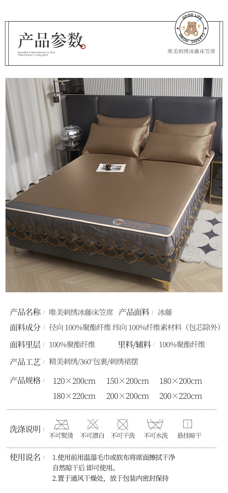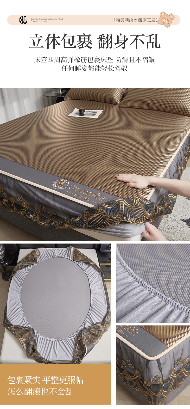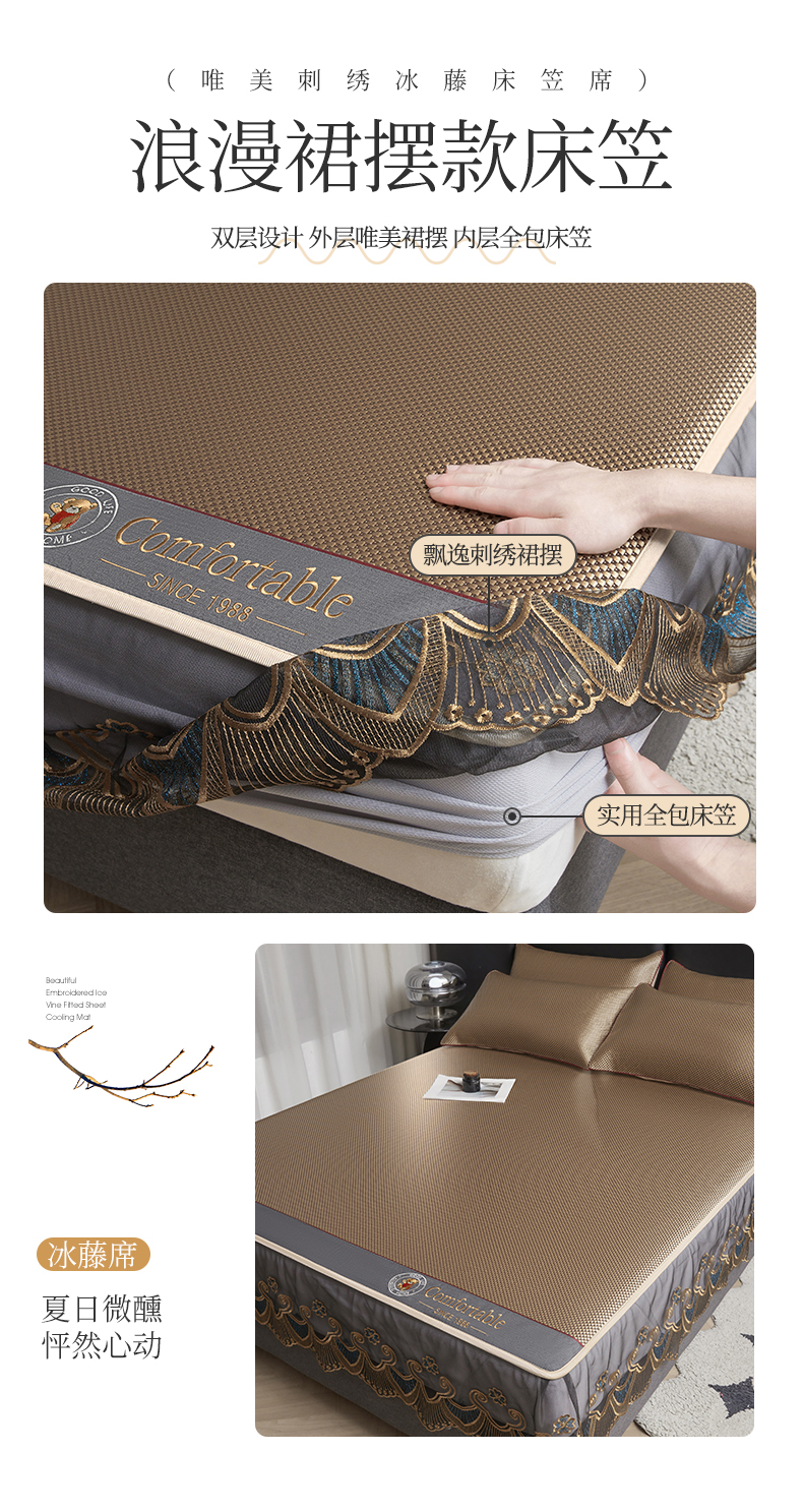 商品名称:情恒家纺 2025新款冰藤席床笠款三件套 皇朝 炽金