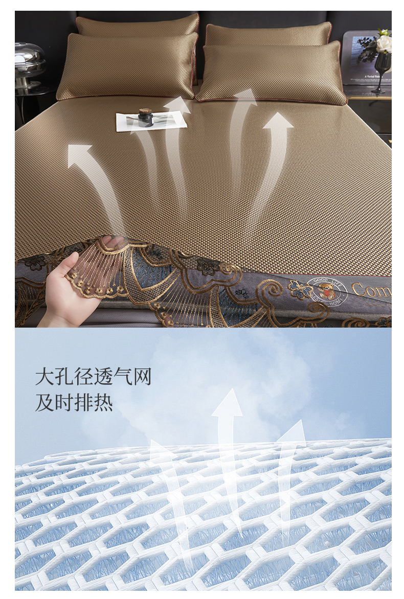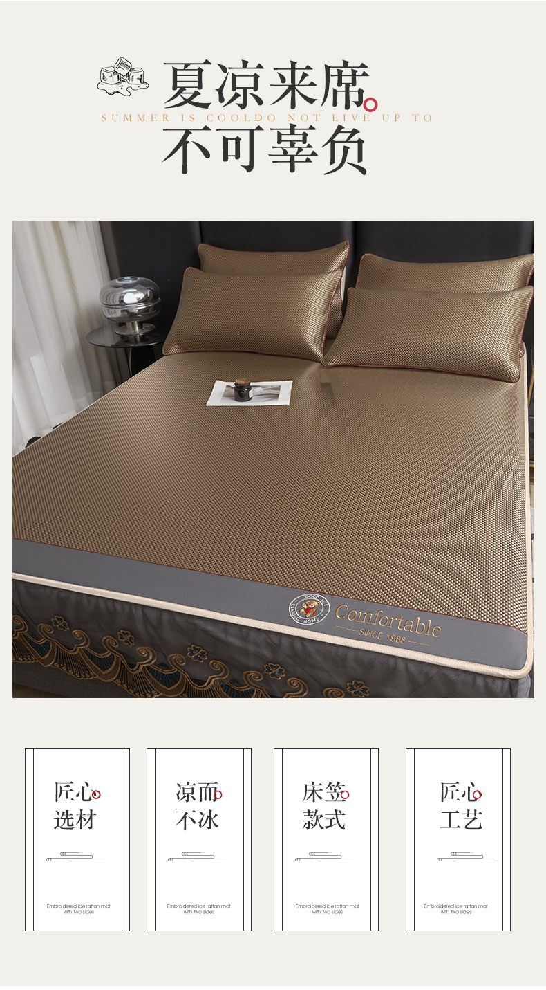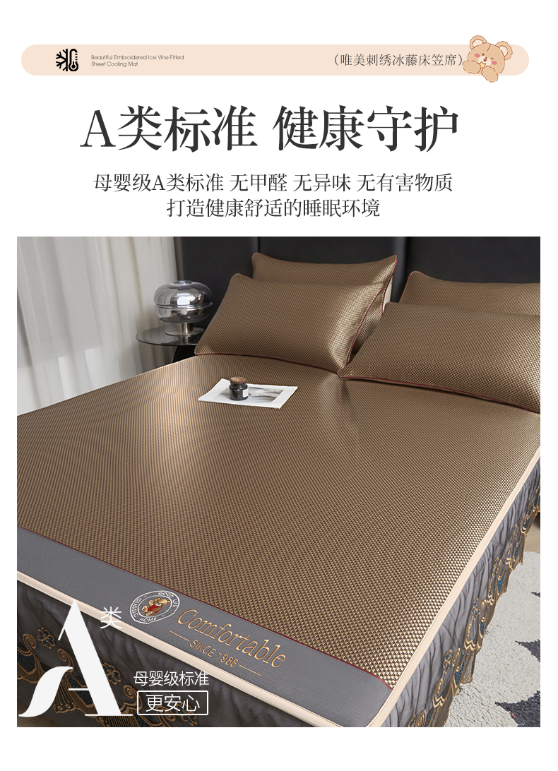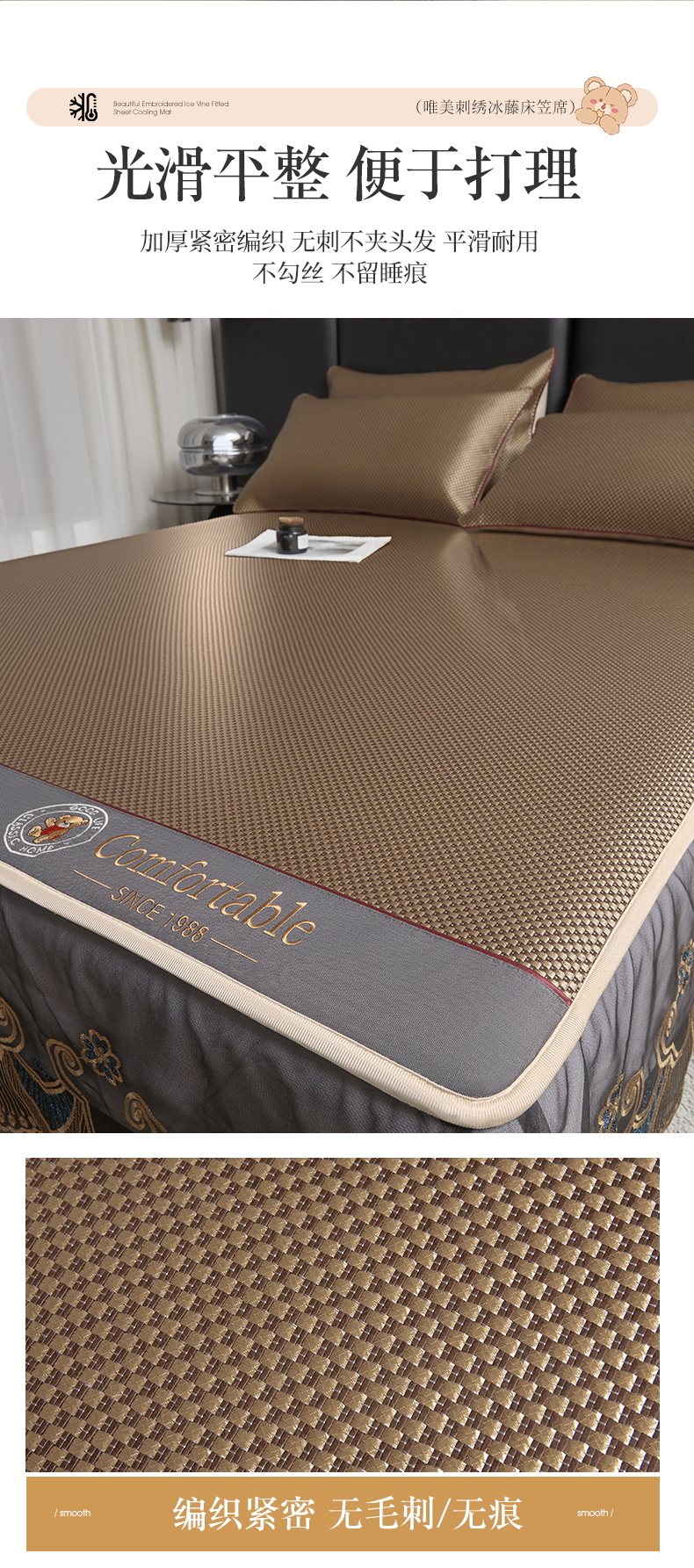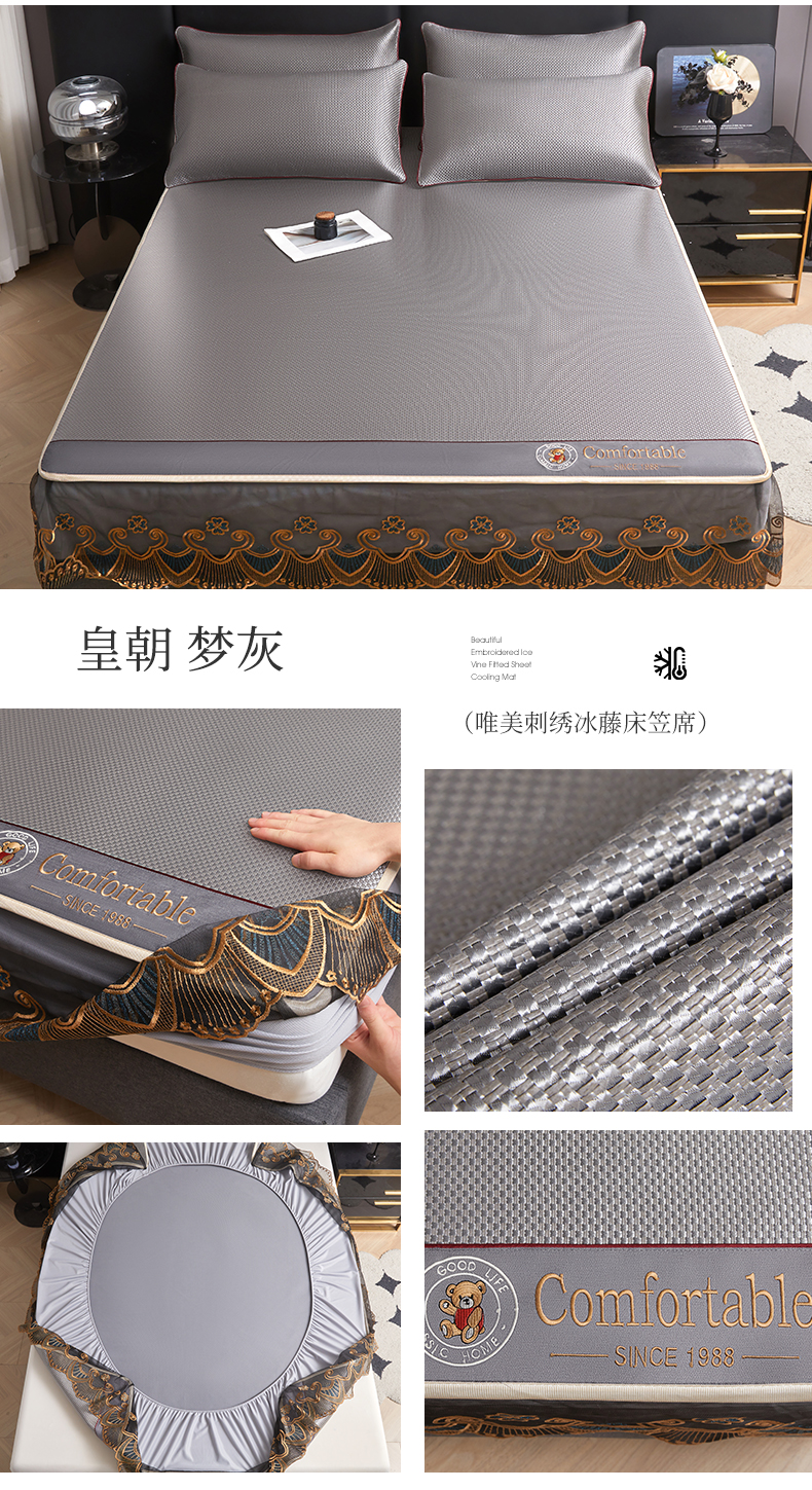 商品名称:情恒家纺 2025新款冰藤席床笠款三件套 皇朝 炽金
