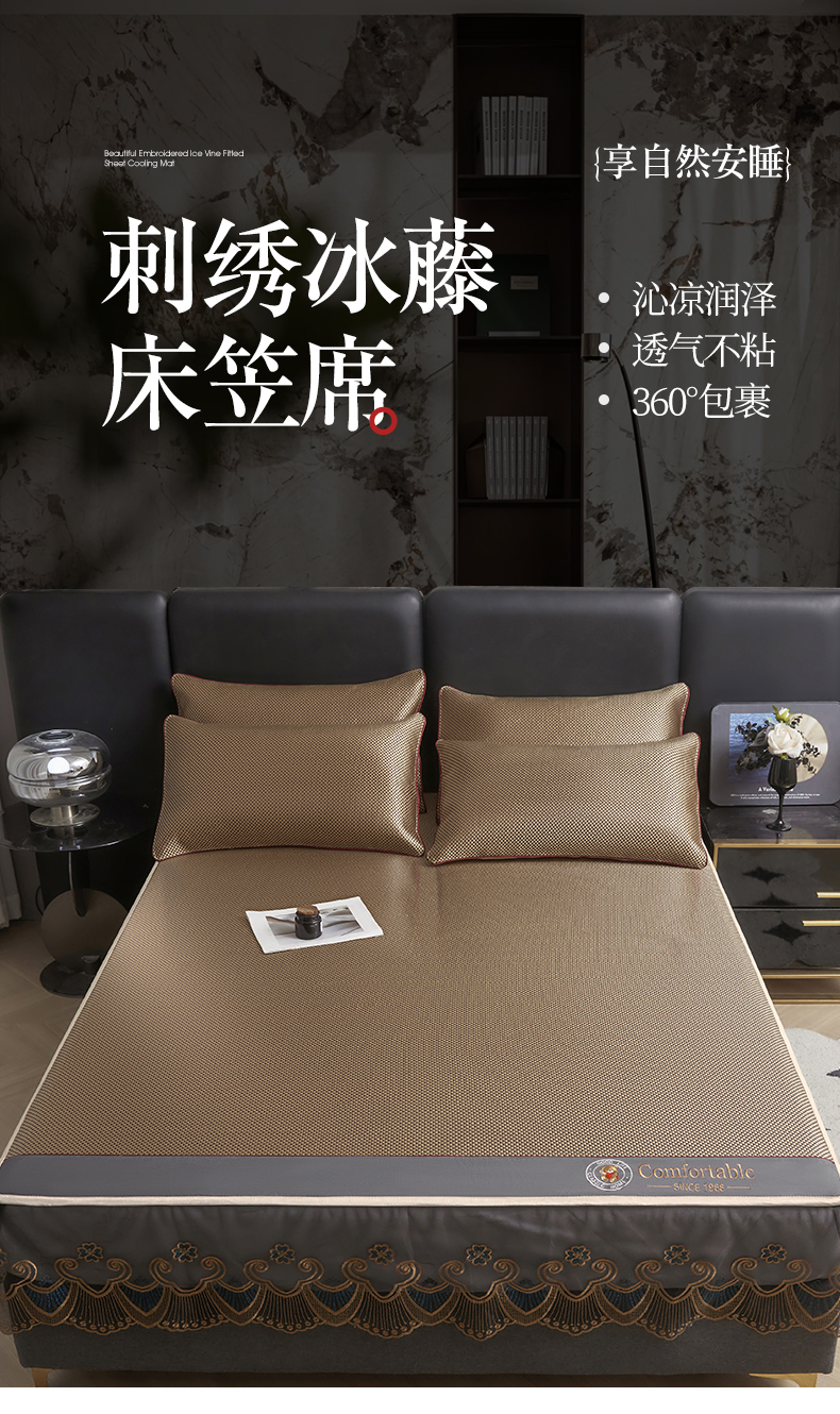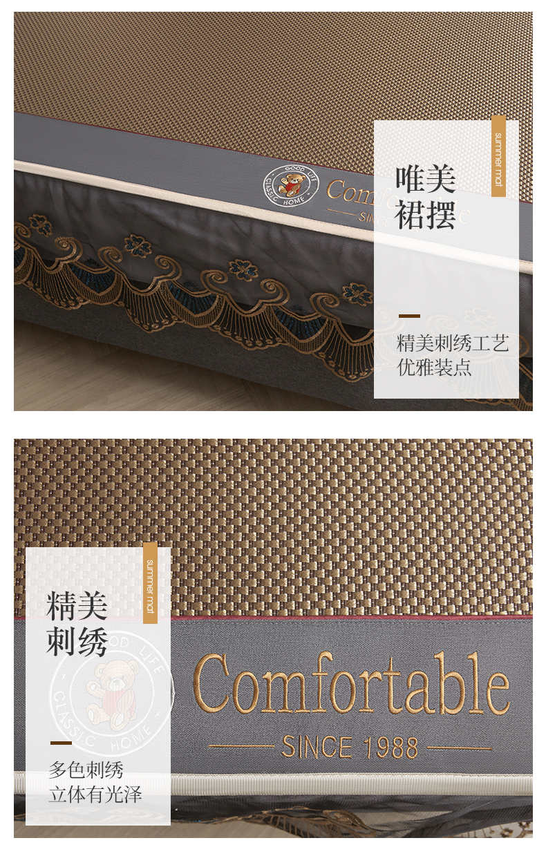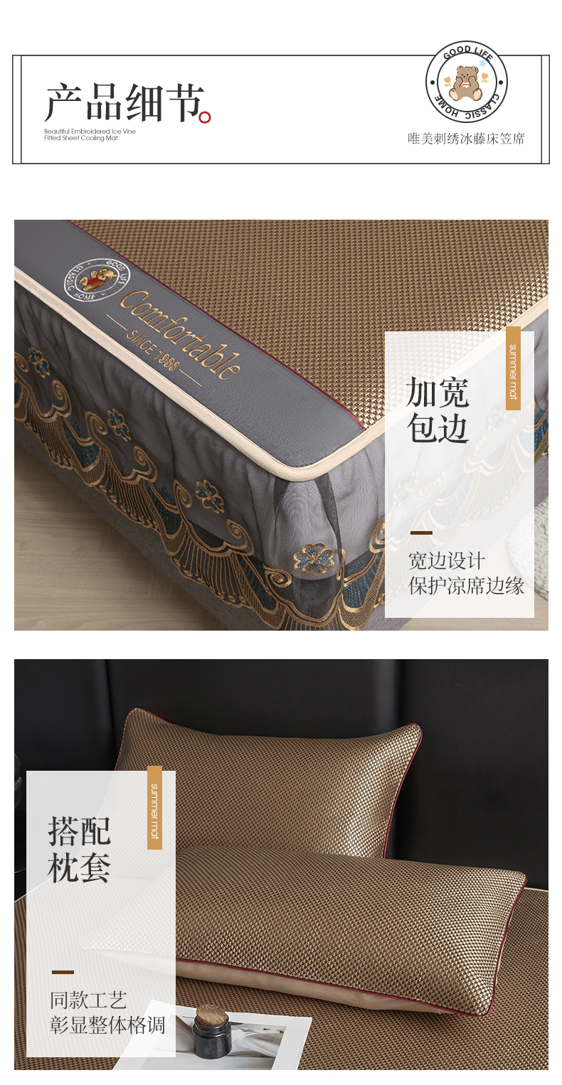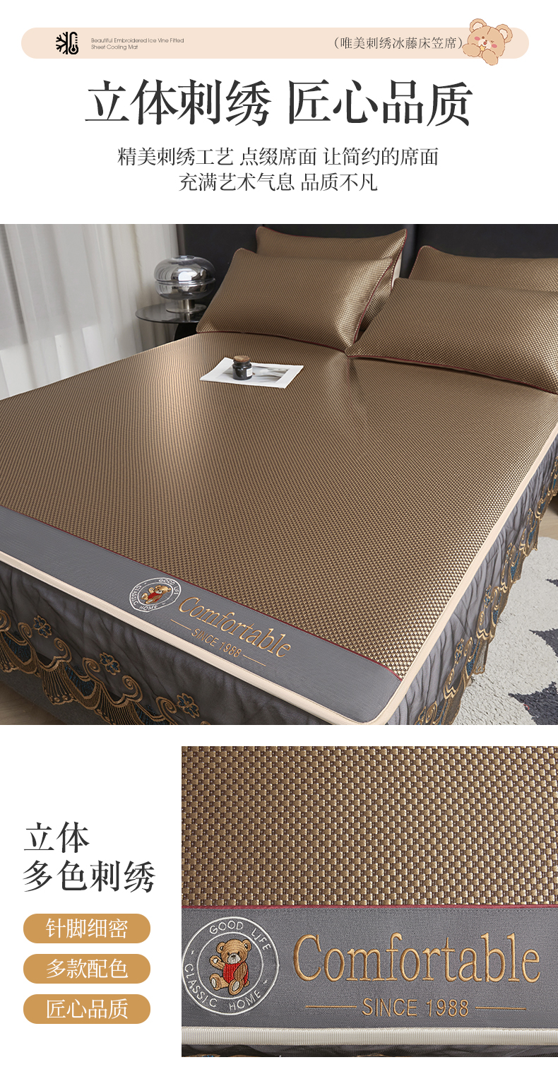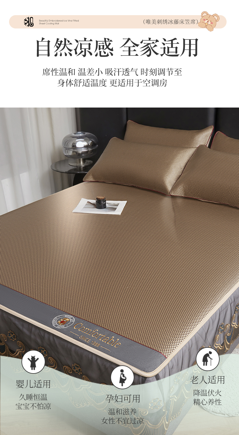 商品名称:情恒家纺 2025新款冰藤席床笠款三件套 皇朝 炽金