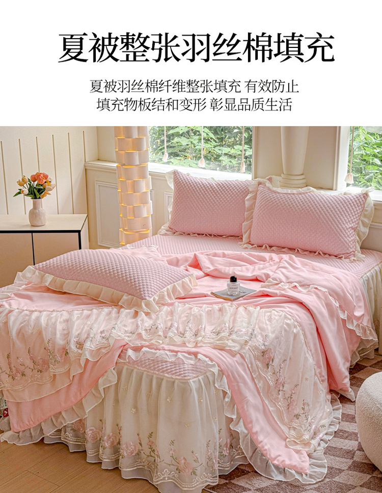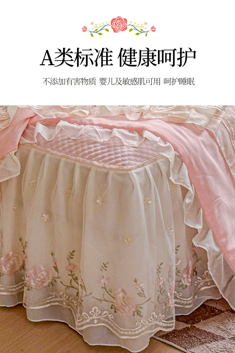 商品名称:漫布云2025新款A类甄选PE凉感丝花边床裙款冰豆豆凉席床盖三件套春夏韩版公主风水洗棉蕾丝夏被 梦幻—梦幻蓝