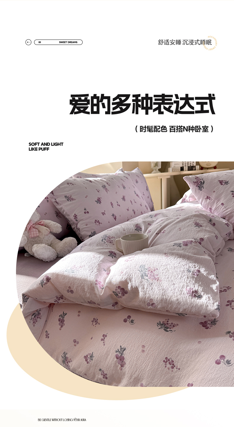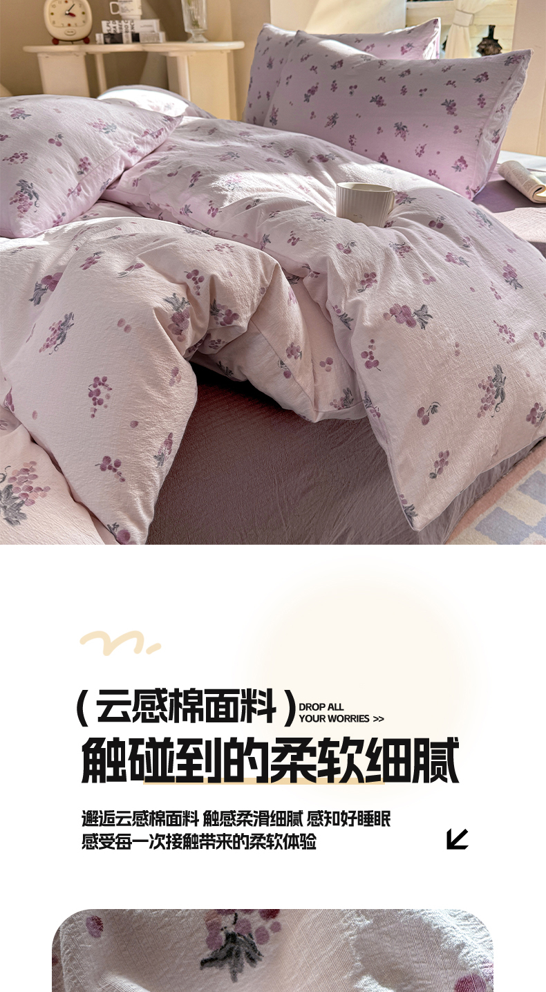 • 91家纺网 家纺一手货源 找家纺 韩巢家纺 2025热销新款云感双层纱单件被套-(提供卖家秀) 葡萄七分甜