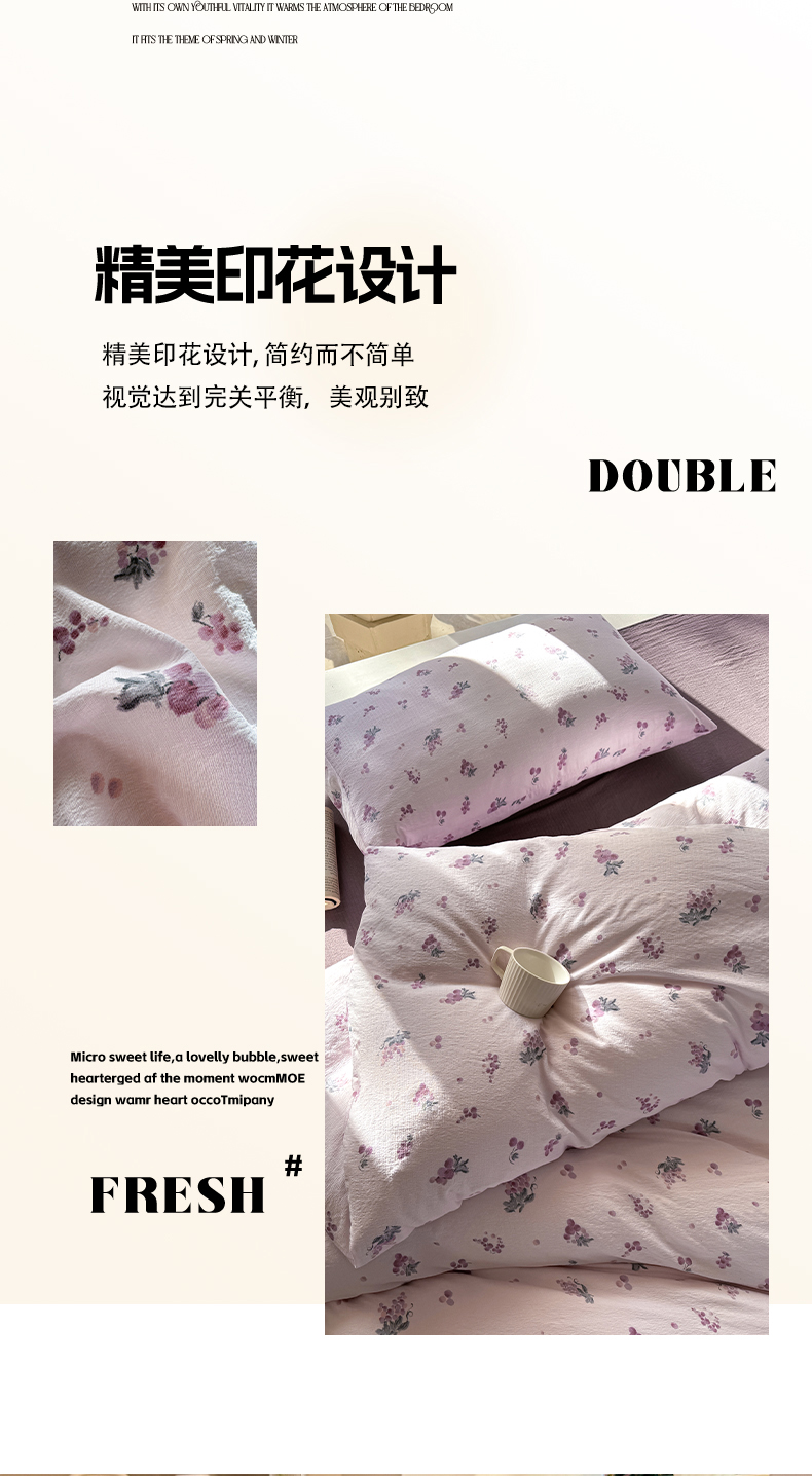 (总)韩巢家纺 2026新款水洗棉花边款四件套,灰蒙小狗【大花边款】,春日与玫瑰【大花边款】,繁花似梦【大花边款】,花时宇间【大花边款】,久期诗朵-黄【大花边款】,可可腊肠犬【大花边款】,奶油樱桃【大花边款】,软糖猫【大花边款】,甜樱恋曲【大花边款】,温暖粉心【大花边款】,小花野-紫【大花边款】,小熊冰淇淋【大花边款】,星梦蝶结【大花边款】,幸运可爱兔【大花边款】,摘樱桃的小熊【大花边款】
