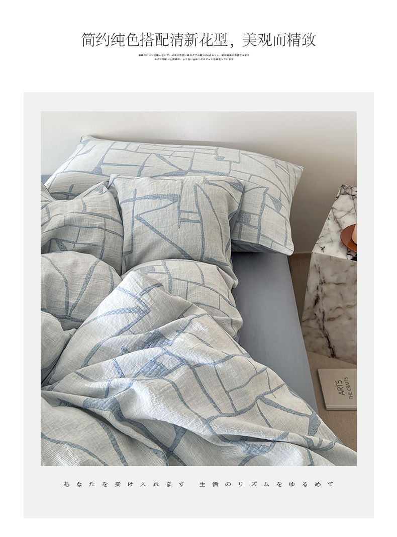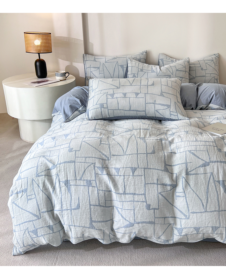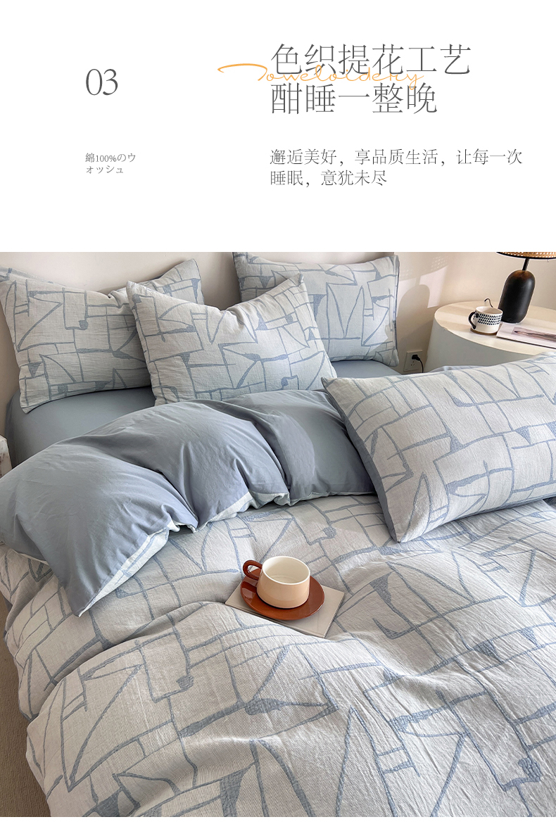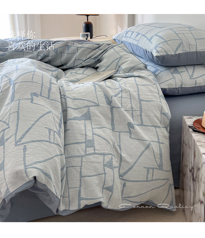 商品名称:小懒猪2025色织水洗双层纱提花四件套 泊影