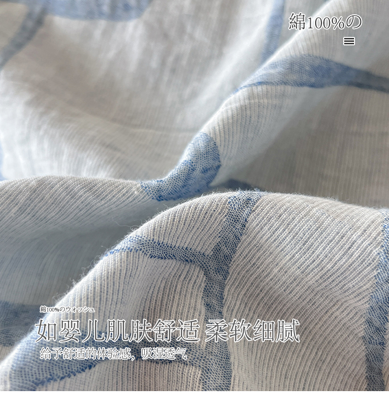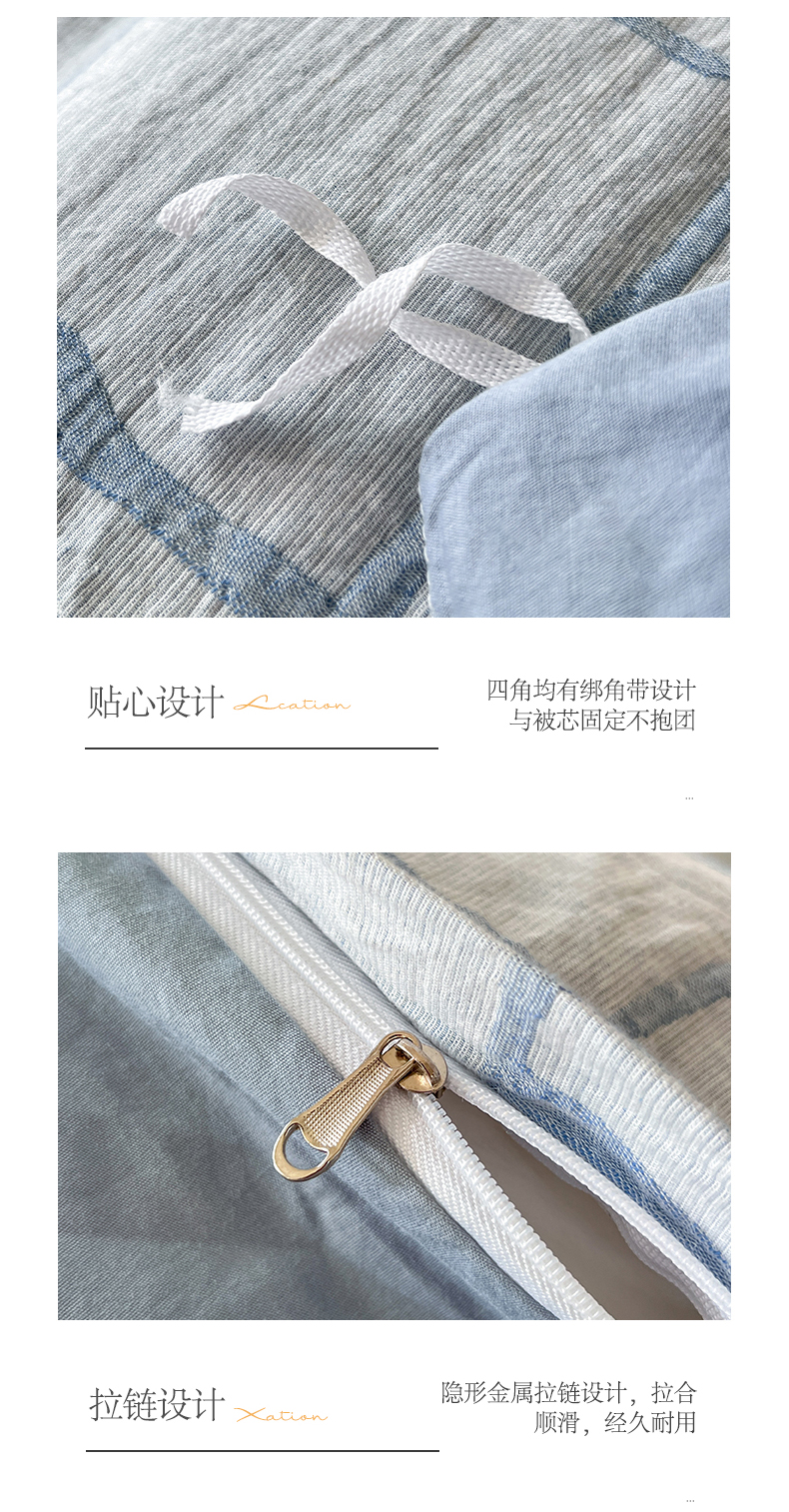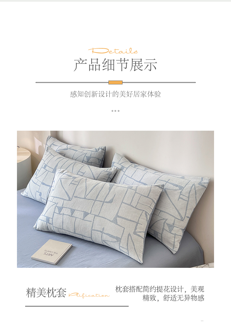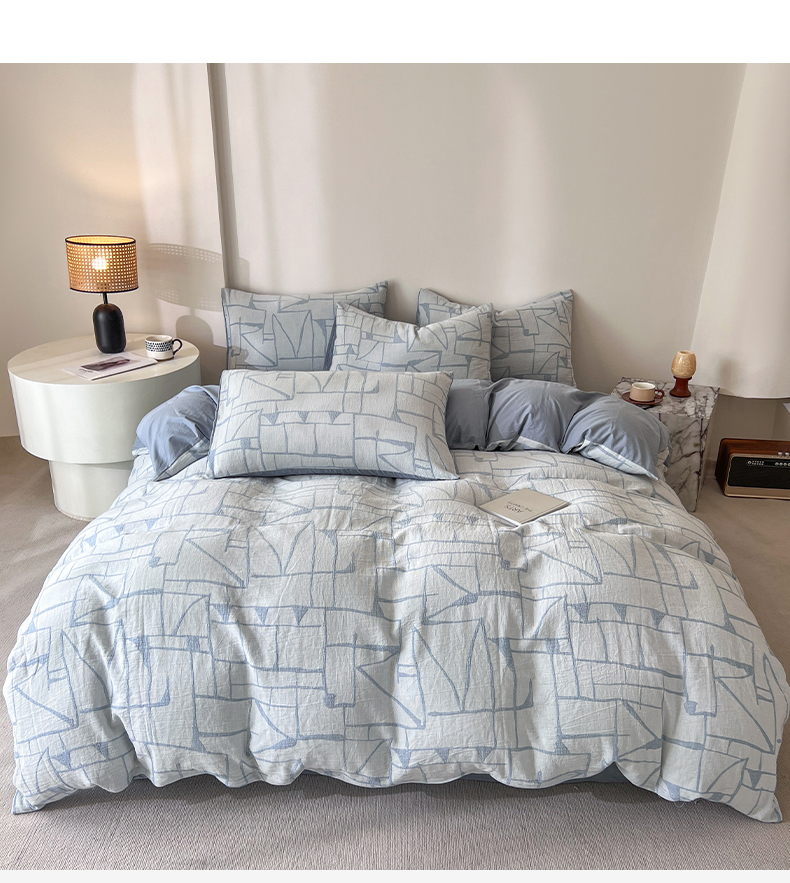 商品名称:小懒猪2025色织水洗双层纱提花四件套 泊影