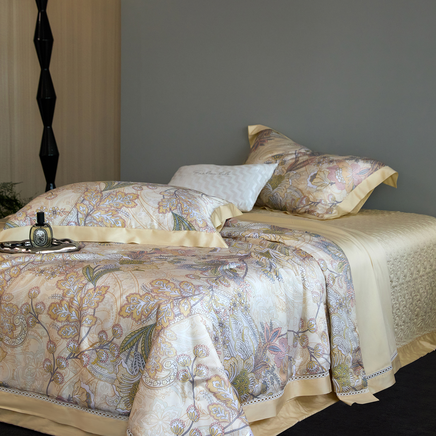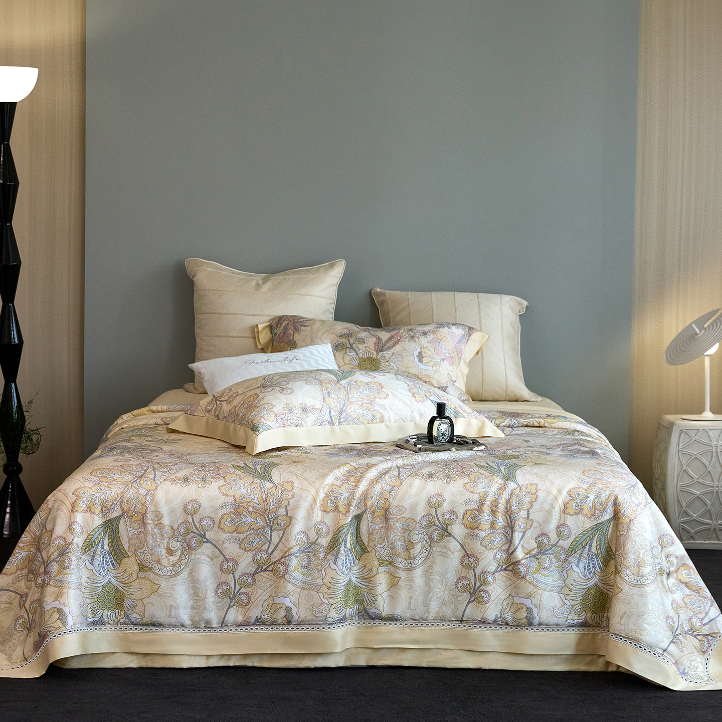 商品名称:时亿家居 2025新款100s天丝棉兰精天丝床盖款夏被四件套-剑桥系列 剑桥 金