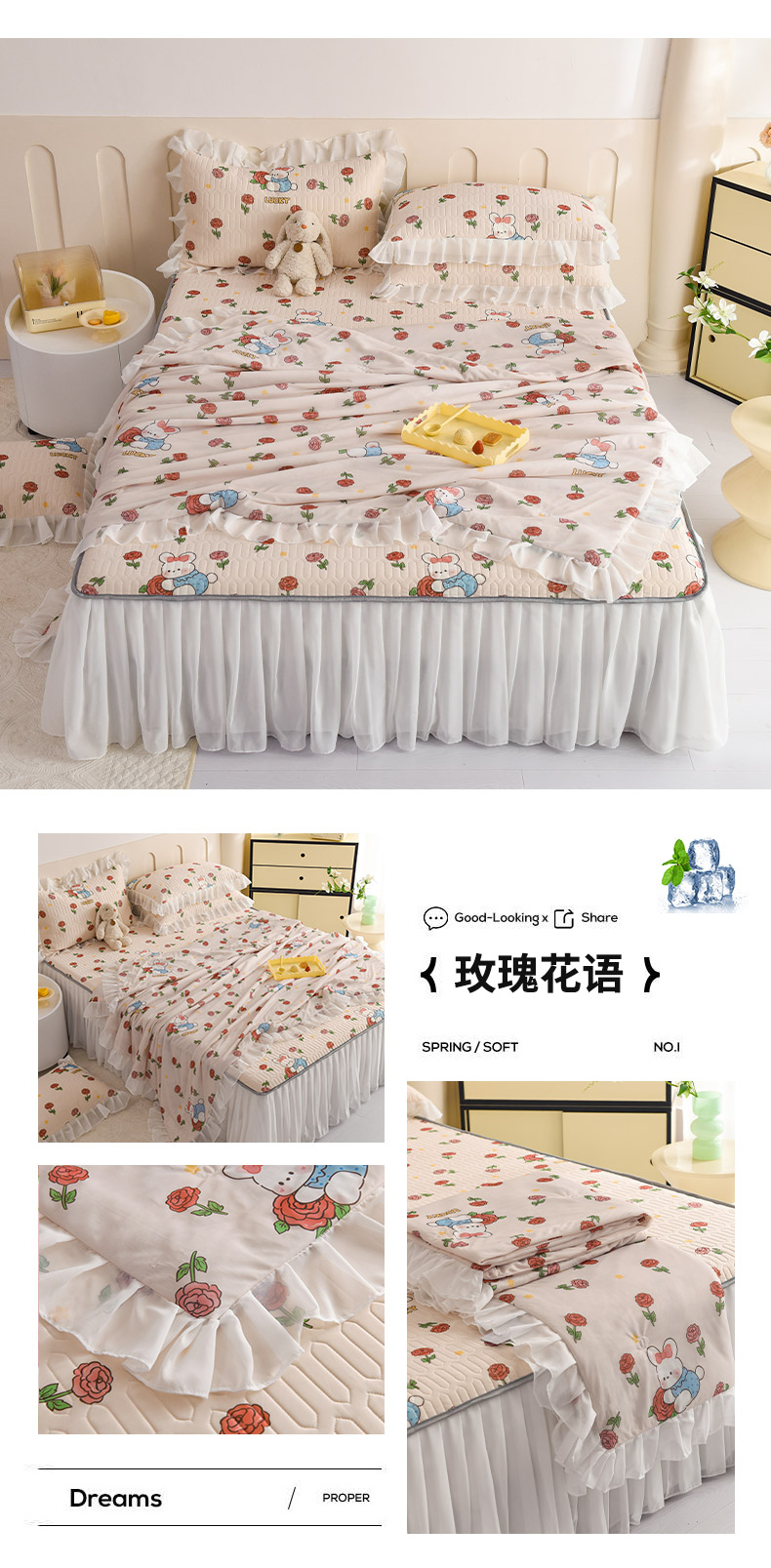 当前位置: 91家纺网 > 商品网购 > 床品套件 > 四件套 > 夏被四件套 > 悦织湾家纺 2025新款A类凉感丝床裙款乳胶凉席席子夏被夏凉被空调被四件套 礼物