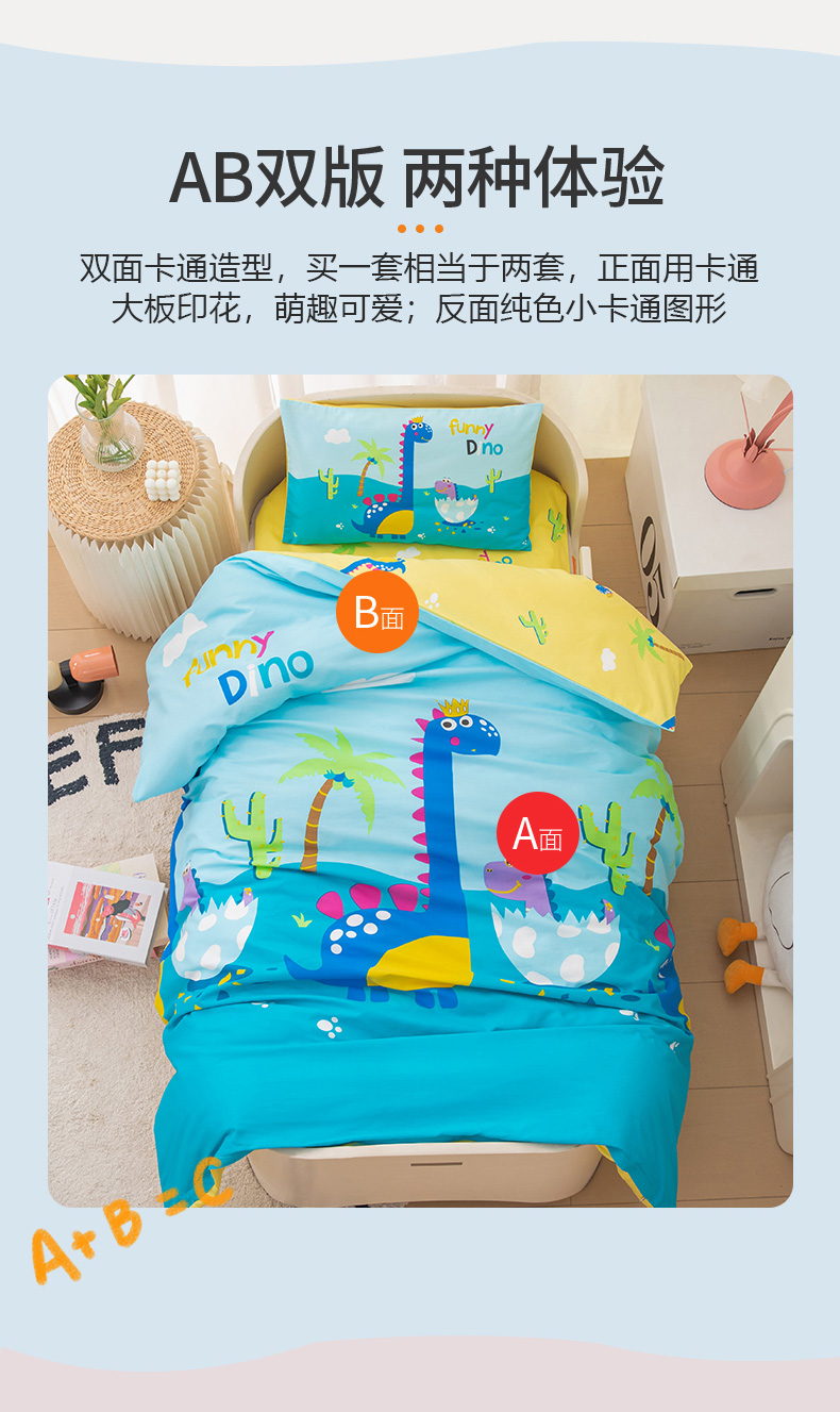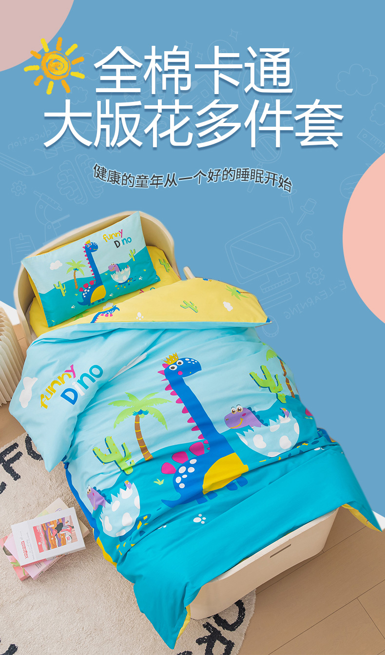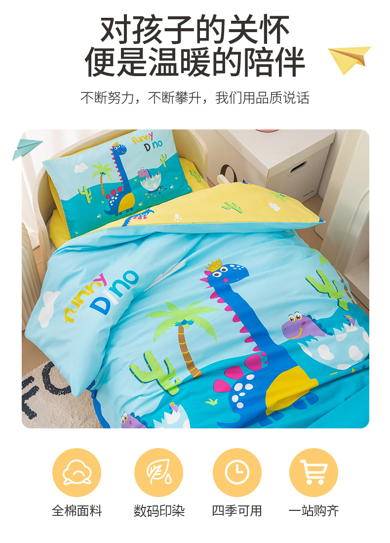 当前位置: 91家纺网 > 商品网购 > 床品套件 > 四件套 > 其它四件套 > 嗨皮宝贝 2025新款全棉纯棉13372幼儿园三件套多件套 霸王龙