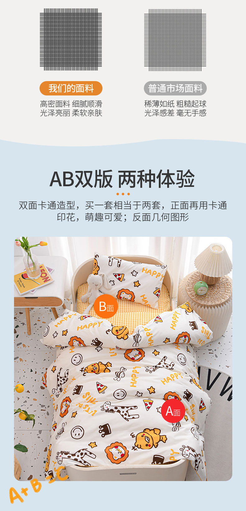 当前位置: 91家纺网 > 商品网购 > 床品套件 > 四件套 > 其它四件套 > 嗨皮宝贝 2025新款全棉纯棉13372幼儿园三件套多件套 梦鹿