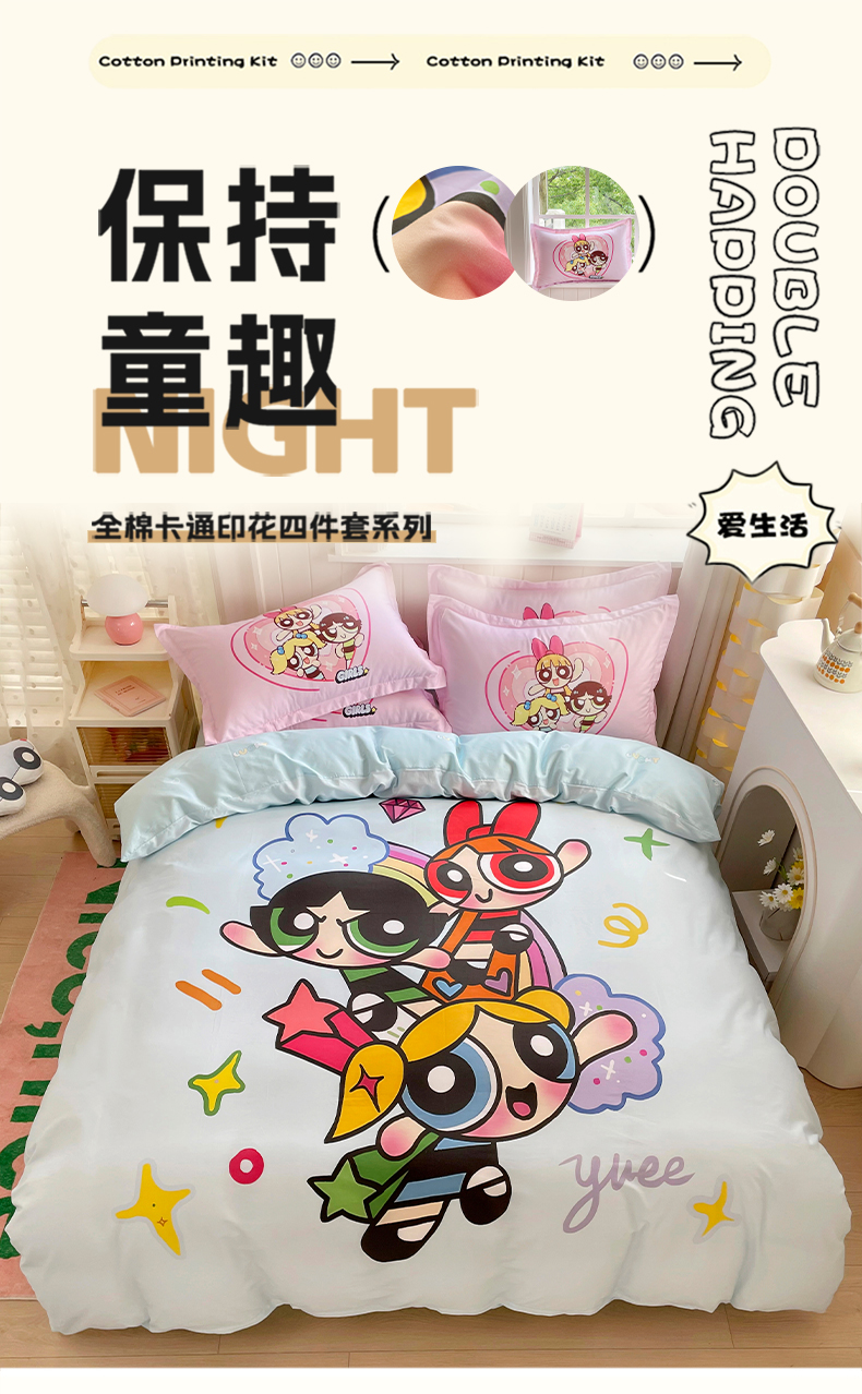 当前位置: 91家纺网 > 商品网购 > 床品套件 > 四件套 > 全棉普通四件套 > 浩诚 2025新款全棉纯棉大版卡通四件套 欢乐女侠