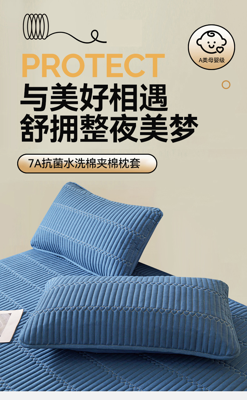 商品名称:雯豆家纺 2025新款简爱夹棉加厚枕套单只一对装水洗棉纯色枕芯保护套 简爱-黛蓝