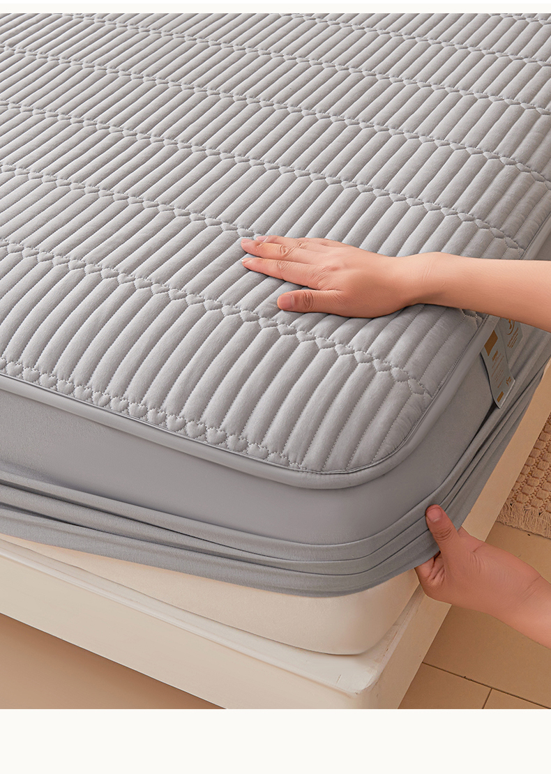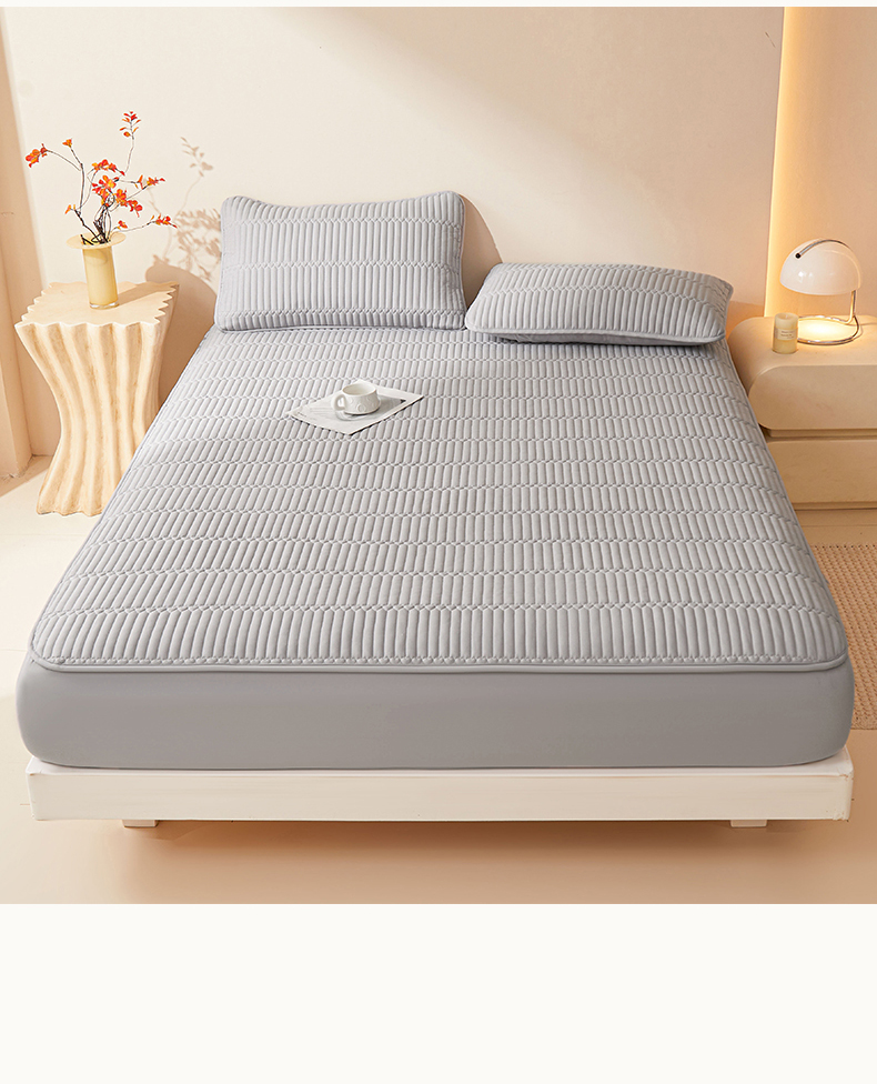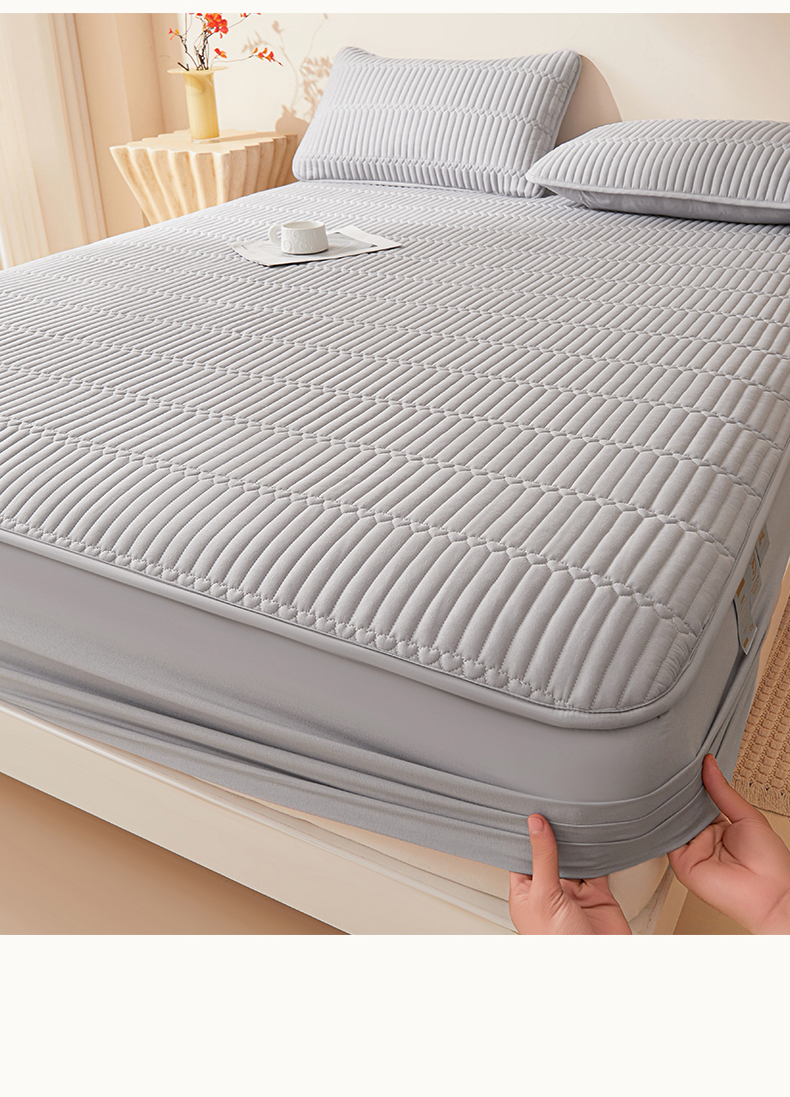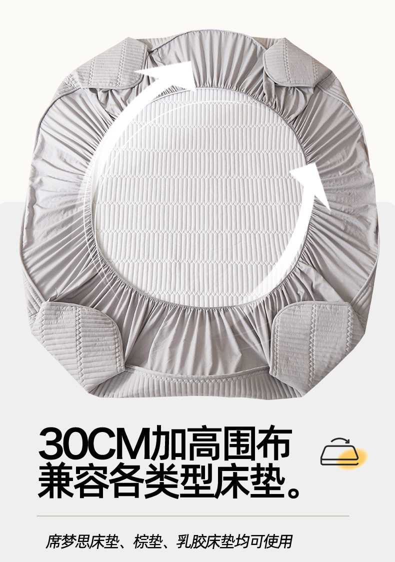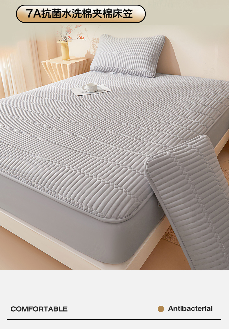• 91家纺网 家纺一手货源 找家纺 雯豆家纺 2025新款简爱A类夹棉床笠三件套水洗棉磨毛床单保护套 简爱-暮云灰