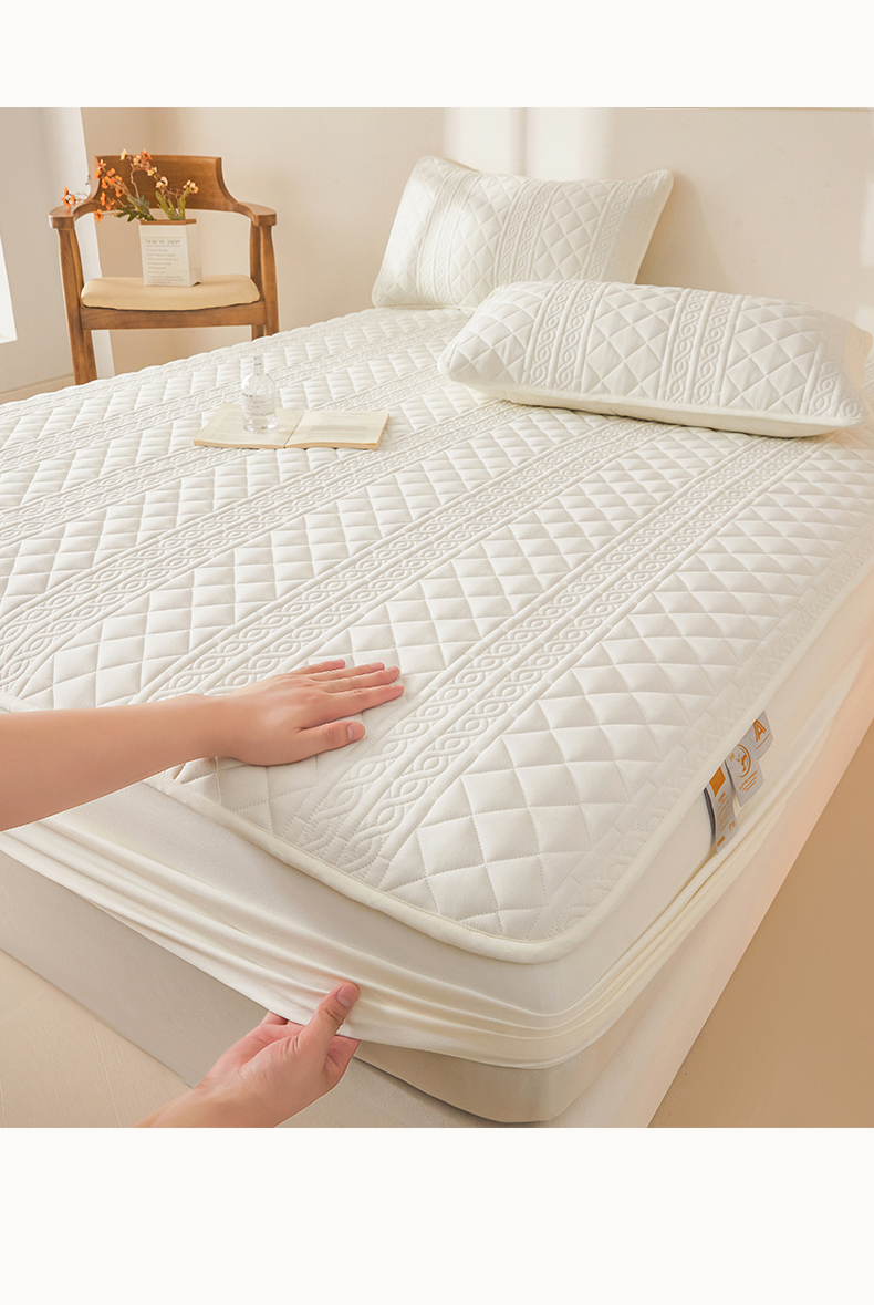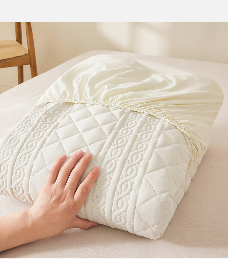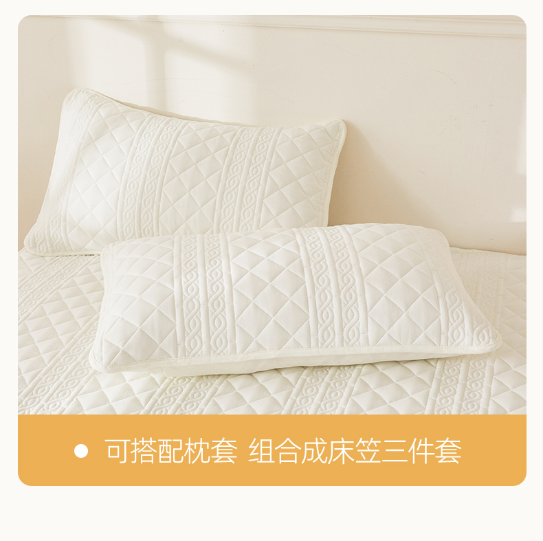 雯豆家纺 2025新款简爱A类夹棉床笠三件套水洗棉磨毛床单保护套 梵可-月光白