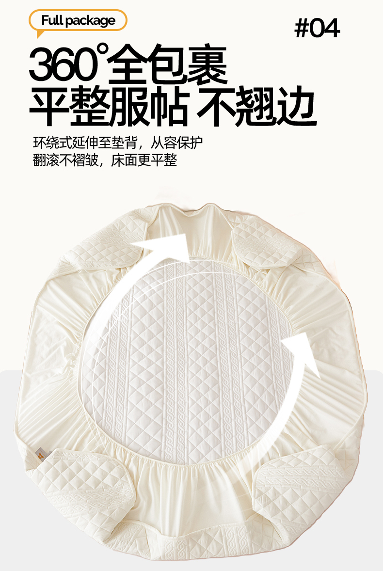 • 91家纺网 家纺一手货源 找家纺 雯豆家纺 2025新款简爱A类夹棉床笠三件套水洗棉磨毛床单保护套 梵可-月光白