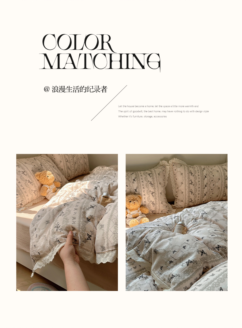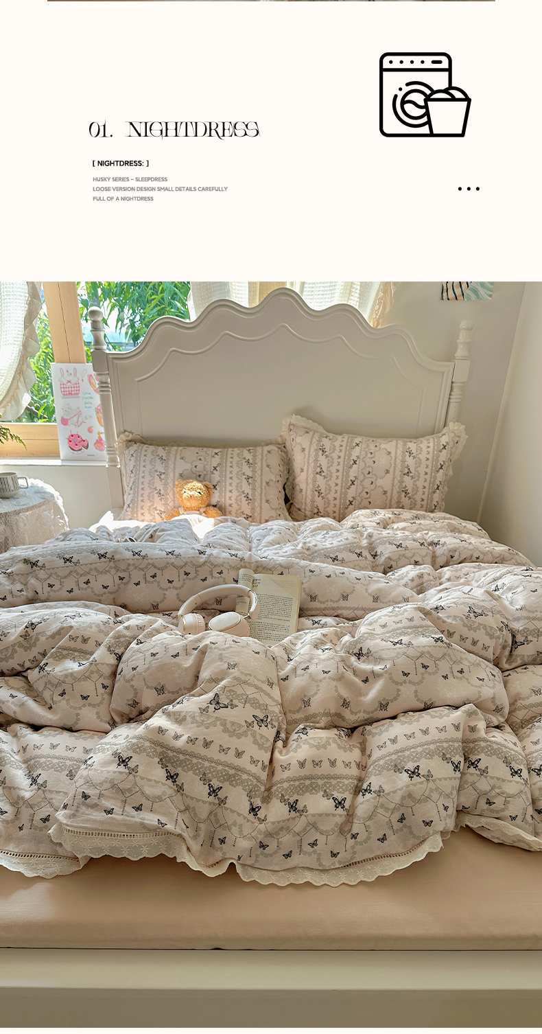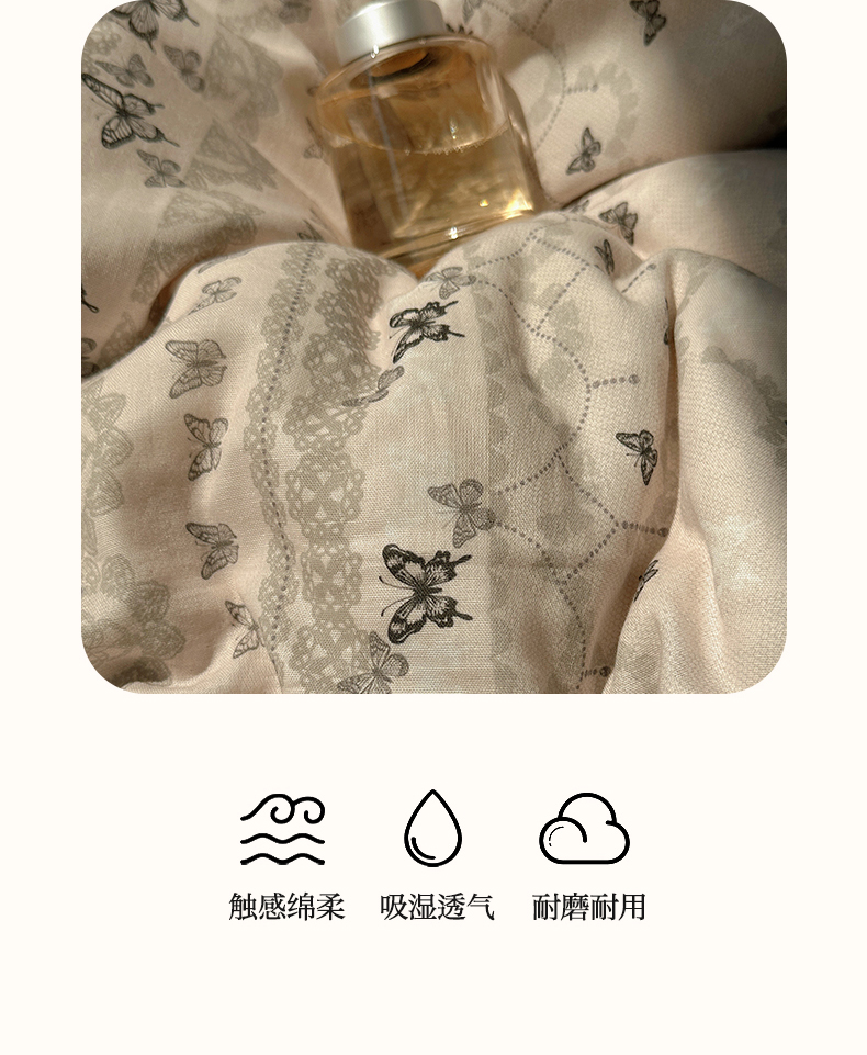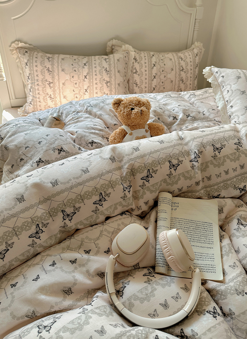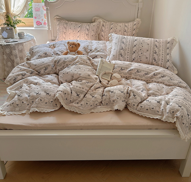 当前位置: 91家纺网 > 商品网购 > 床品套件 > 四件套 > 全棉普通四件套 > 瑞莱 2025新款全棉纯棉A类有氧双层纱镂空花边四件套 蝴蝶飞飞