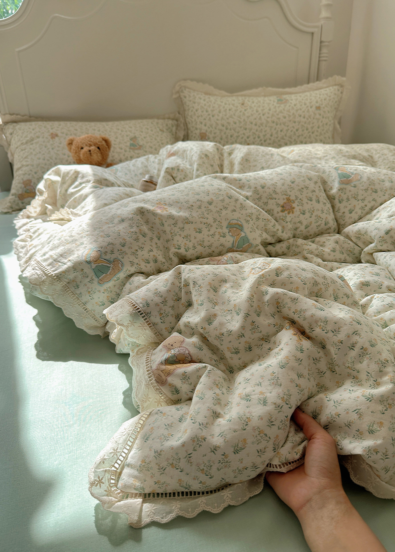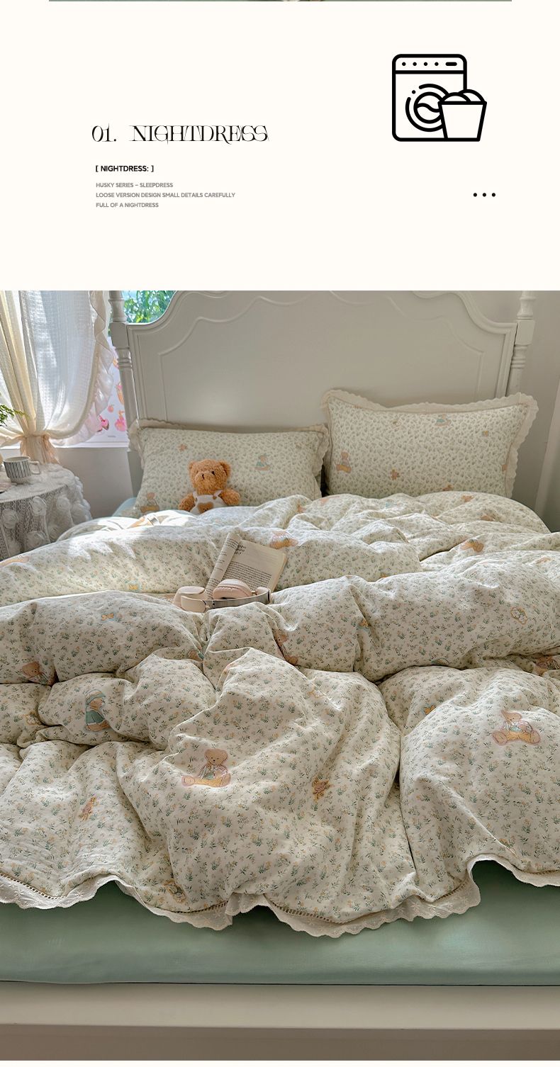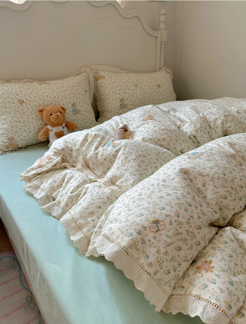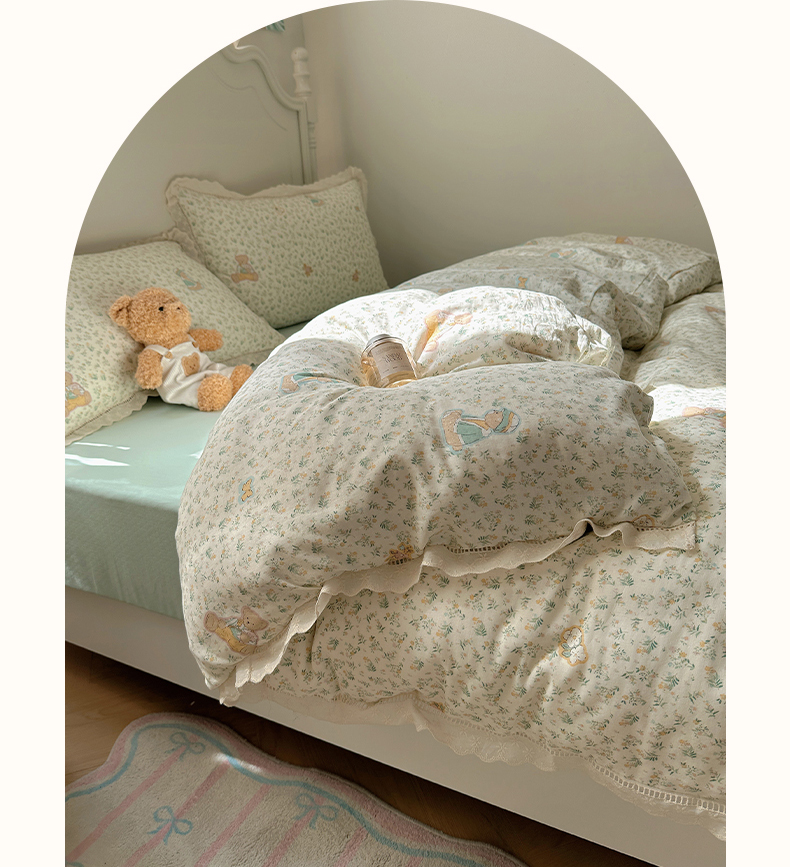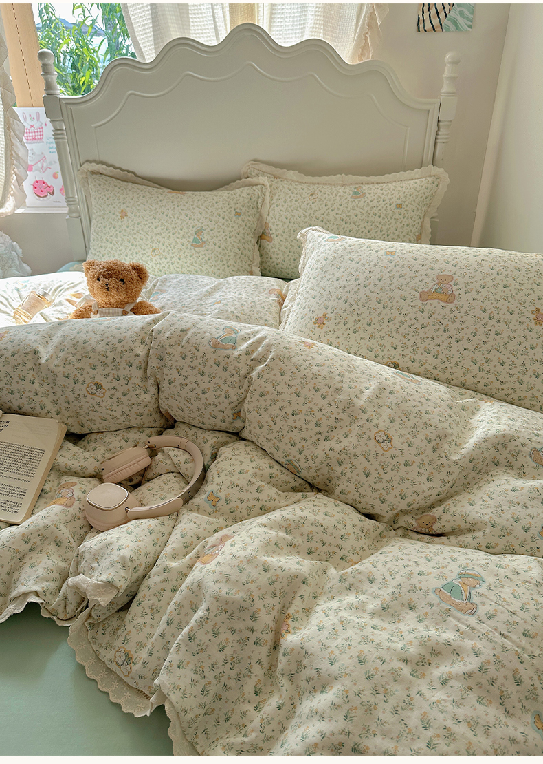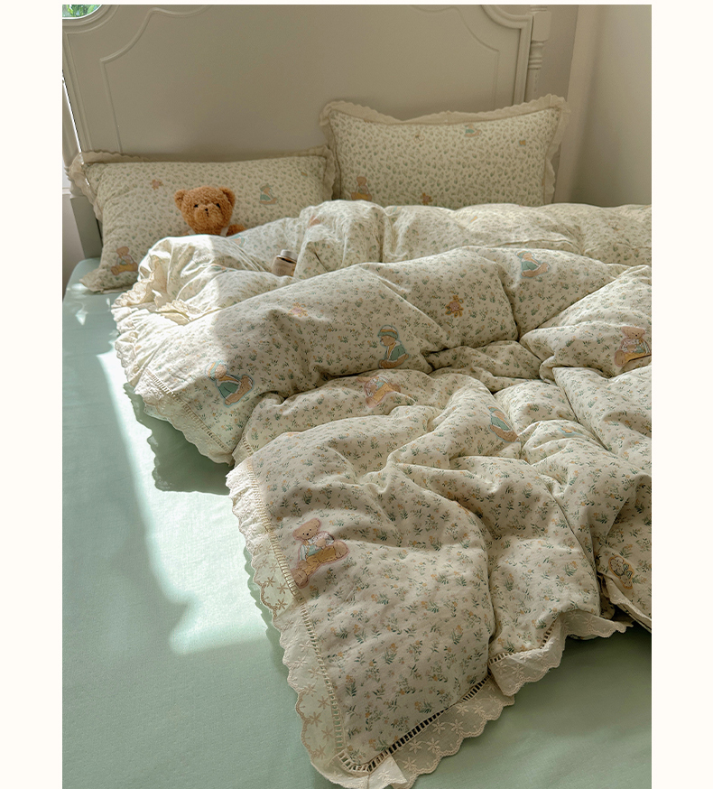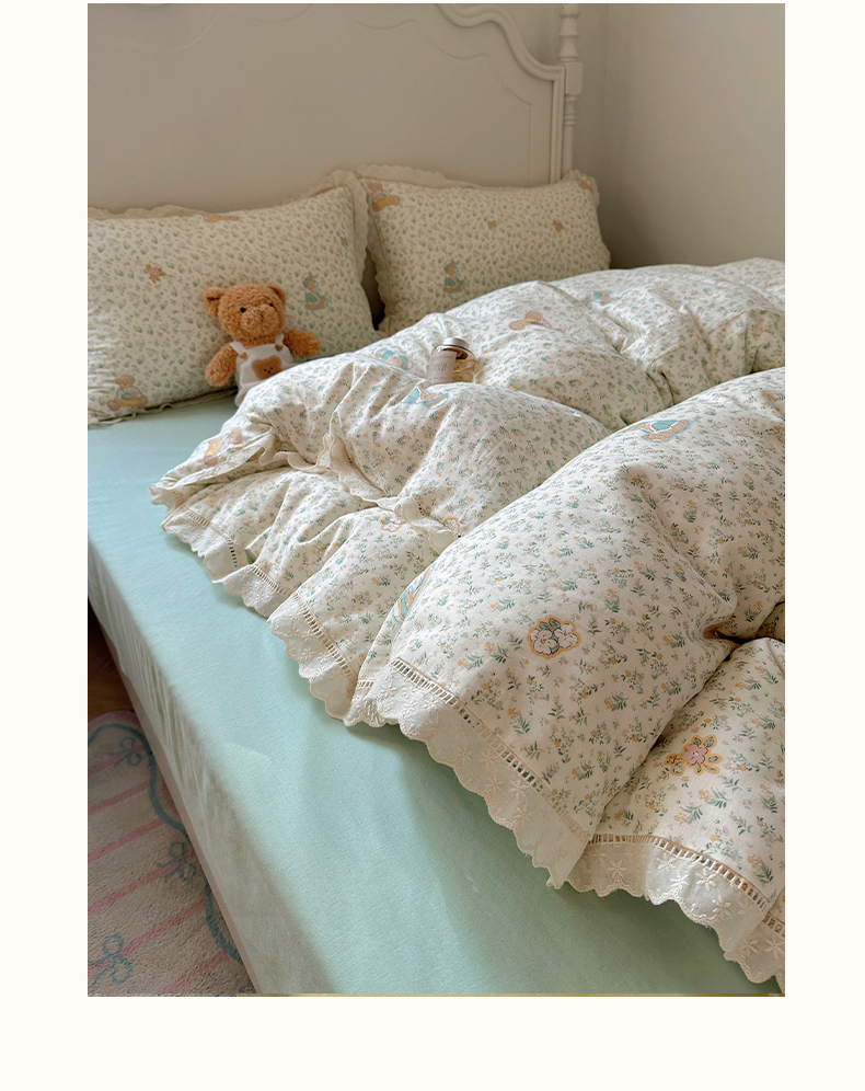当前位置: 91家纺网 > 商品网购 > 床品套件 > 四件套 > 全棉普通四件套 > 瑞莱 2025新款全棉纯棉A类有氧双层纱镂空花边四件套 镂空-熊孩子