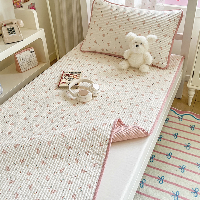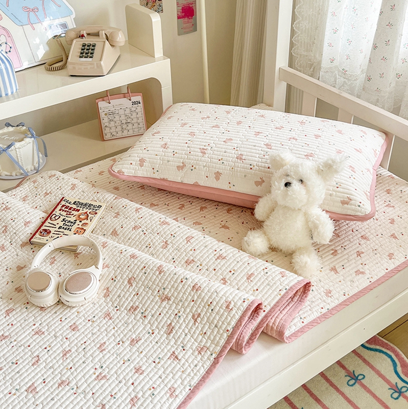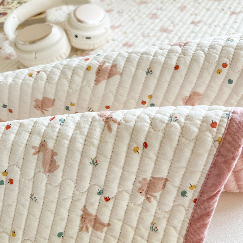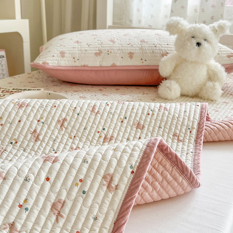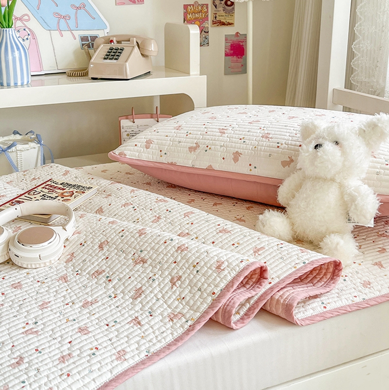茉夕家纺 2025新款双面纯棉学生宿舍床盖系列 粉兔