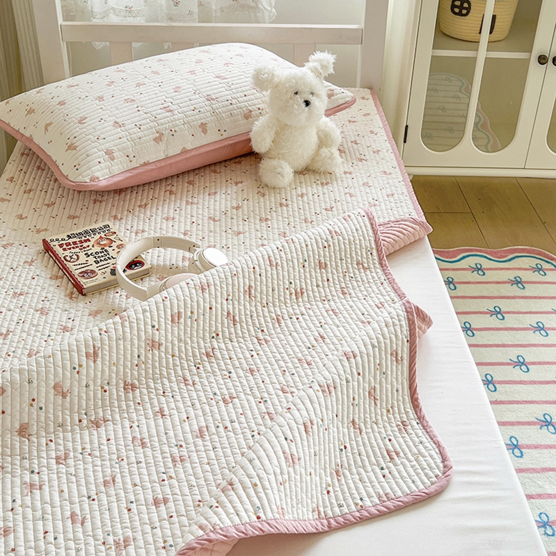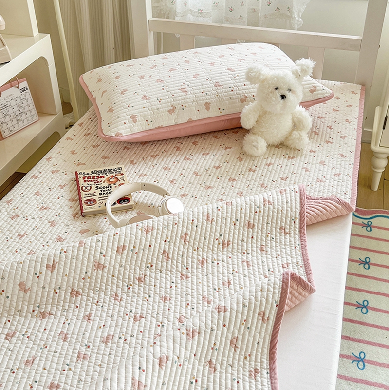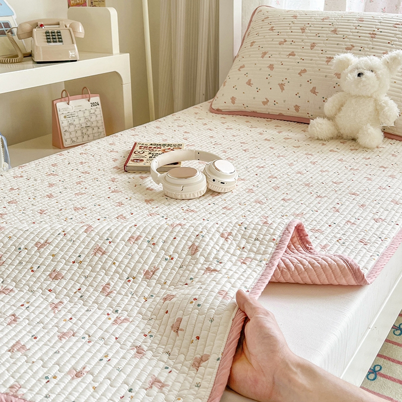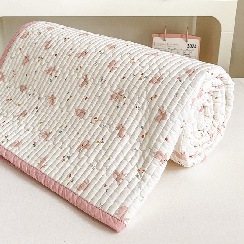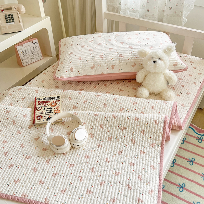 茉夕家纺 2025新款双面纯棉学生宿舍床盖系列 粉兔