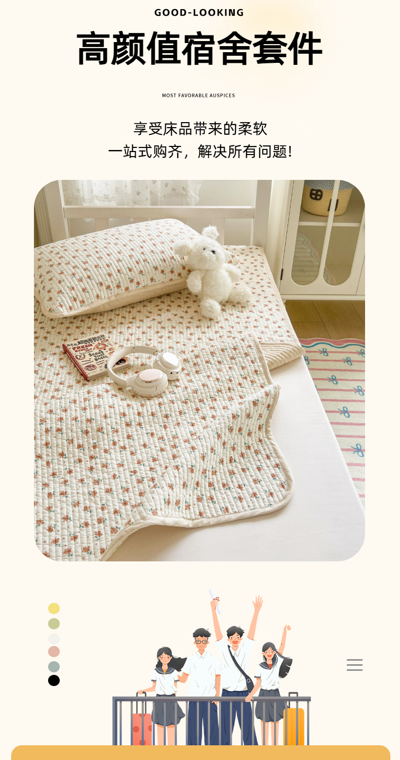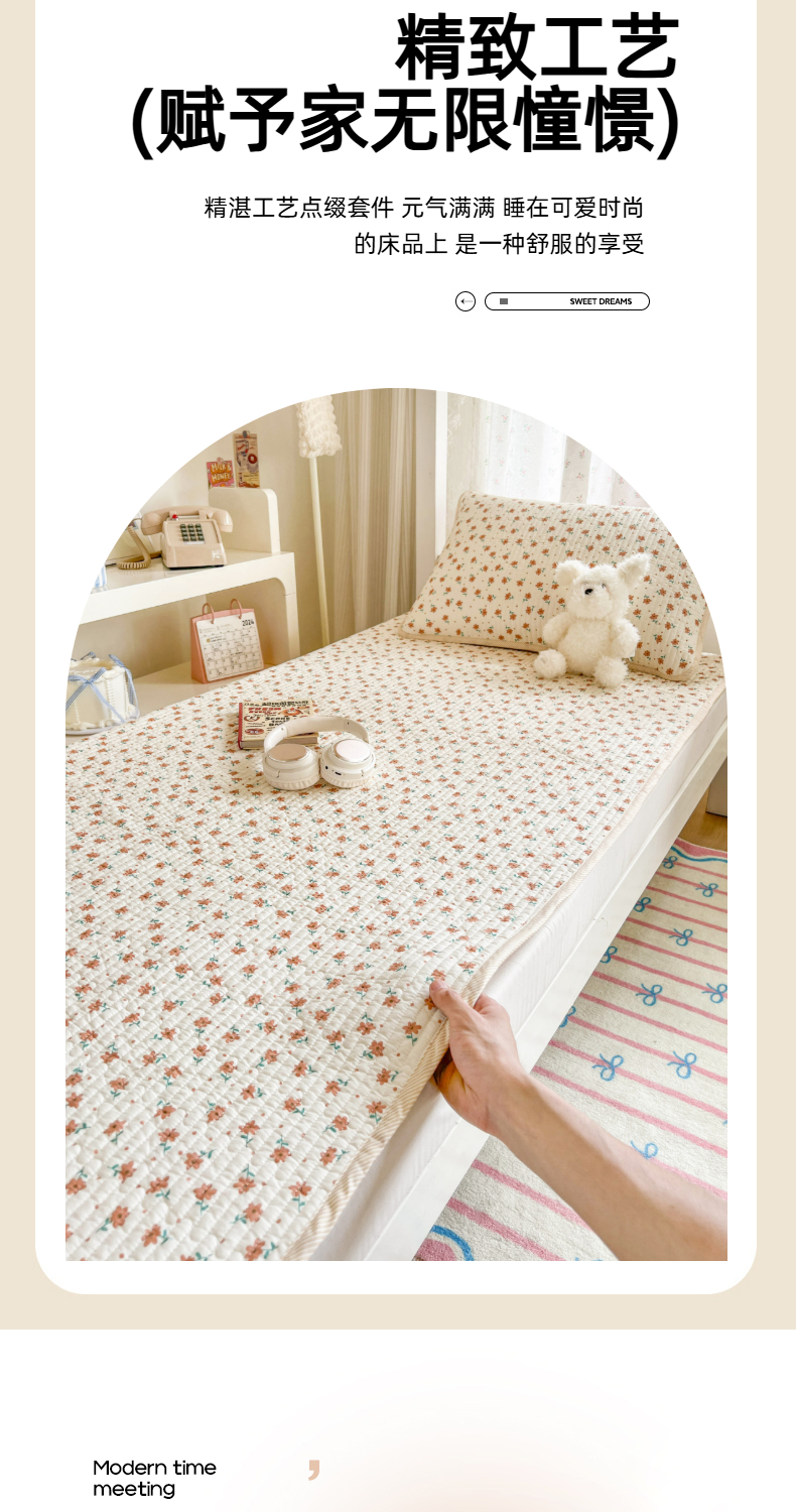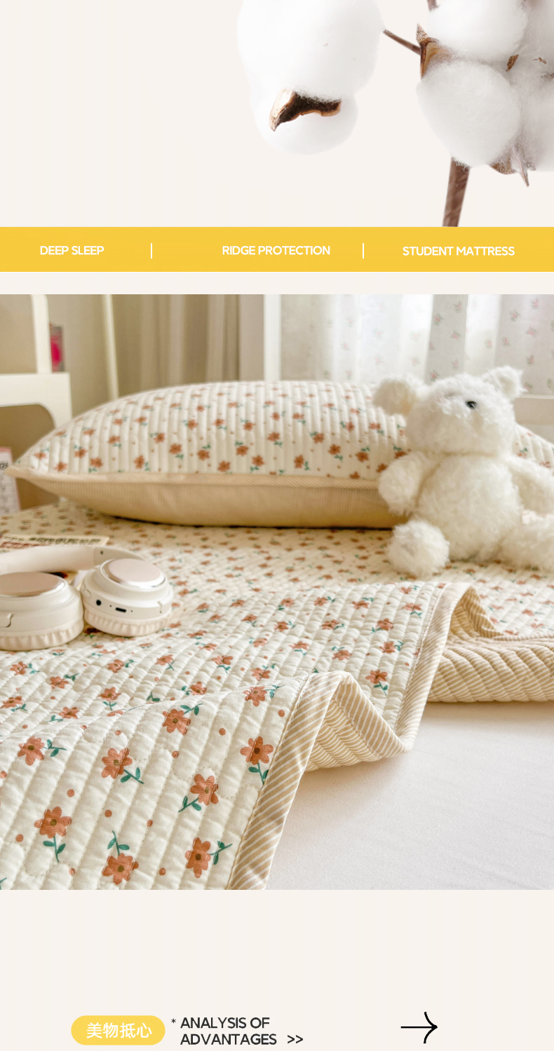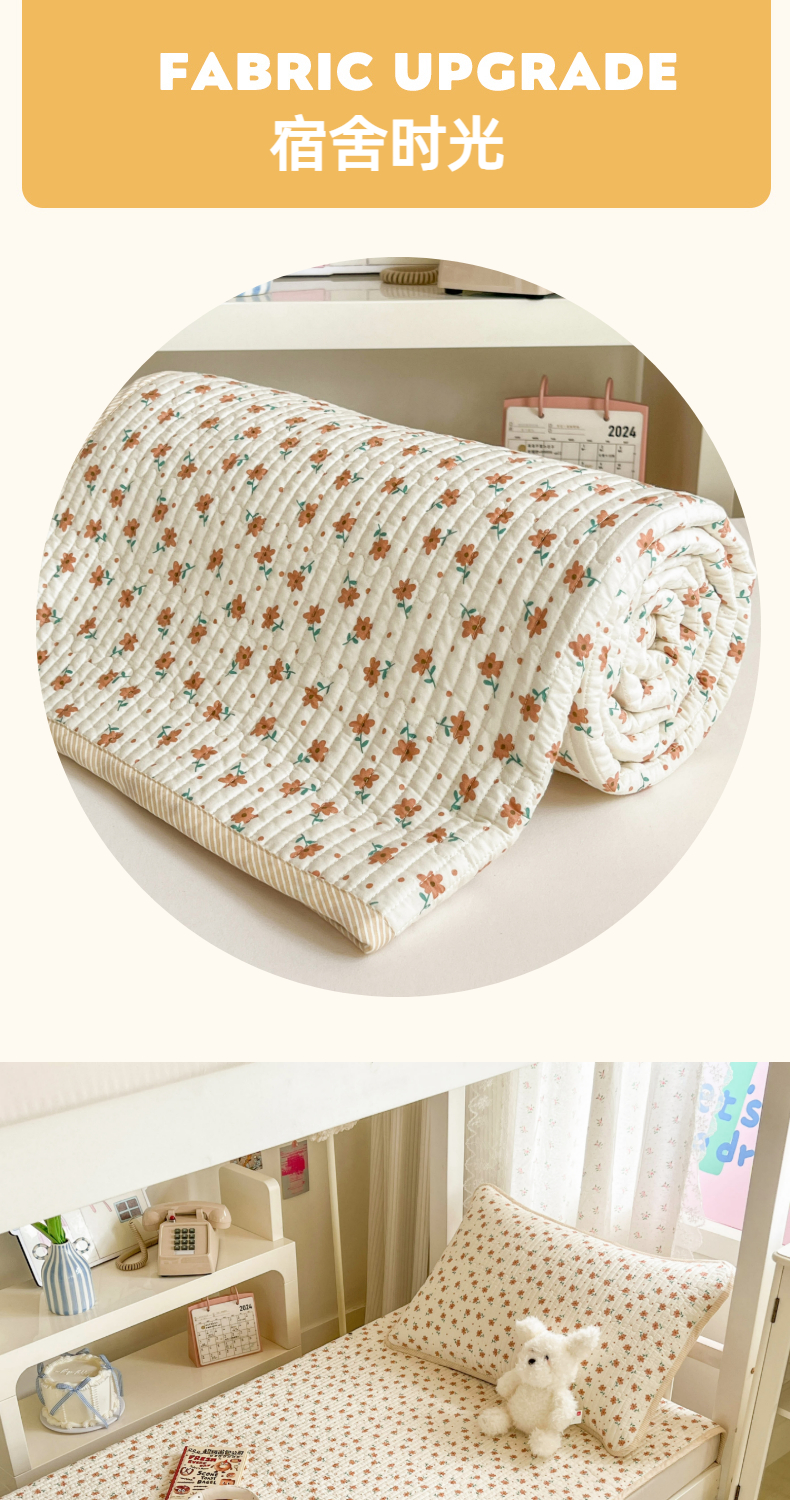 茉夕家纺 2025新款双面纯棉学生宿舍床盖系列 小花飘飘