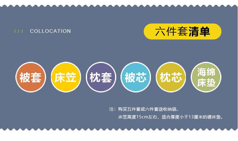 【海绵床垫床笠款】90x190床6斤羽丝棉被六件套 | ¥228.00 |
