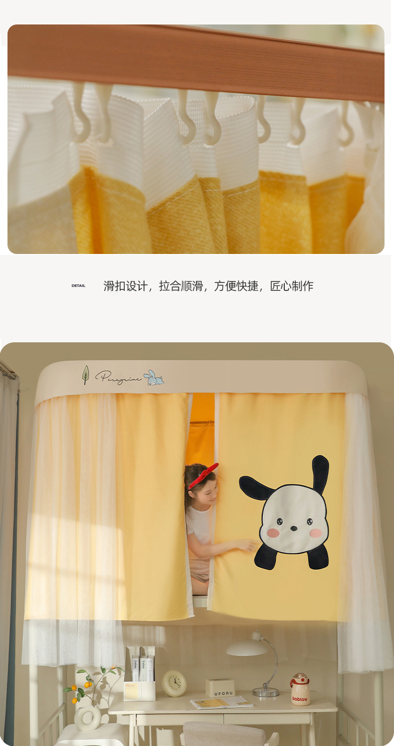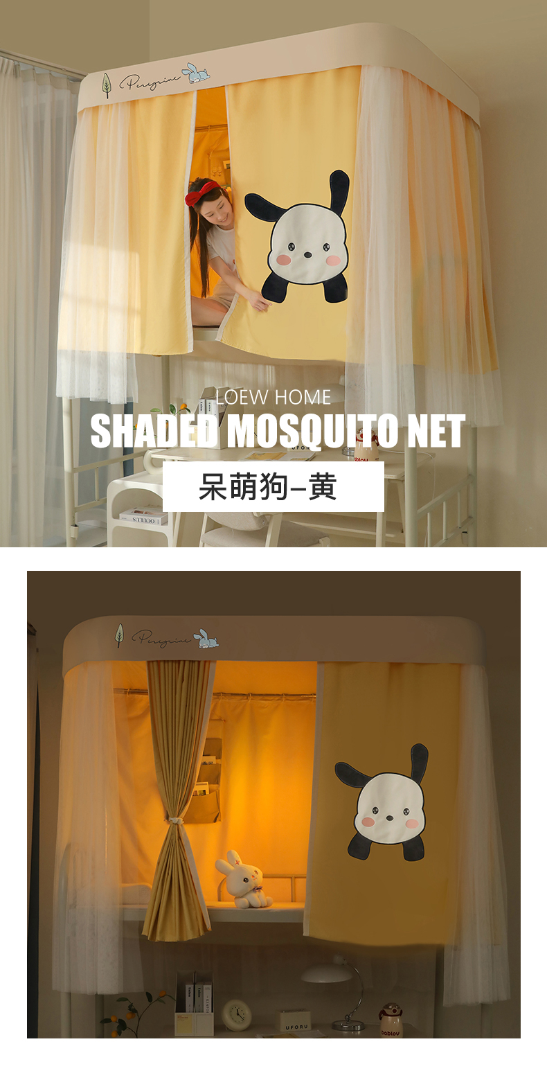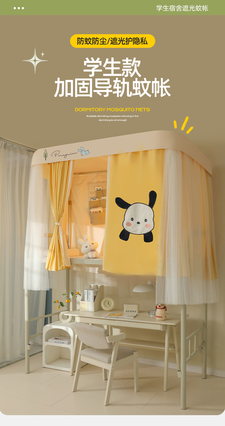 商品名称:都市缘蚊帐 2025新款学生宿舍导轨遮光床帘上下铺贴布卡通蚊帐0.8m 0.9m床 呆萌狗-黄