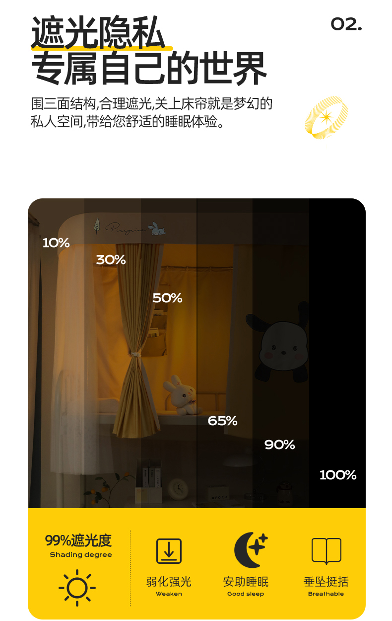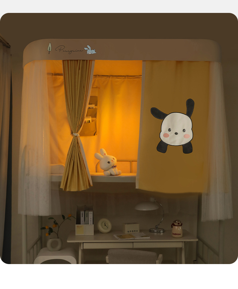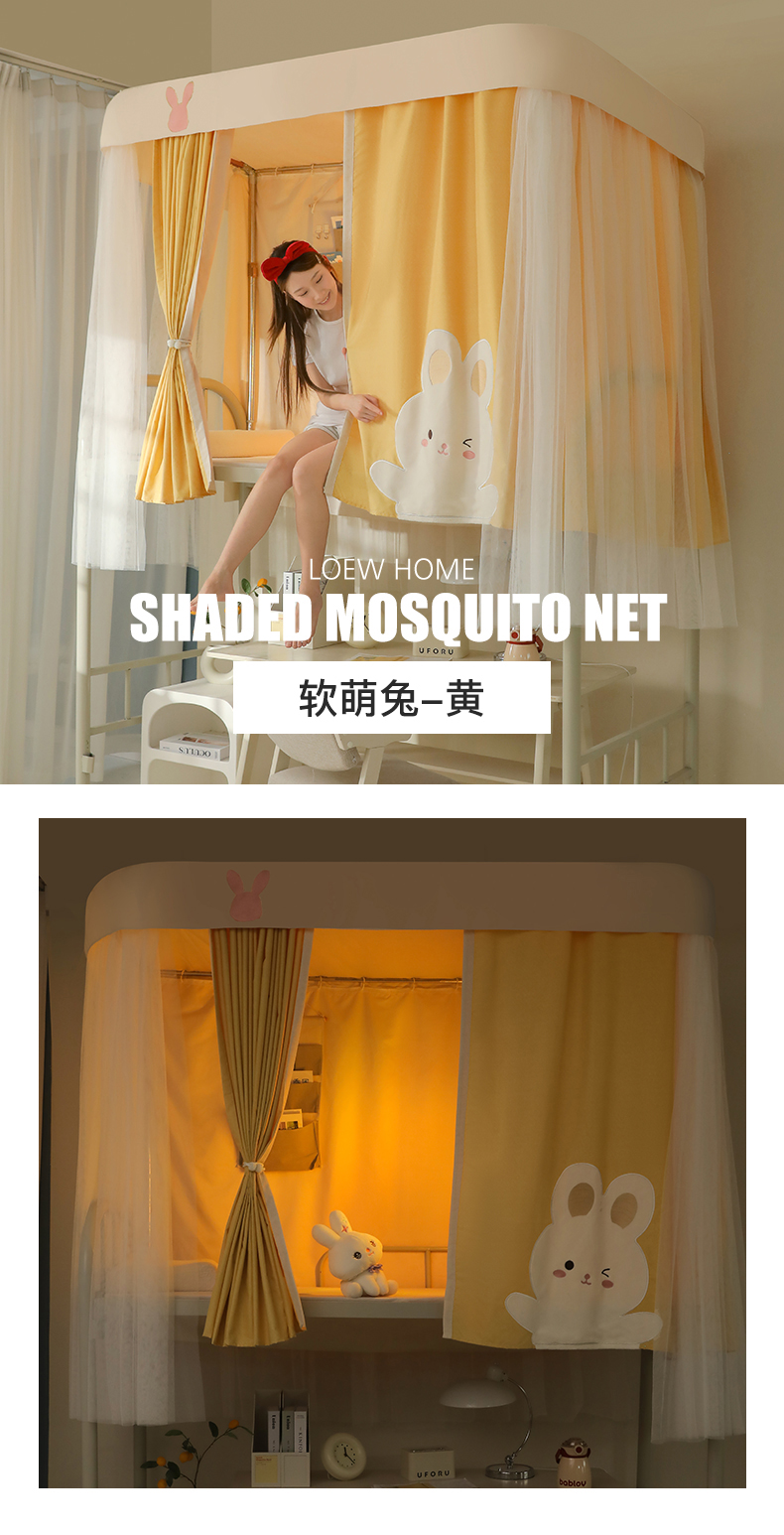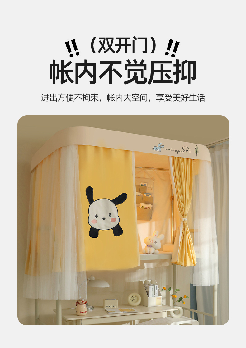 商品名称:都市缘蚊帐 2025新款学生宿舍导轨遮光床帘上下铺贴布卡通蚊帐0.8m 0.9m床 呆萌狗-黄