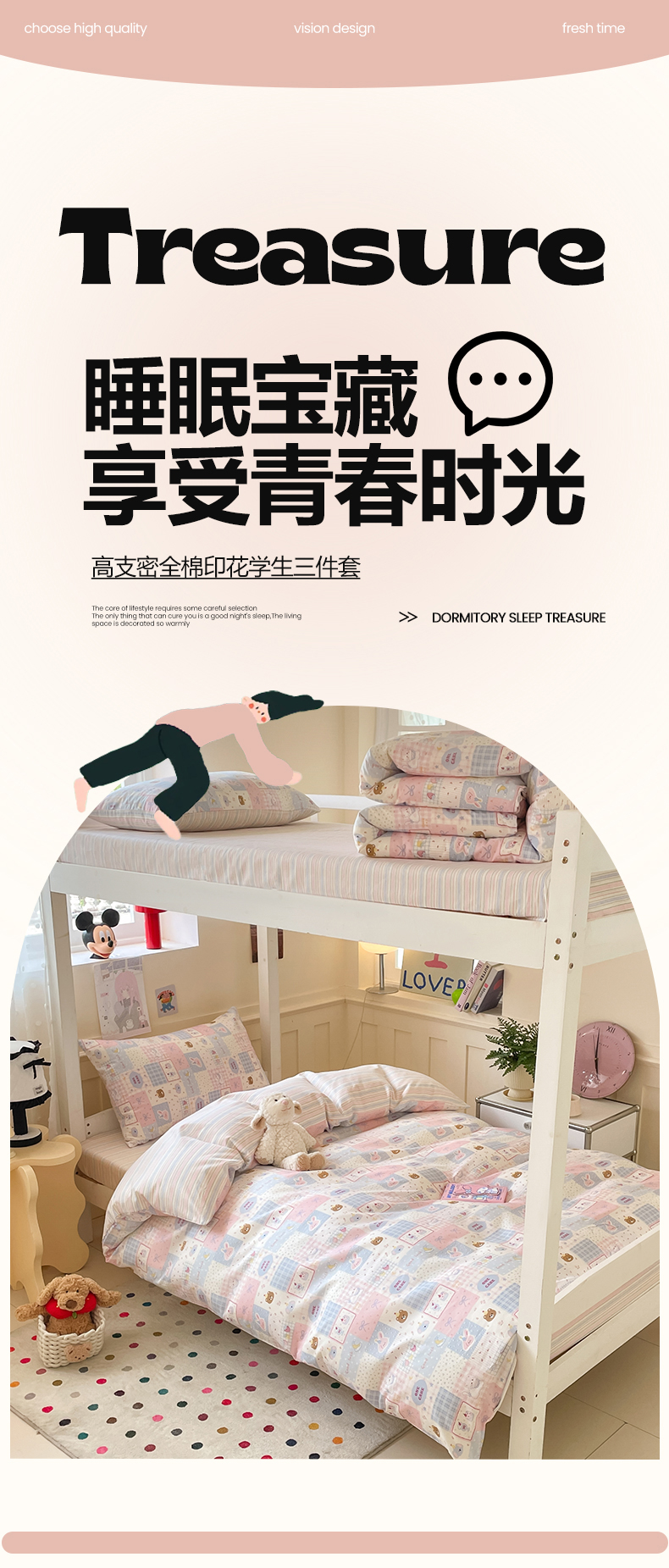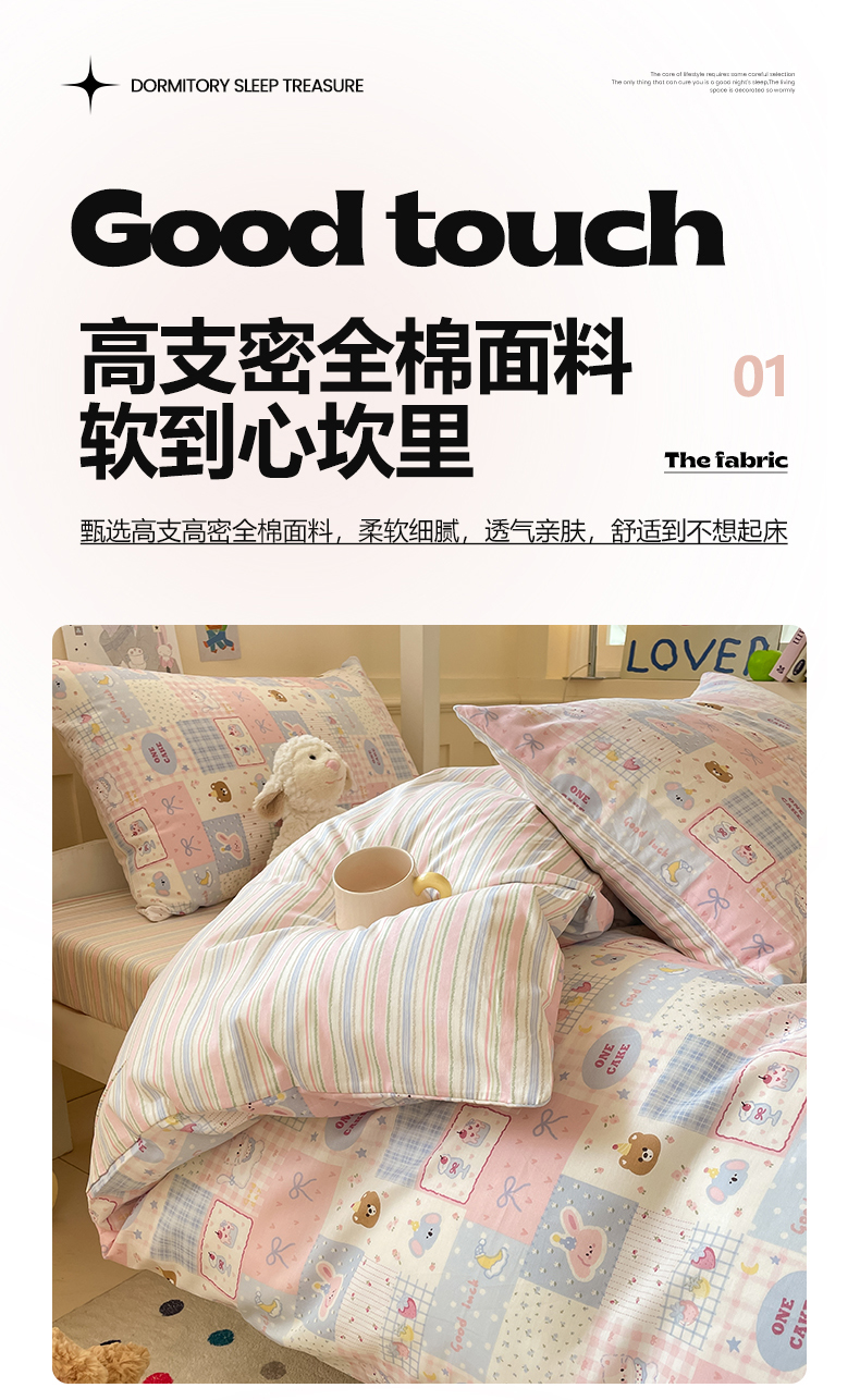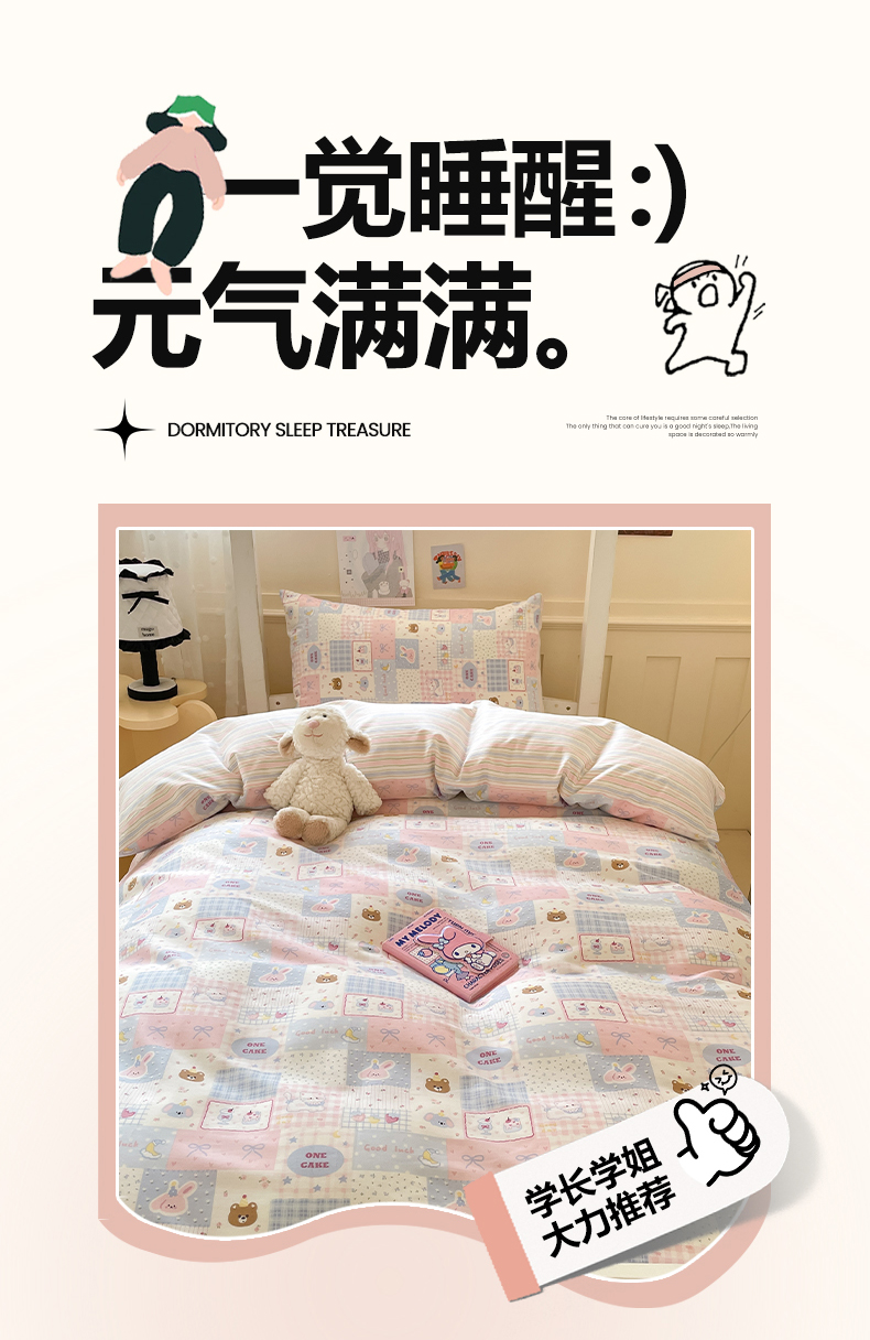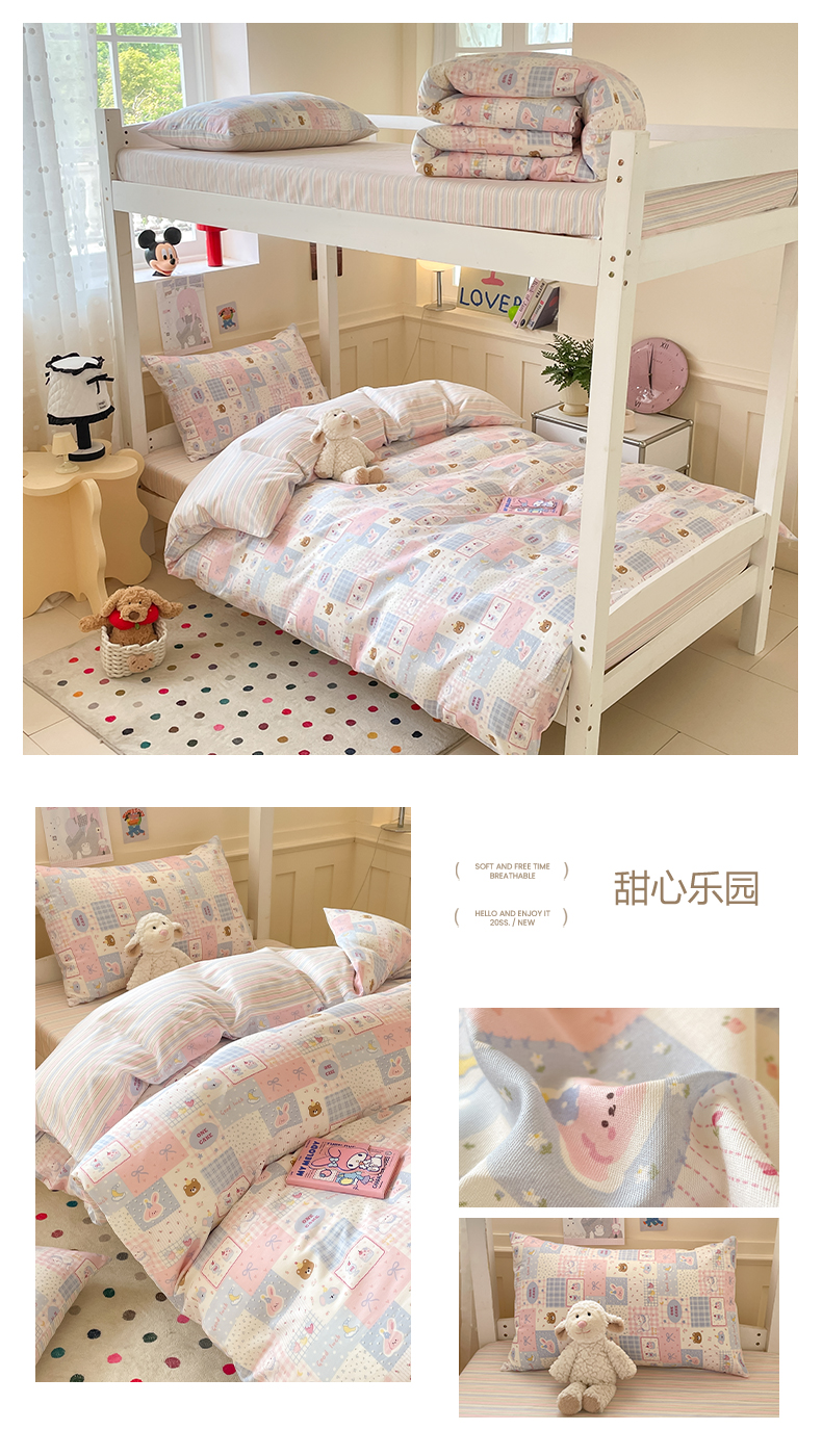 当前位置: 91家纺网 > 商品网购 > 床品套件 > 三件套 > 吉象家纺 2025新款12868高支密全棉印花学生季三件套 甜心乐园
