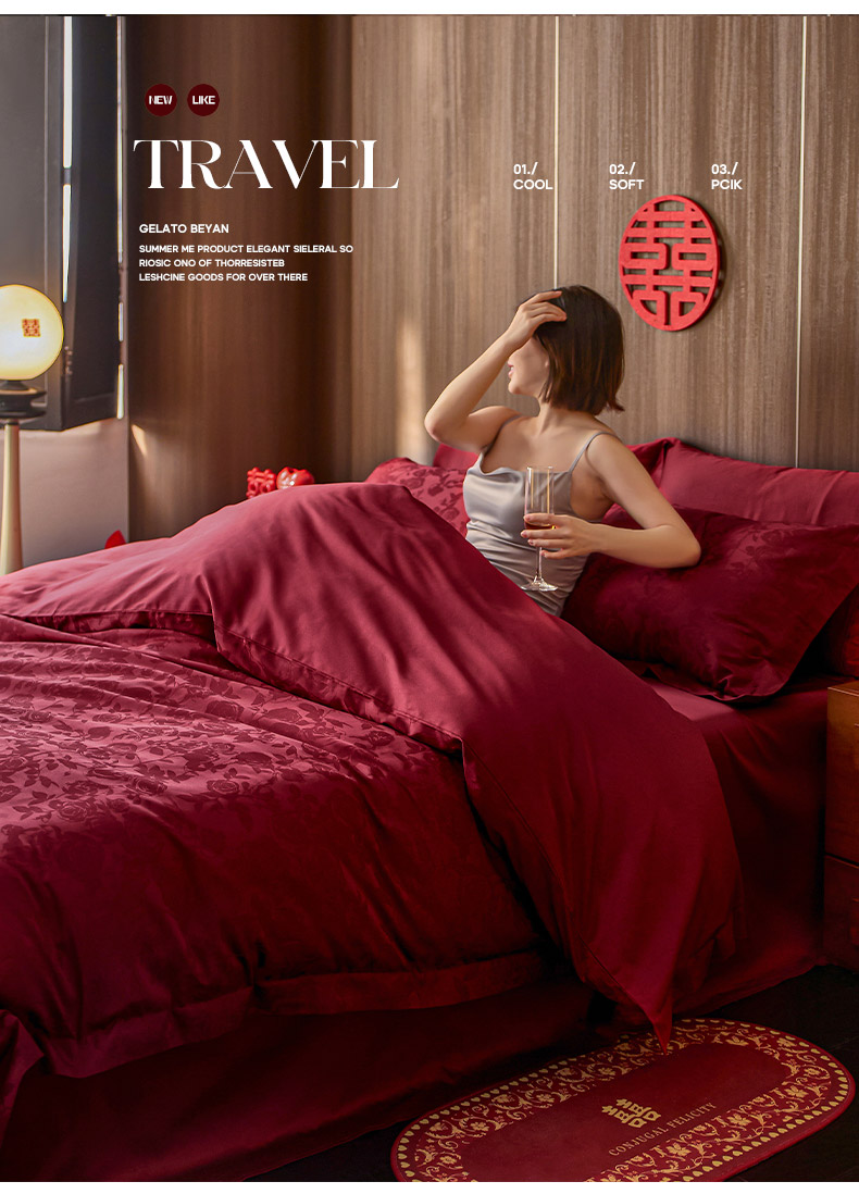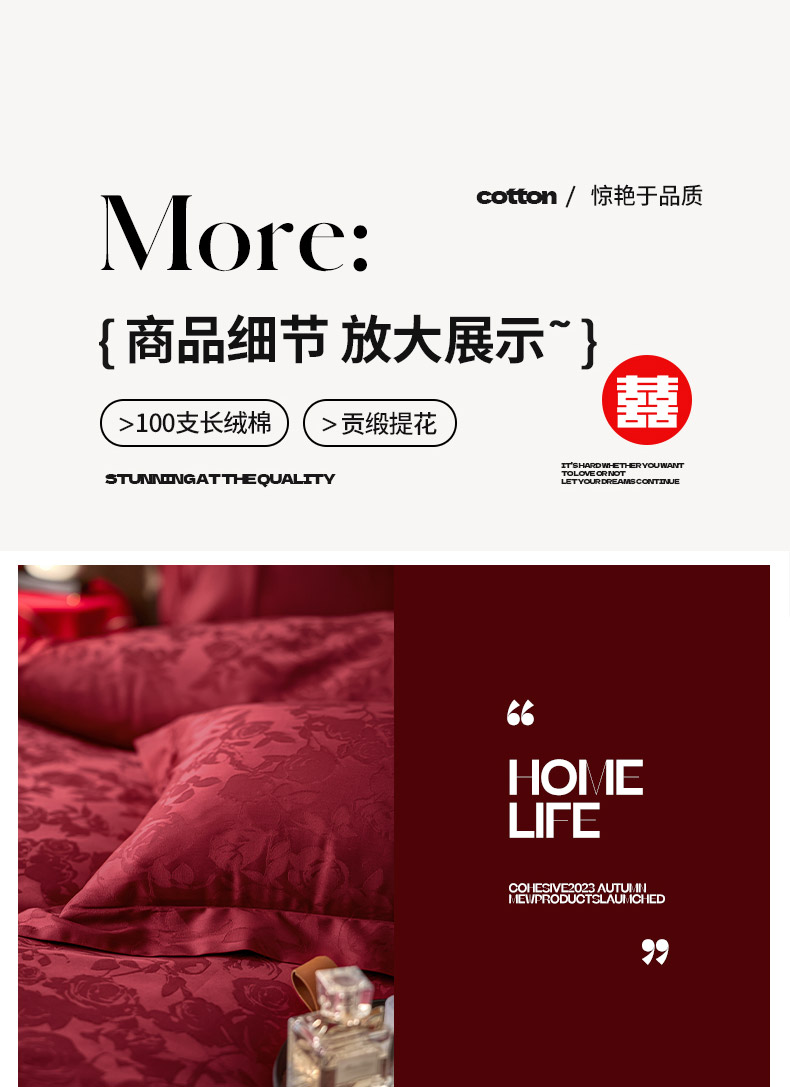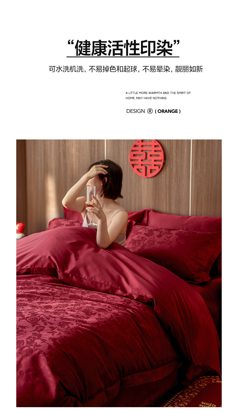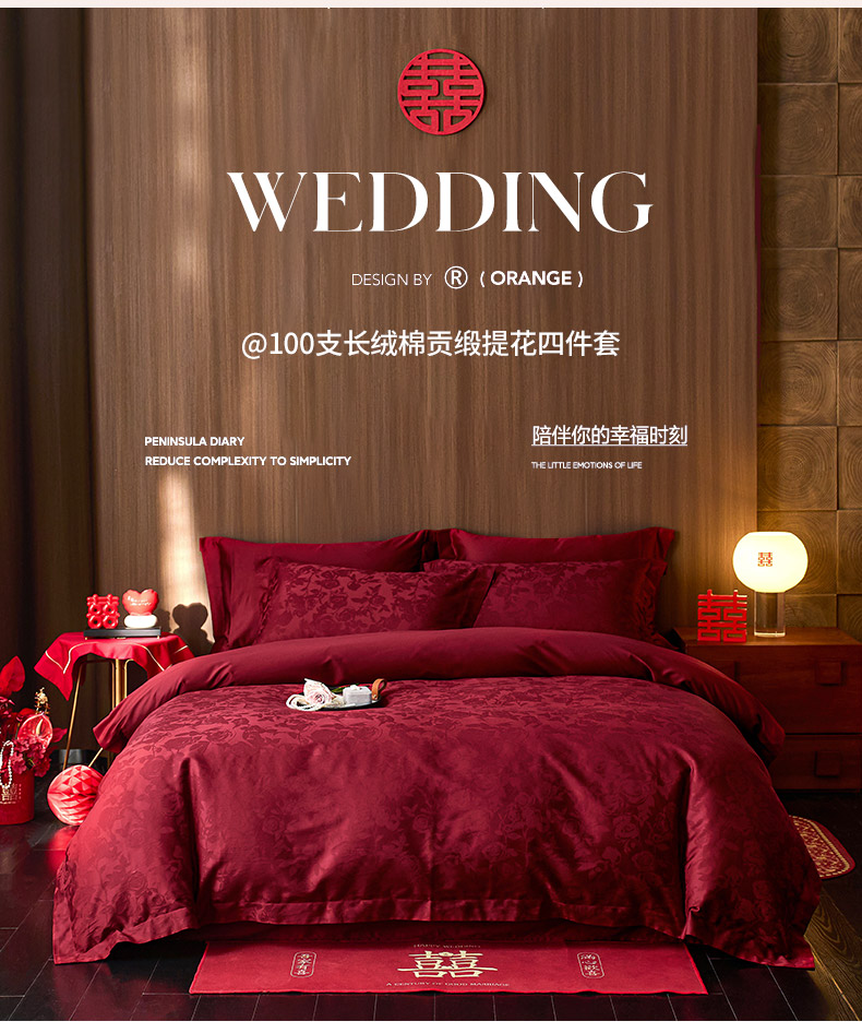 商品名称:(总)轩和家居 2025新款50S长绒棉贡缎提花婚庆四件套(优惠劵之后不低于298)