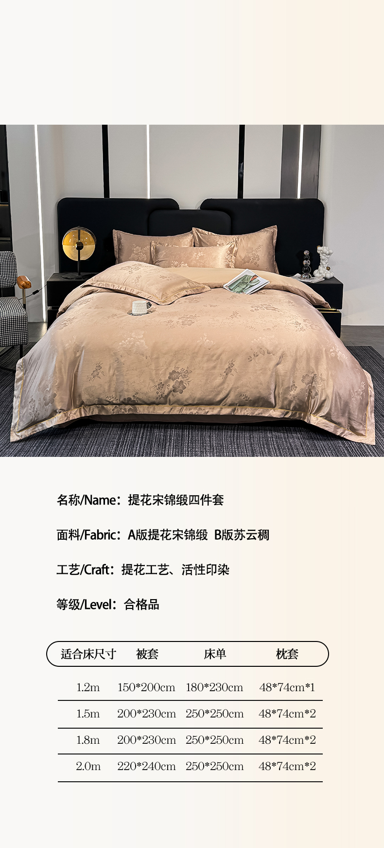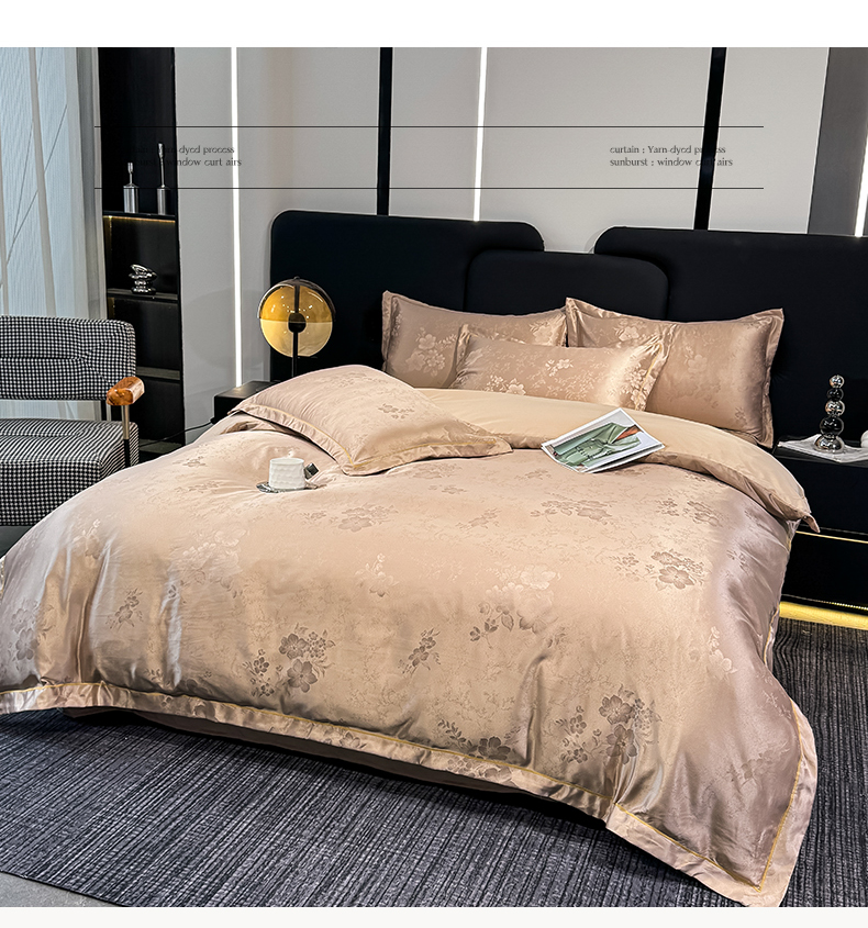 商品名称:世爵 2025新款水洗天丝提花锦缎四件套 素茶咖