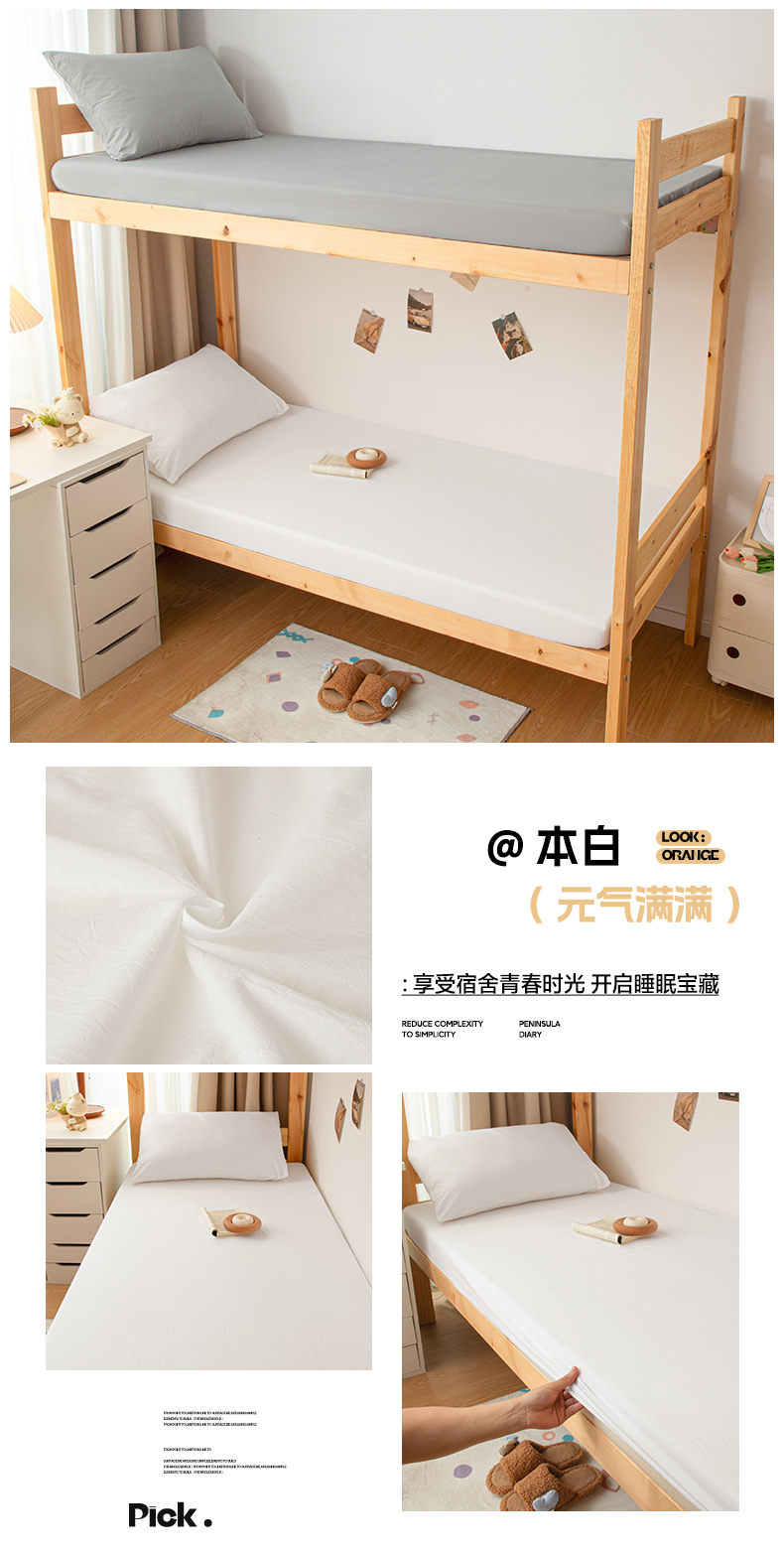 商品名称:寐眠 2025新款全棉纯棉水洗棉单床笠学生款床笠单件 本白