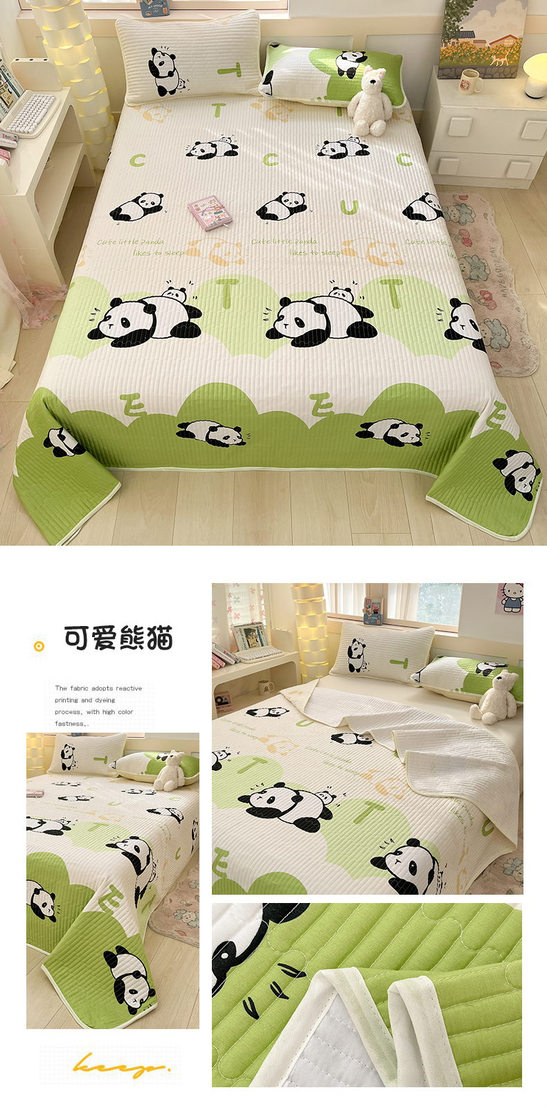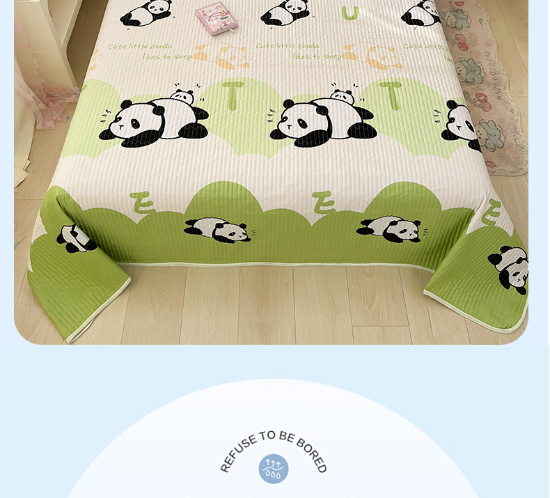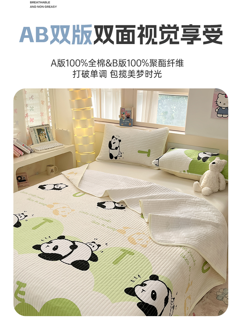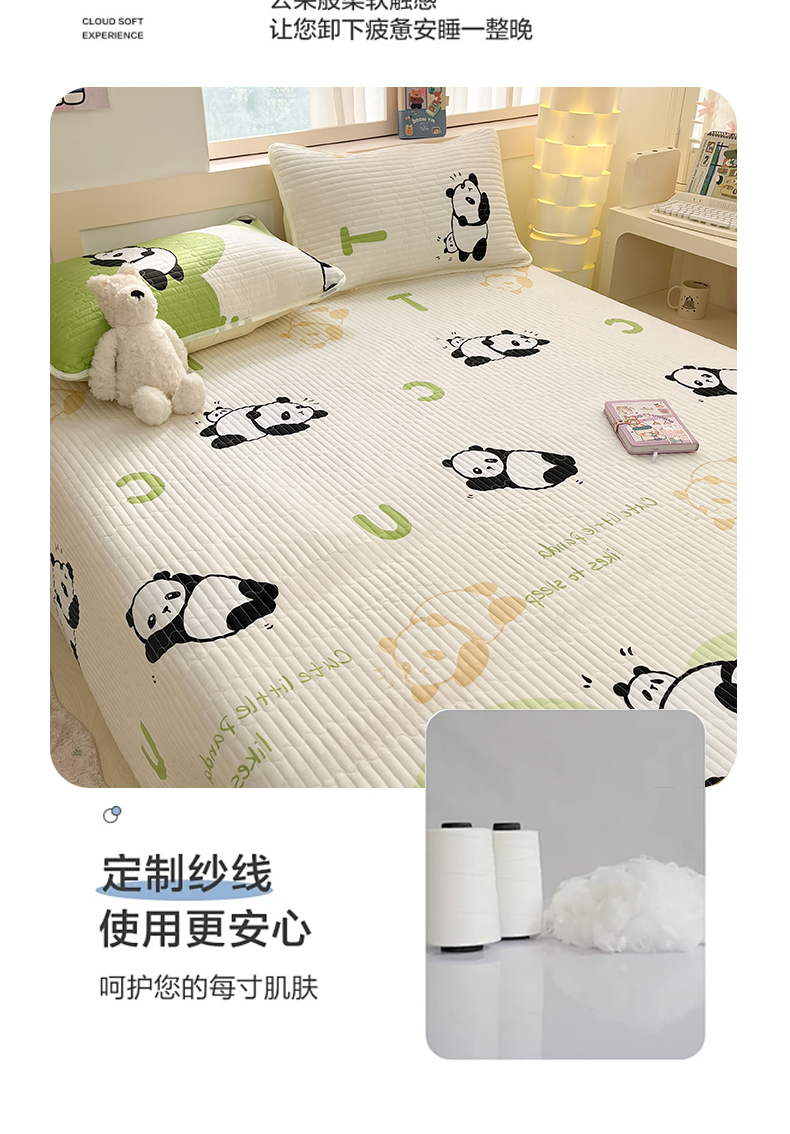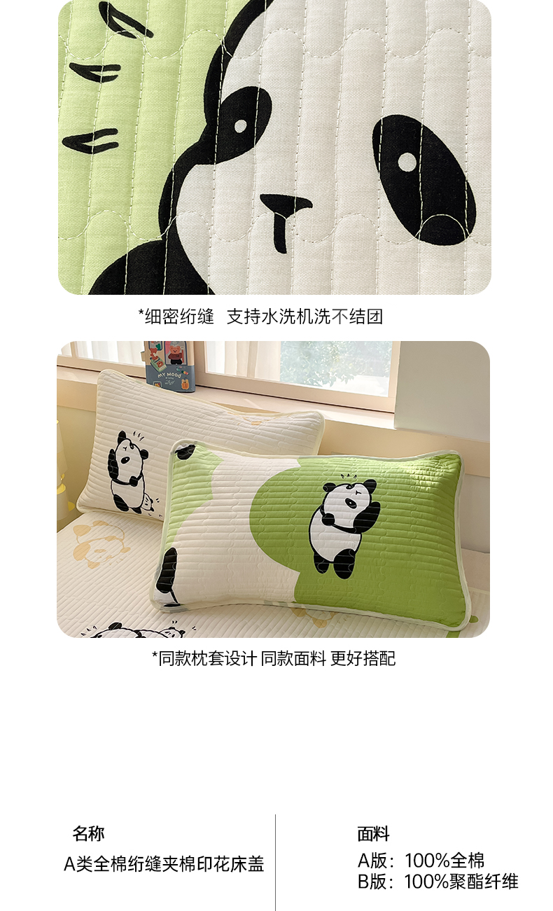 当前位置: 91家纺网 > 商品网购 > 床上用品 > 床盖 > 金鑫汇家纺2025新款A类全棉绗缝夹棉印花床盖 可爱熊猫