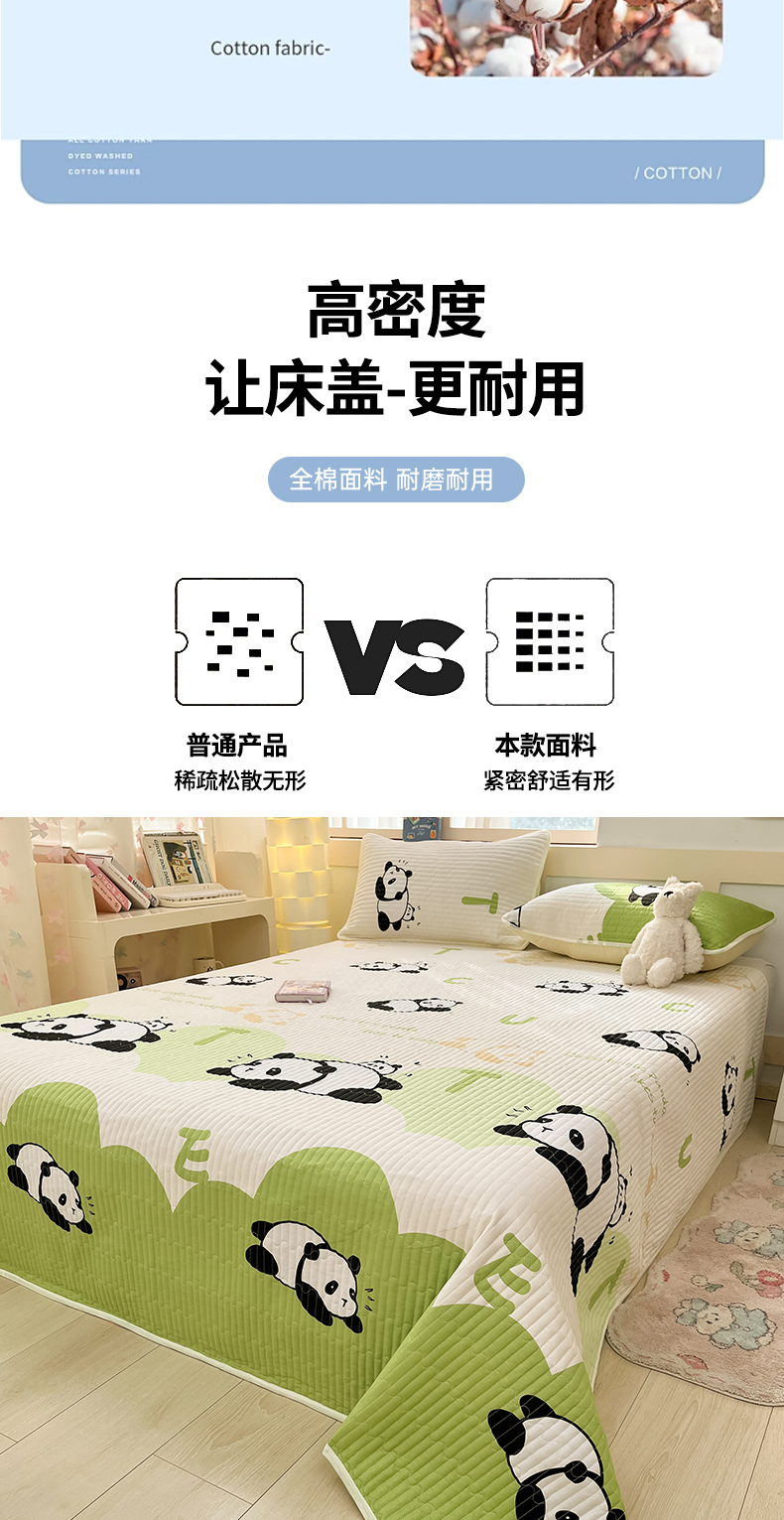 • 91家纺网 家纺一手货源 找家纺 金鑫汇家纺2025新款A类全棉绗缝夹棉印花床盖 可爱熊猫
