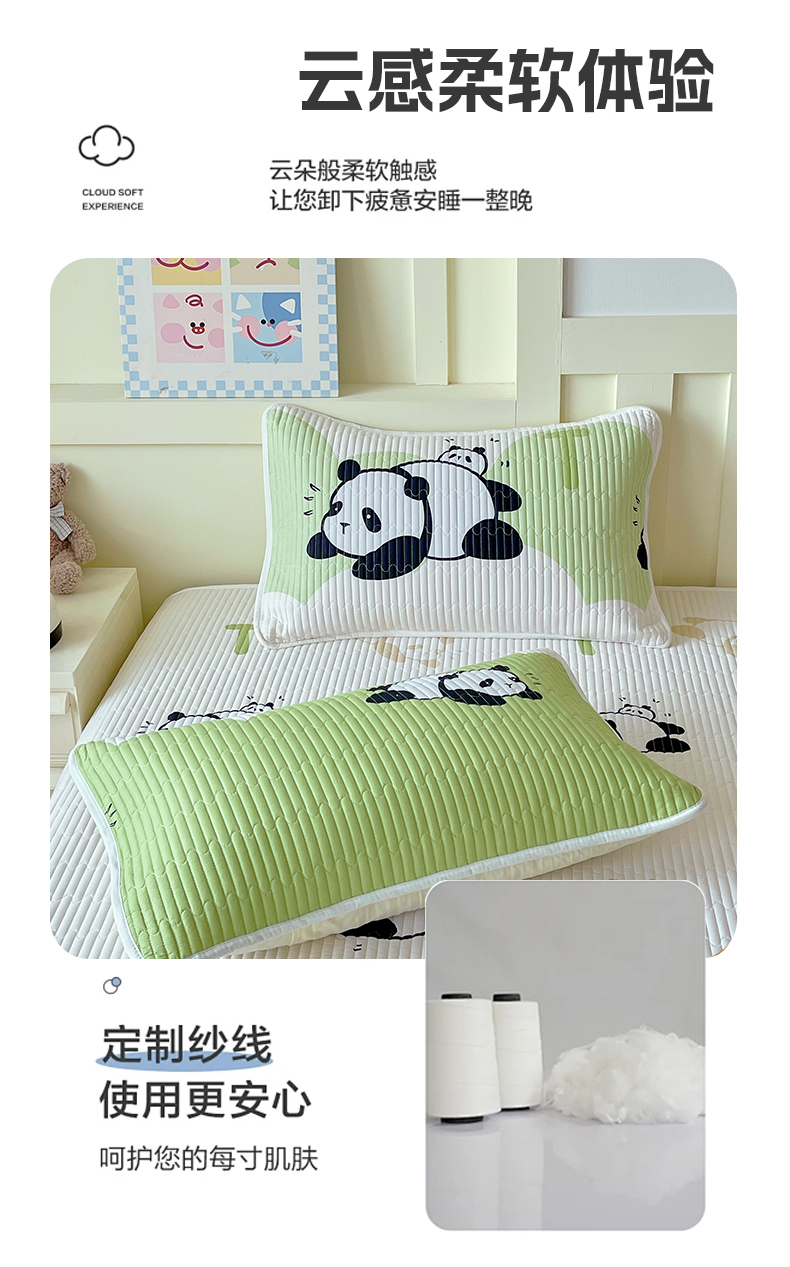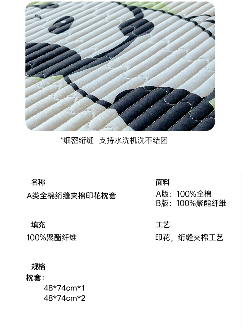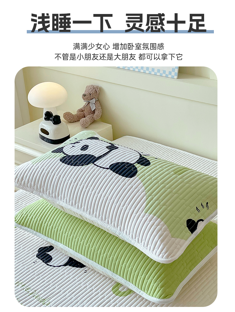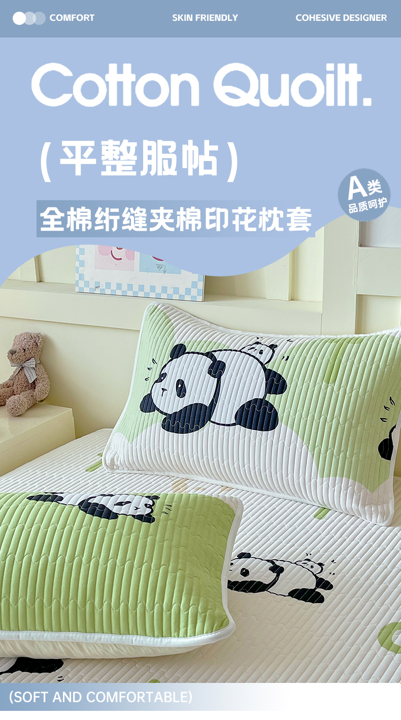商品名称:金鑫汇家纺 2025新款A类全绗缝夹棉印花枕套 可爱熊猫