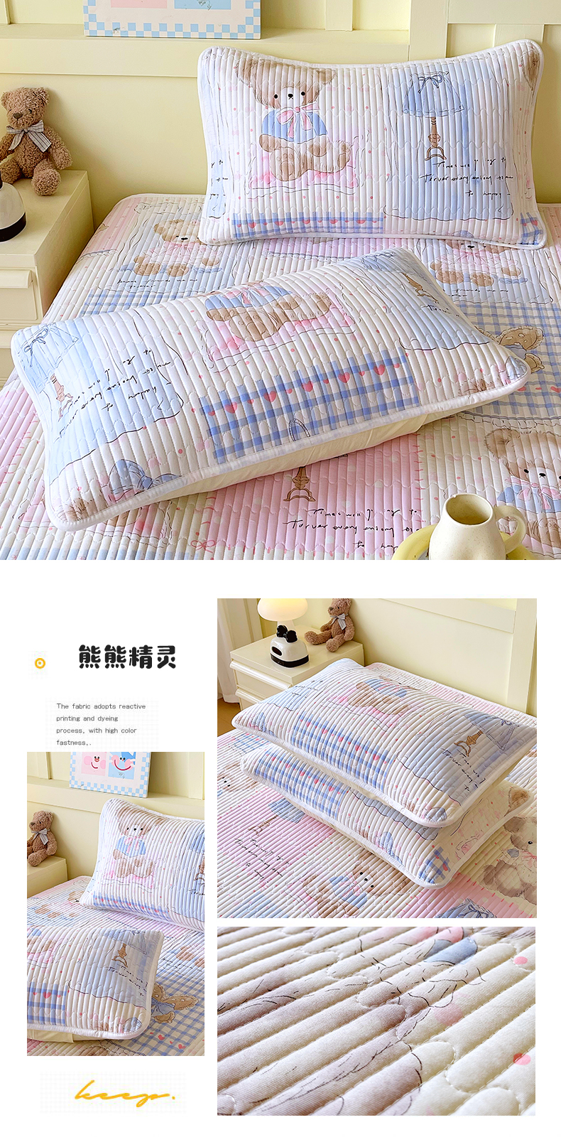 金鑫汇家纺 2025新款A类全绗缝夹棉印花枕套 熊熊精灵