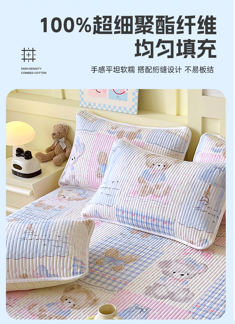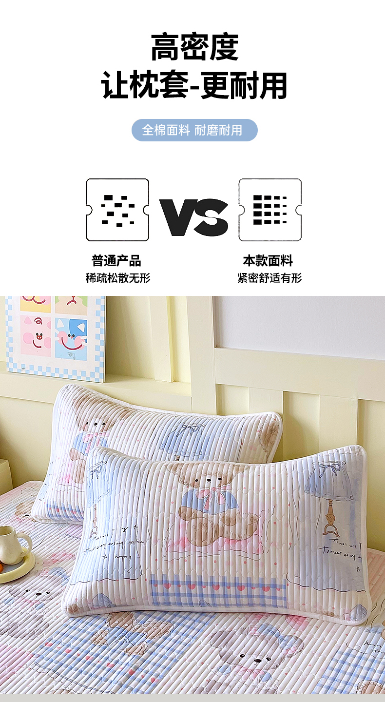 商品名称:金鑫汇家纺 2025新款A类全绗缝夹棉印花枕套 熊熊精灵