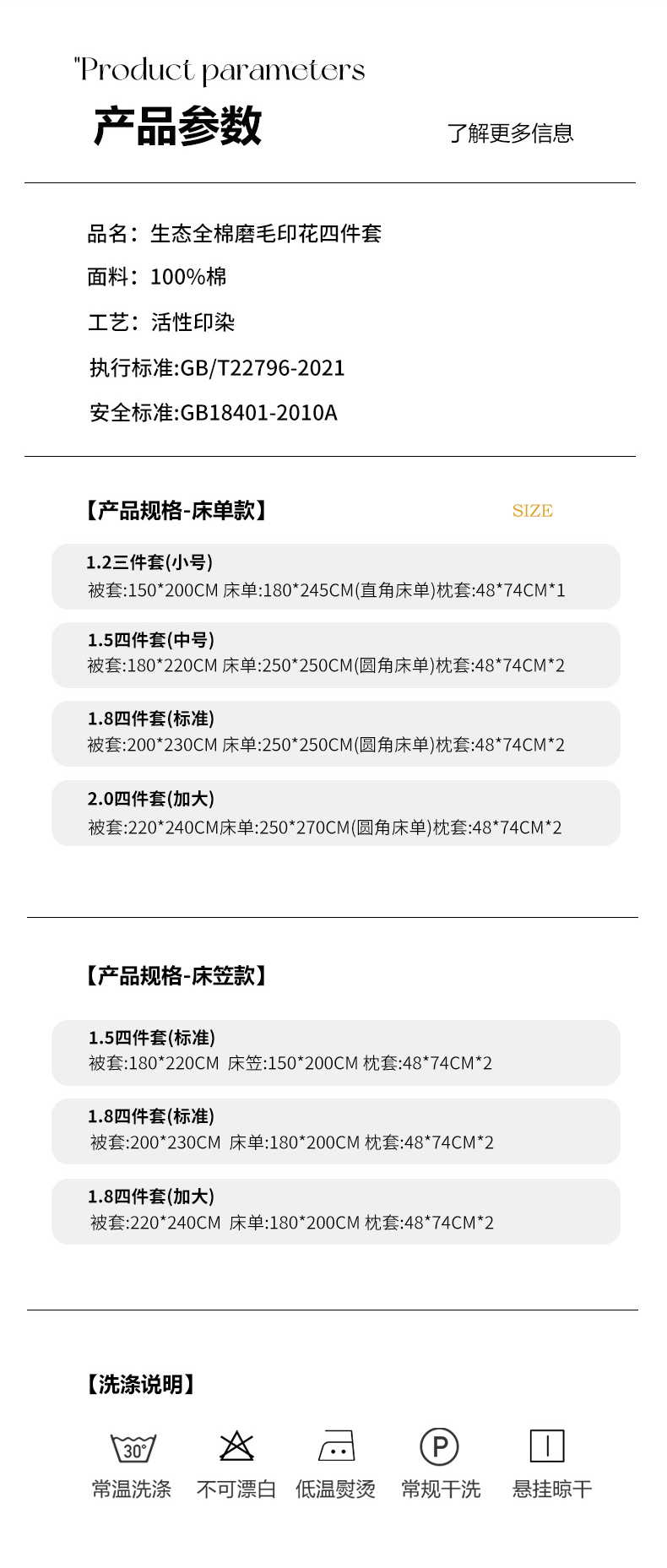 【床笠款】1.2三件套-被套150x200 | ¥130.00 |