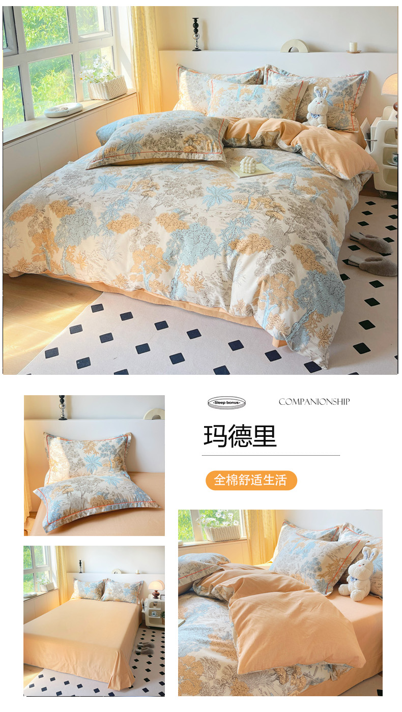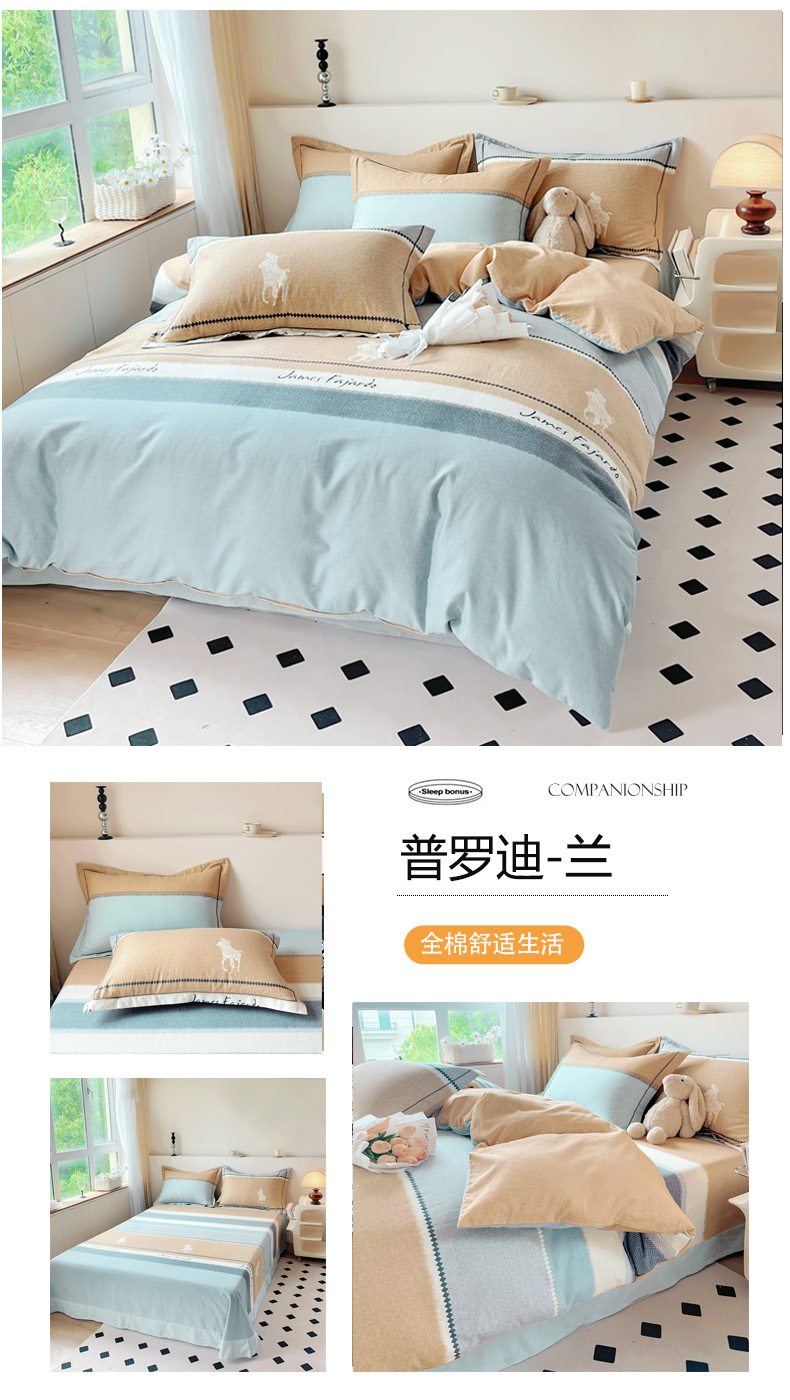 当前位置: 91家纺网 > 商品网购 > 床品套件 > 四件套 > 普通磨毛四件套 > 艾迪尚家纺 2025新款生态全棉纯棉磨毛印花四件套 普罗迪—兰