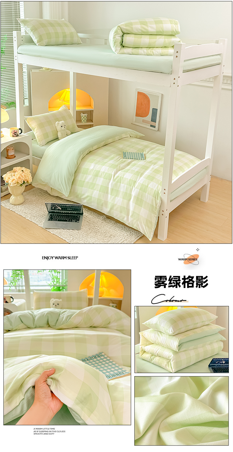 商品名称:梓之赫 2025新款学生季宿舍三件套 雾绿格影