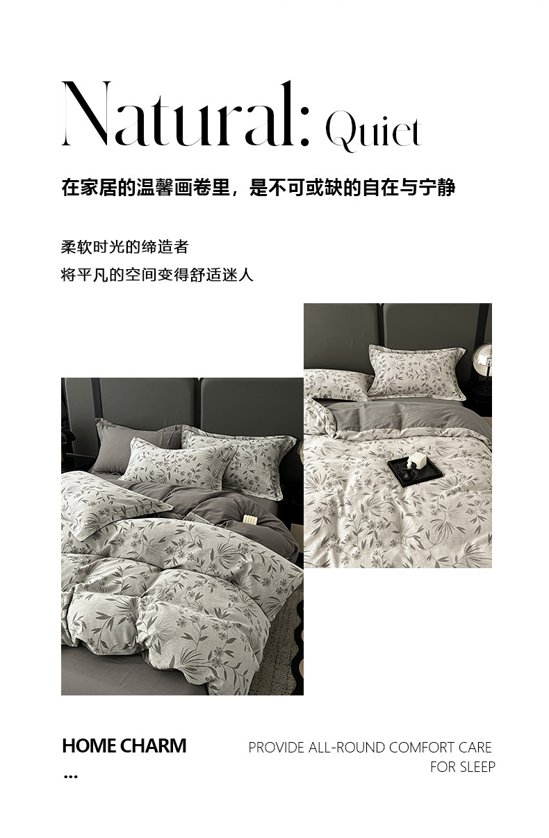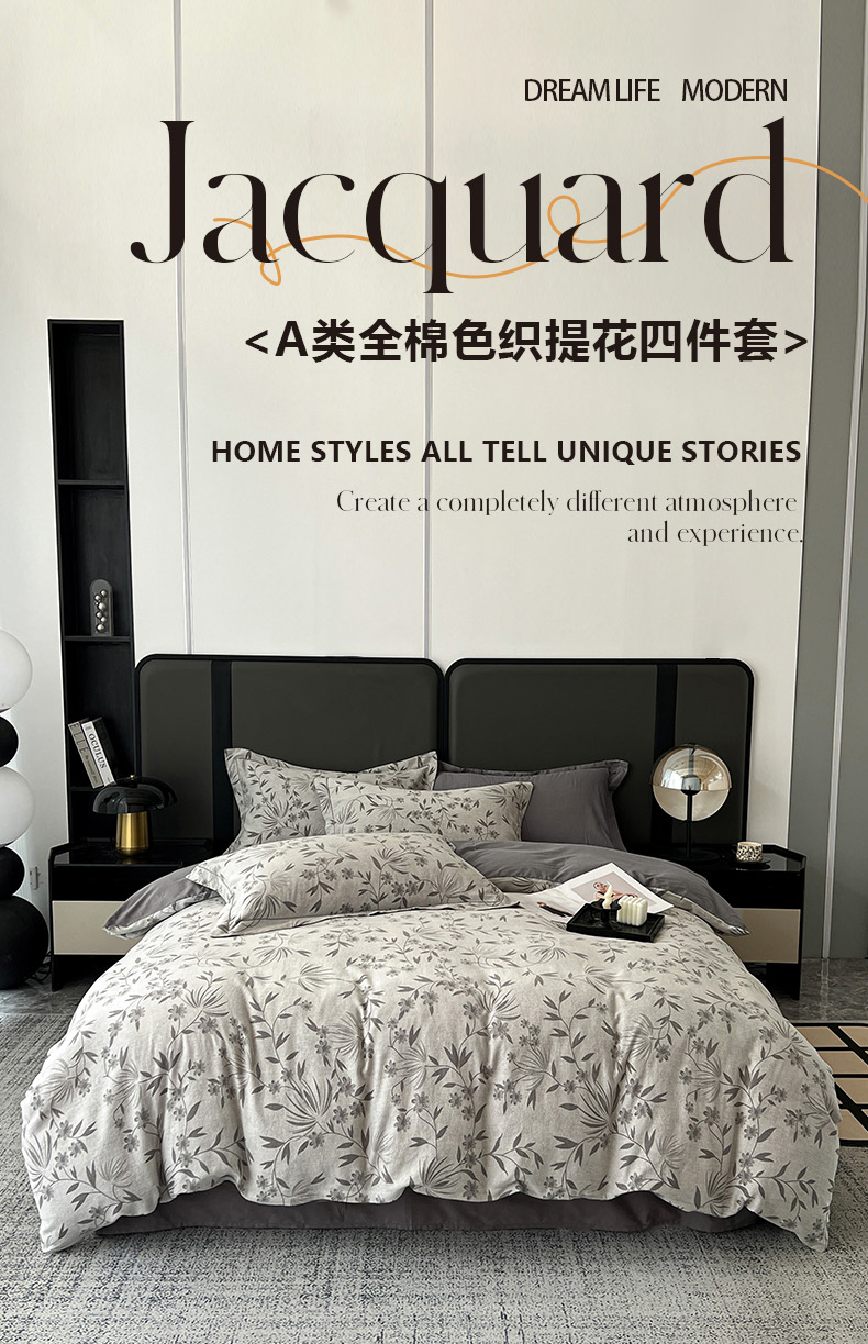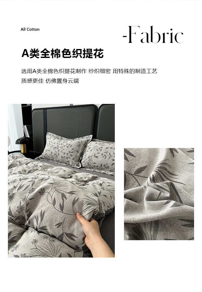 当前位置: 91家纺网 > 商品网购 > 床品套件 > 四件套 > 全棉普通四件套 > 锦彩家居 2025新款A类60支全棉纯棉色织提花四件套-复古风系列 暮光蒲英-灰