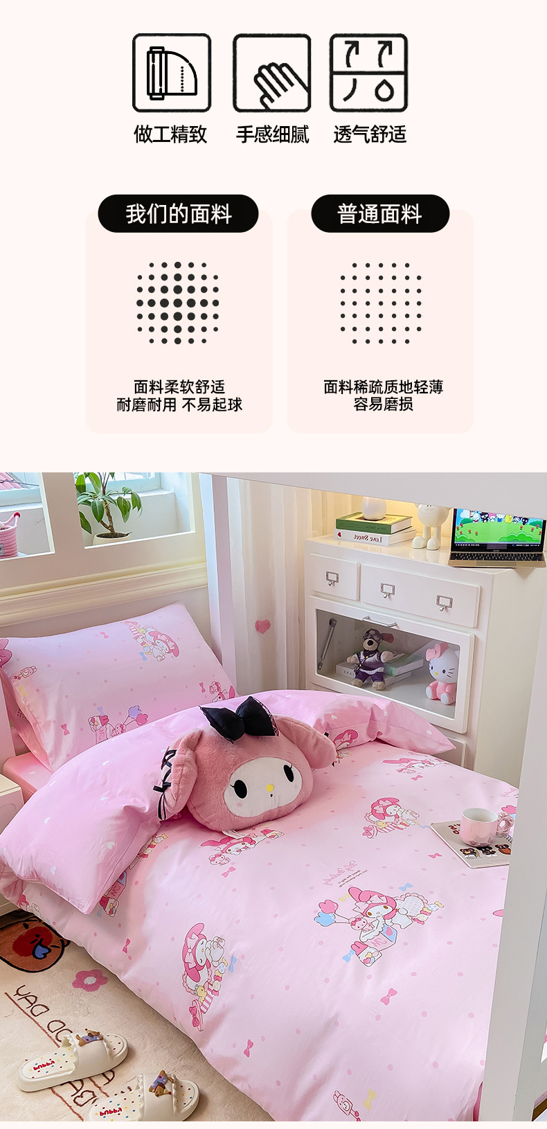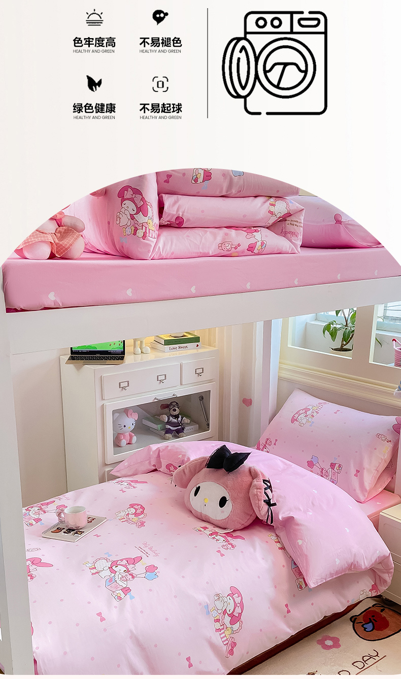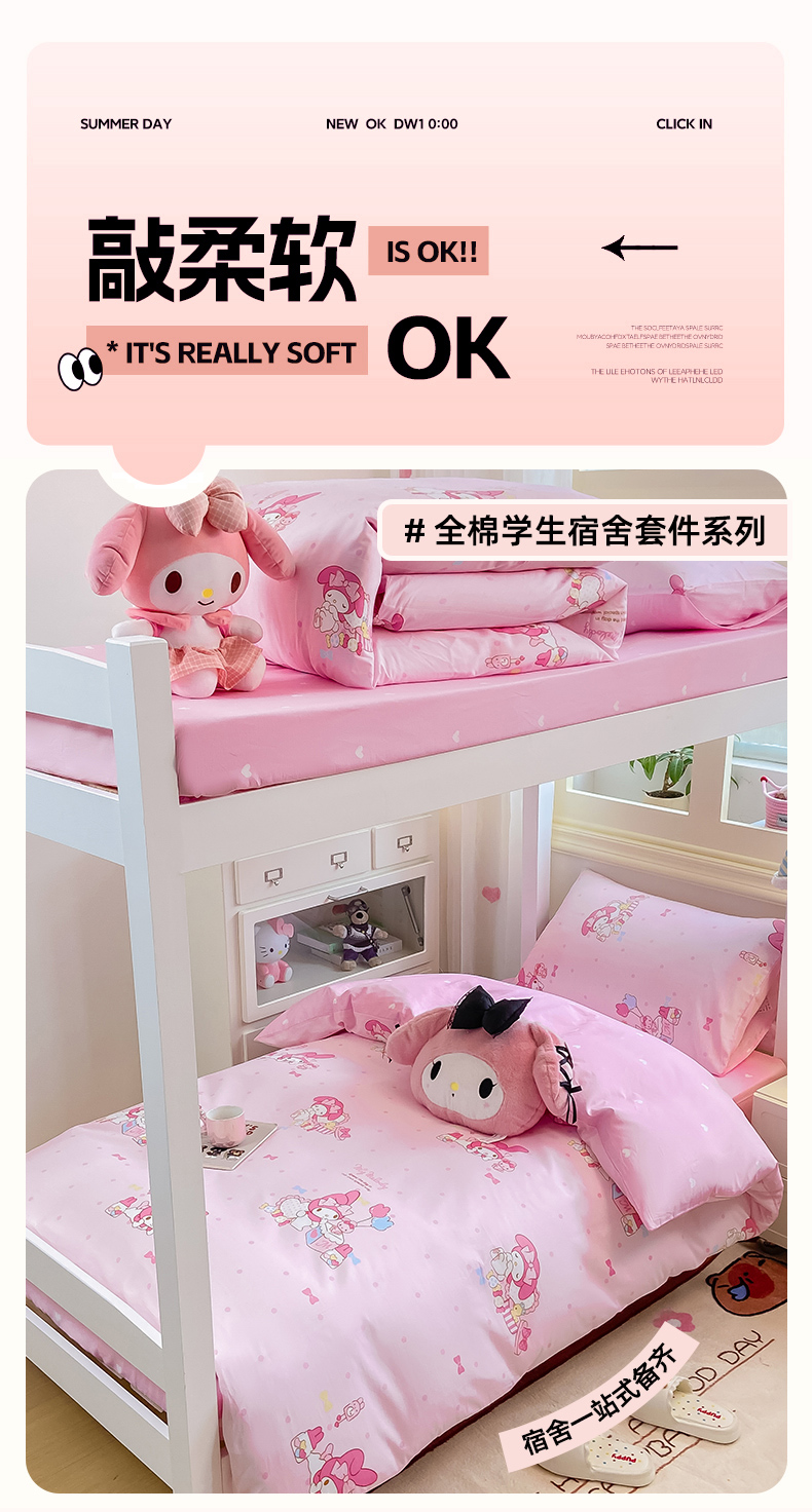 当前位置: 91家纺网 > 商品网购 > 床品套件 > 三件套 > 博雅 2025春夏新款三丽鸥全棉纯棉卡通学生宿舍三件套上下铺三件套-小版 粉色点点美乐蒂