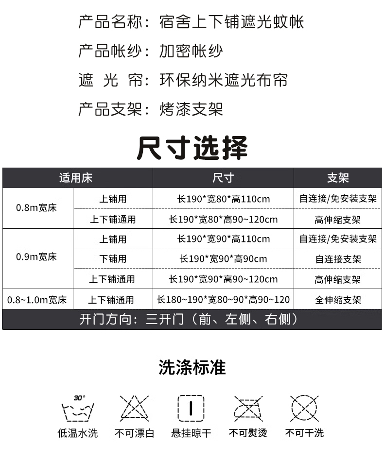 下铺0.9m全伸缩支架四面遮光无口袋 | ¥110.00 |